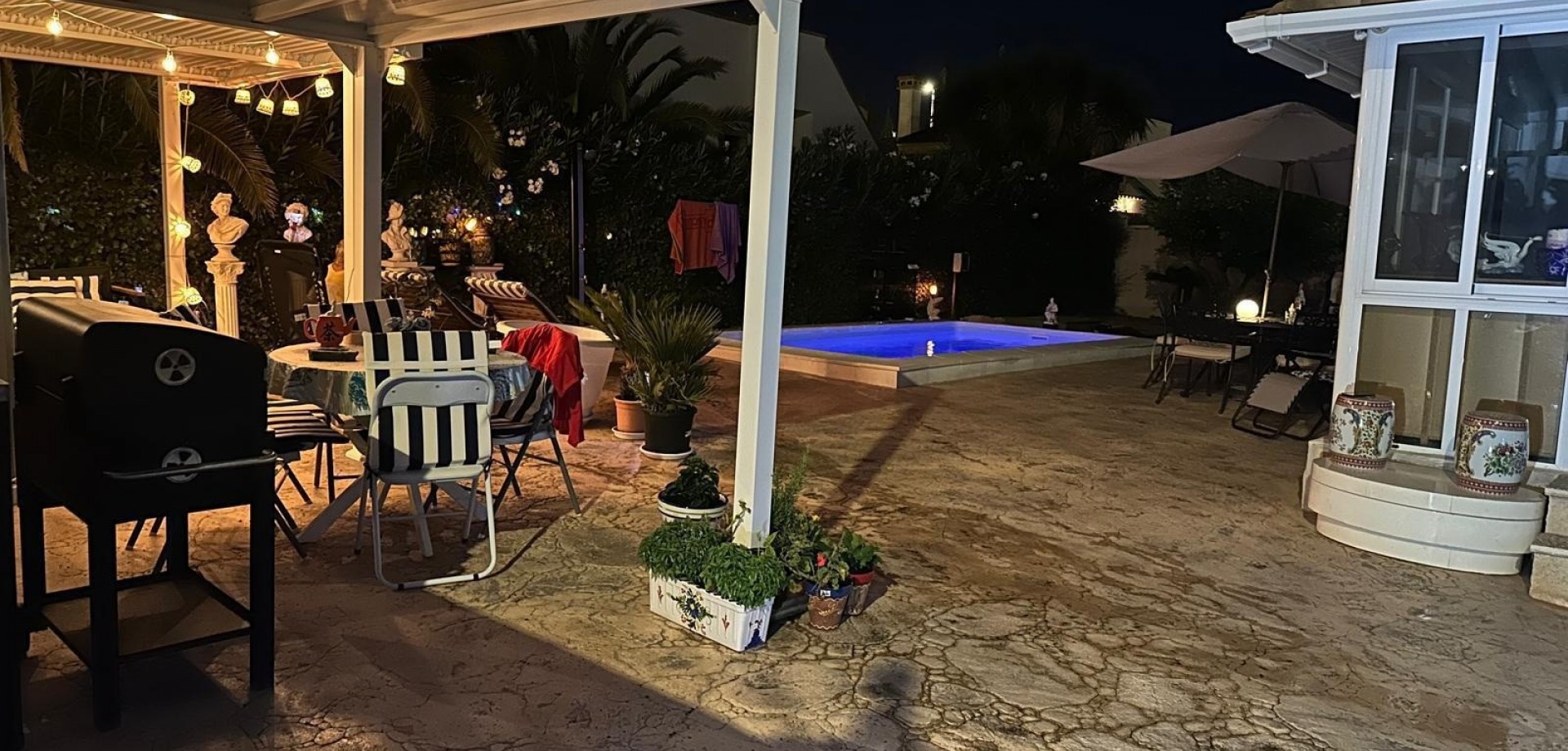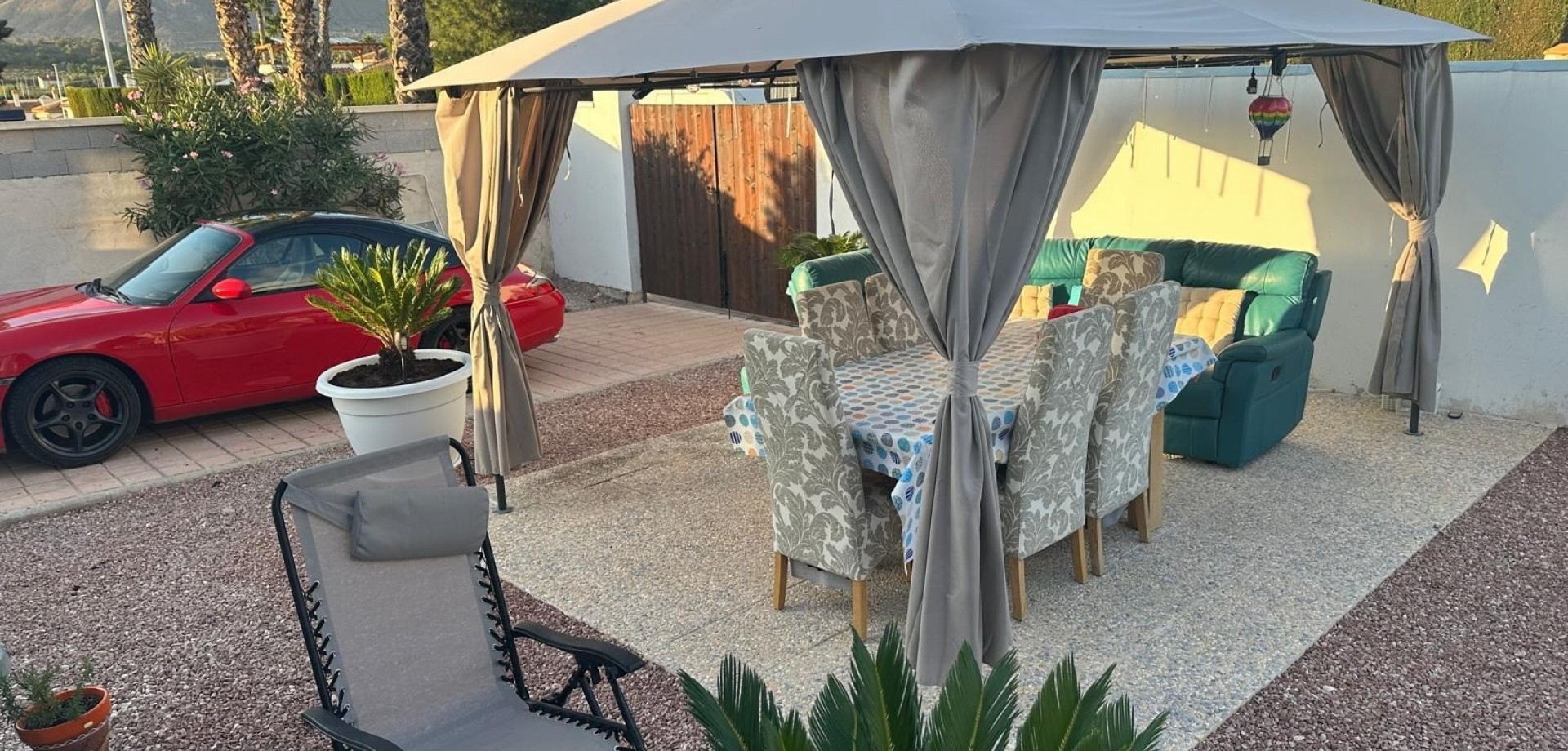 Se vende maravilloso chalet en zona tranquila y armoniosa Se pone a la venta este encantador chalet situado en la urbanización La Montañosa, en Hondón de las Nieves (provincia de Alicante). Un lugar ideal para disfrutar de la vida en paz y buena armonía. Ubicación privilegiada: A tan solo 5 minutos en coche de todos los servicios: comercios, farmacia, peluquería, taller mecánico, panadería, centro de salud, restaurantes y supermercados. A 20 minutos de la playa, del aeropuerto de Alicante y de Elche, y a 10 minutos de Aspe. Características de la vivienda: 2 habitaciones 2 baños Cocina totalmente equipada Salón con calefacción de pellet Acristalamiento con zona de estar y cama adicional Zona exterior: Pérgola con cocina de verano Pérgola con mesa y sofá Pérgola bioclimática con salón de jardín Piscina exterior con ducha solar Solárium con vistas espectaculares Jardín con árboles frutales Garaje de madera y plaza de parking La parcela cuenta con 500 m², y toda la zona exterior está recién acondicionada y lista para estrenar.