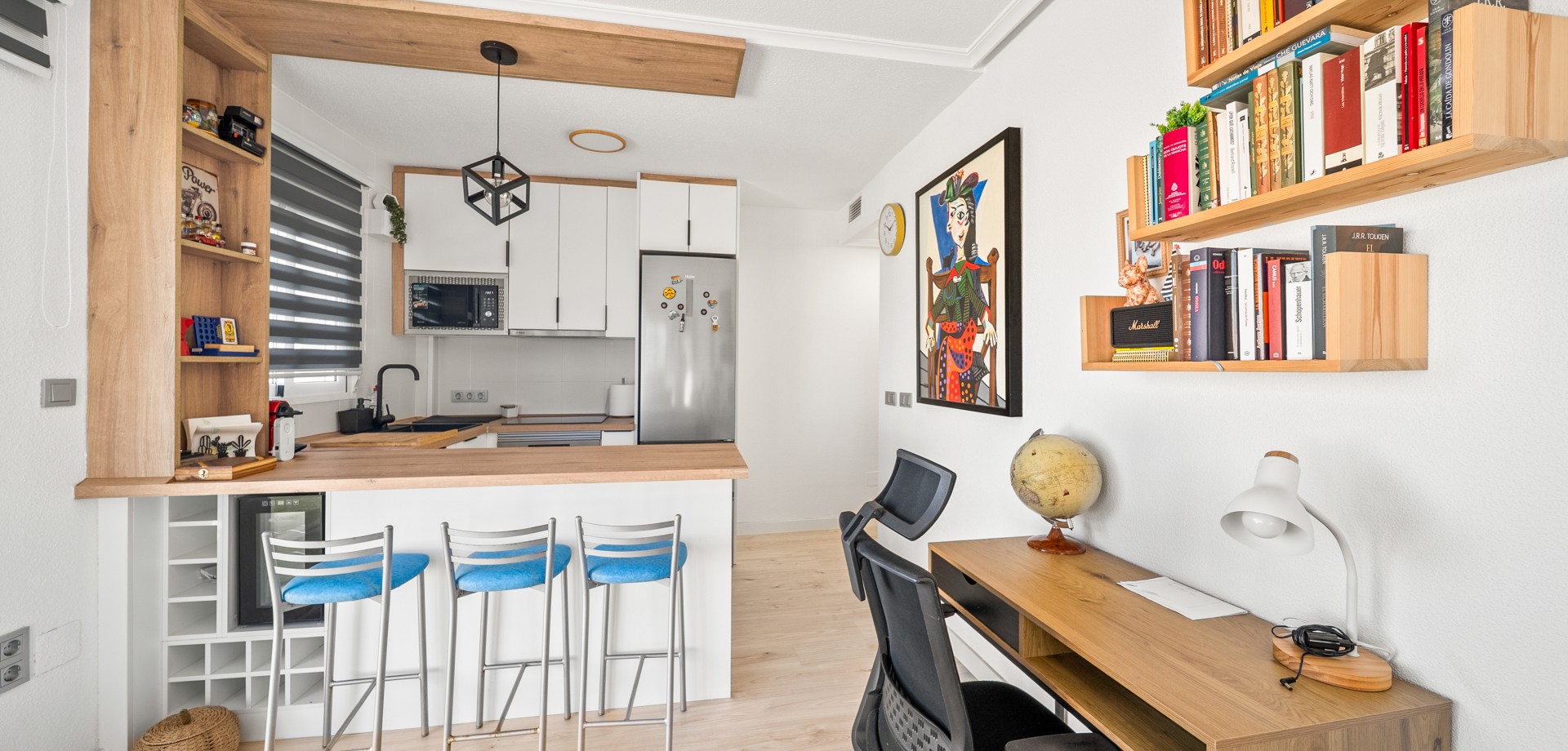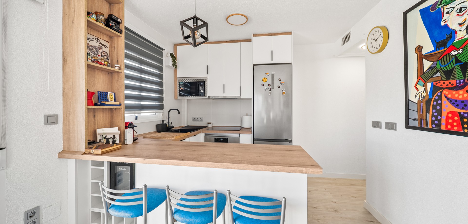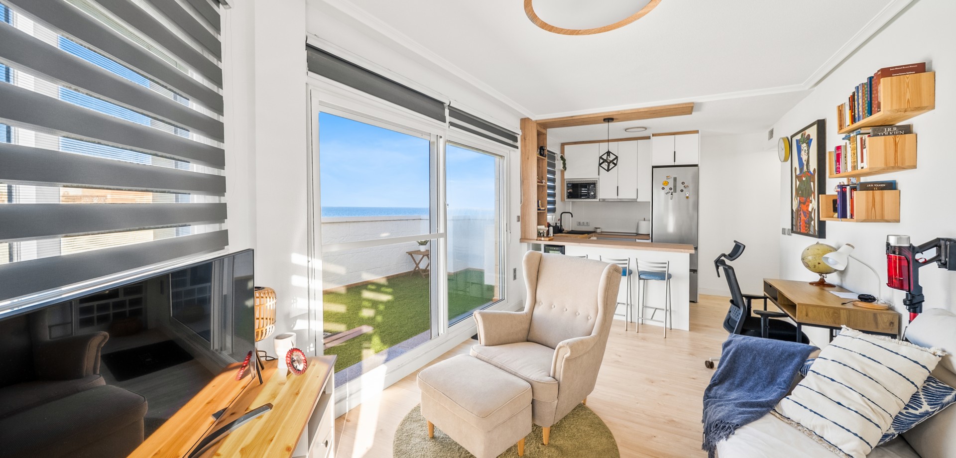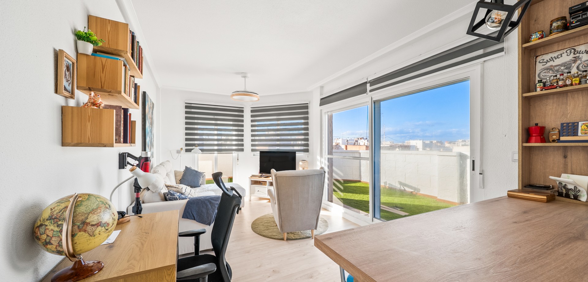 Ático en esquina reformado con vistas al mar en La Mata. Ático en quinta planta, recientemente reformado y ubicado a solo 50 metros de la playa de La Mata. La vivienda cuenta con 90 m² construidos y una amplia terraza de 45 m² con vistas al mar. Dispone de 2 dormitorios, 2 baños, cocina abierta y salón luminoso con salida directa a la terraza. Se vende completamente amueblado y equipado, con aire acondicionado y orientación oeste. Características destacadas: 2 dormitorios 2 baños 90 m² construidos Terraza de 45 m² con vistas al mar Cocina abierta Aire acondicionado Orientación oeste 5ª planta Amueblado Edificio con ascensor Gastos anuales: IBI: 250 € Comunidad: 400 € Ubicación: A 50 m de la playa de La Mata A 50 m de bares y restaurantes A 100 m de supermercado A 500 m del Parque Natural de la Laguna Salada de La Mata