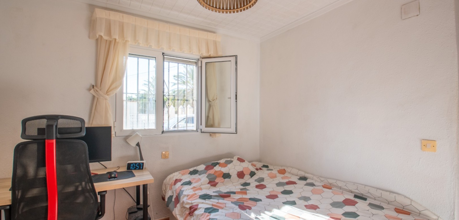 Esta casa orientada al sur fue originalmente construida como una propiedad de tres dormitorios en terraza adosada y ha sido cuidadosamente actualizada por los propietarios actuales para crear un espacioso bungalow de dos dormitorios. La distribución ahora incluye una cocina independiente, un práctico cuarto de lavandería y áreas de estar bien proporcionadas que se adaptan tanto para uso permanente como estacional. La propiedad se encuentra en una calle tranquila y arbolada con una vista abierta y estacionamiento fuera de la calle. En el frente, una gran terraza ofrece una excelente área exterior para relajarse o recibir invitados, mientras que el toldo instalado proporciona sombra durante las horas más soleadas del día. En el interior, la sala de estar y el dormitorio principal cuentan con ventiladores de techo, lo que ayuda a mantener temperaturas cómodas durante todo el año. Las calles circundantes son tranquilas y residenciales, sin embargo, la casa está a solo un corto paseo de una selección de restaurantes, cafés y servicios locales, lo que hace que la vida diaria sea conveniente y placentera. Este es un bungalow bien ubicado con una distribución práctica y un fuerte atractivo para los compradores que buscan un hogar de bajo mantenimiento cerca de las comodidades locales.