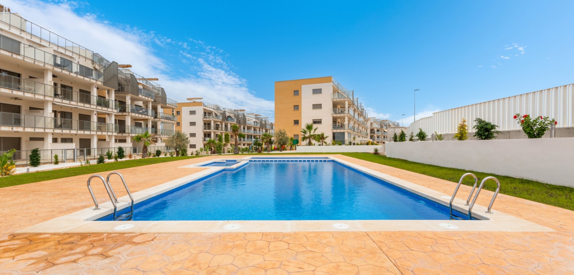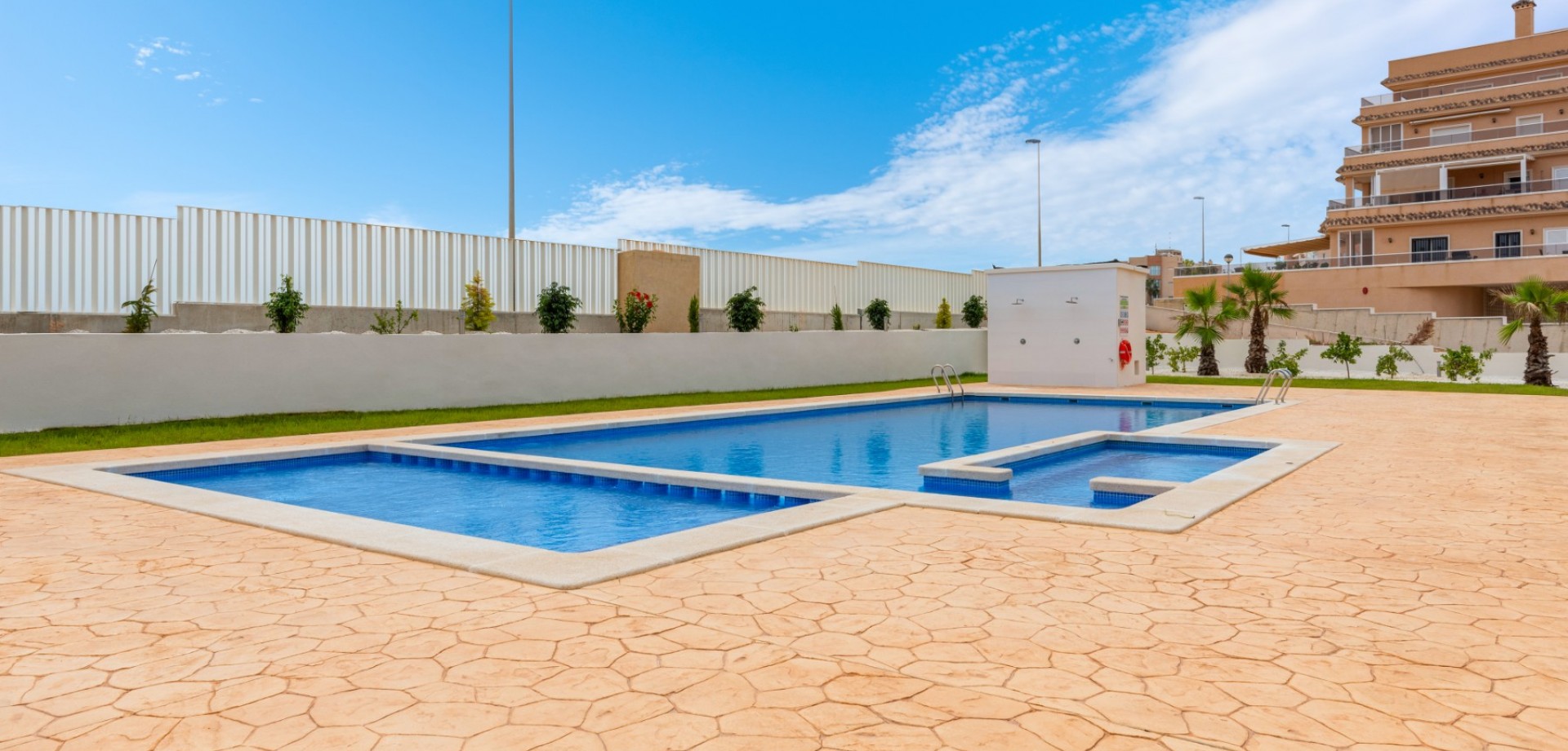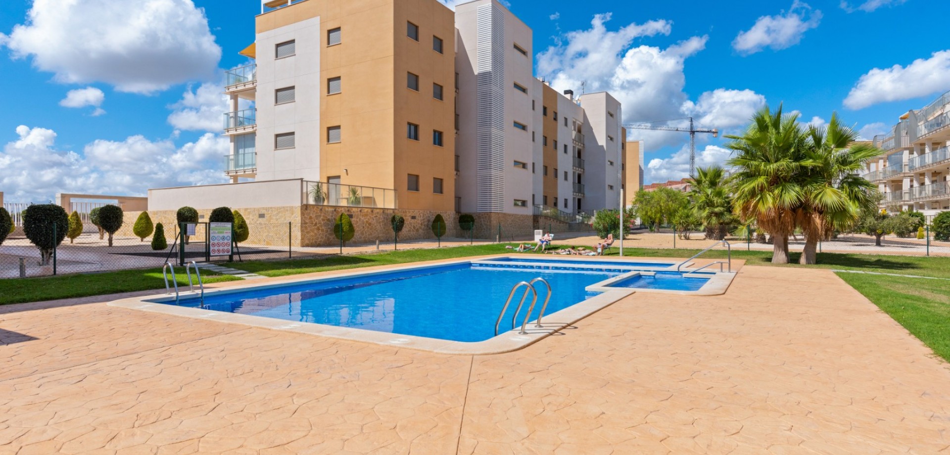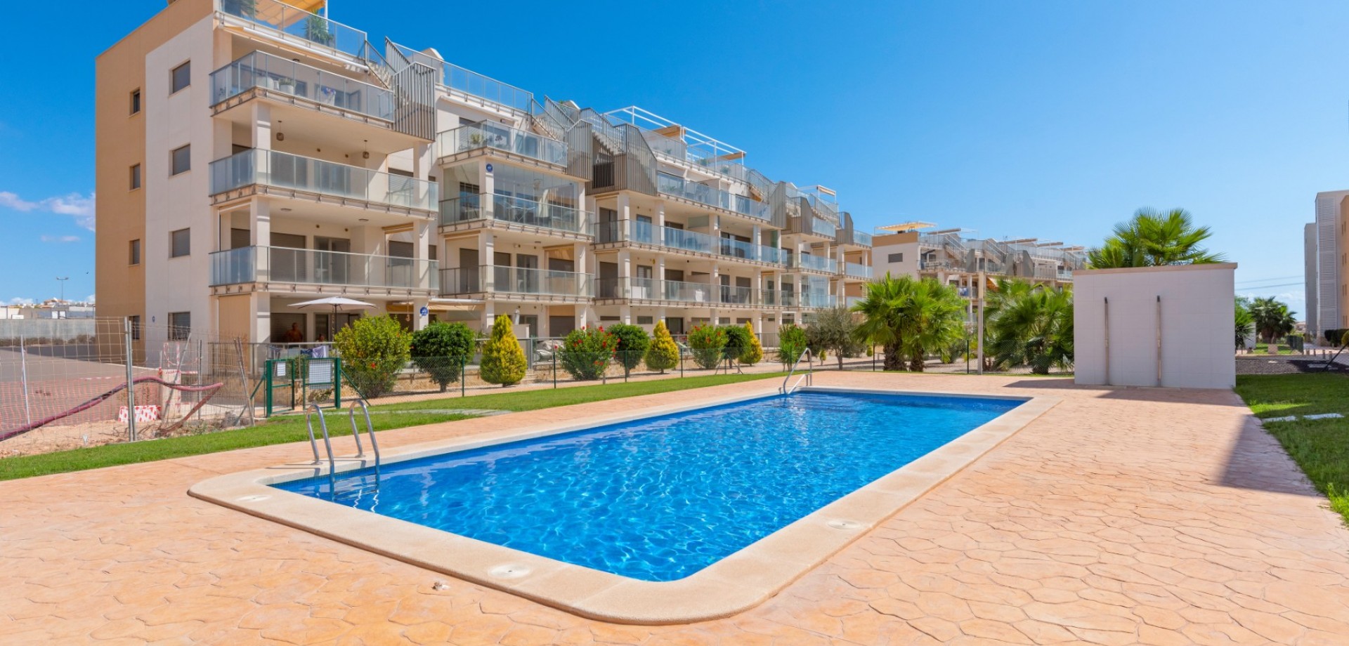Moderno apartamento con orientación sur con 2 dormitorios y 2 baños - Amplia terraza - ¡Parking y trastero! Aquí tenemos un apartamento moderno y ordenado en el segundo piso con 2 dormitorios, 2 baños delicados, una amplia sala de estar con cocina abierta y una gran terraza fuera de la sala de estar. El apartamento está bien equipado y se vende con muebles incluidos en el precio. Orientación sur con condiciones ideales de sol.Hay un ascensor en el edificio y un garaje subterráneo con plaza de aparcamiento y trastero privado. Se encuentra a poca distancia de una buena selección de restaurantes, cafeterías y el centro comercial de La Zenia. Si quieres ir a la playa, puedes bajar en bicicleta en unos 15 minutos. También cabe mencionar que en las cercanías hay tres campos de golf de 18 hoyos. El complejo incluye 3 piscinas (una de ellas incorporada y climatizada) y amplias zonas verdes para jugar. ¡Bienvenido a Villamartin Gardens!
