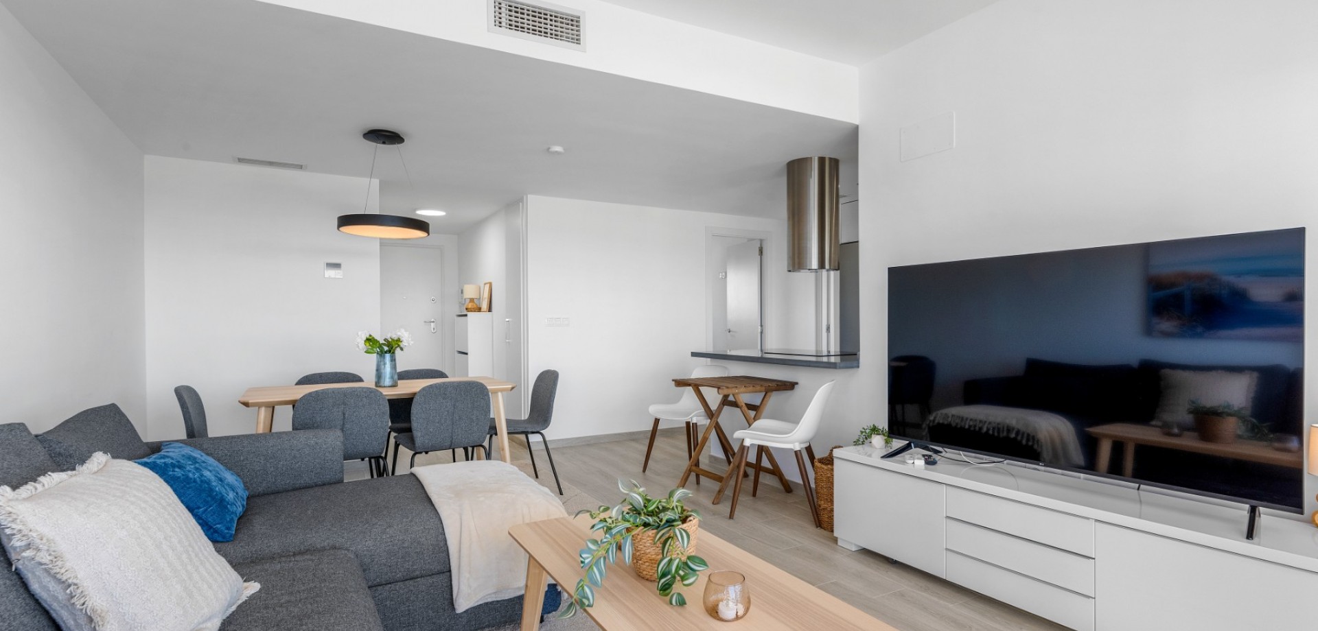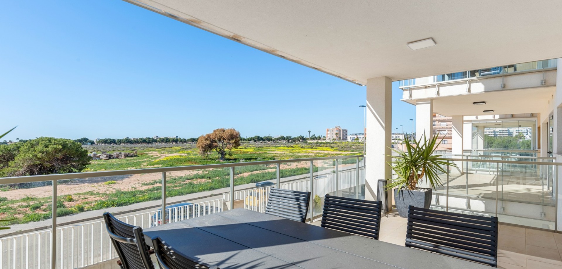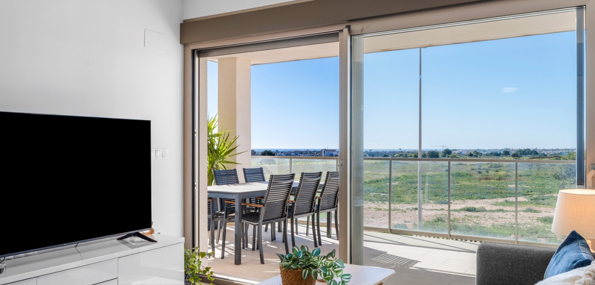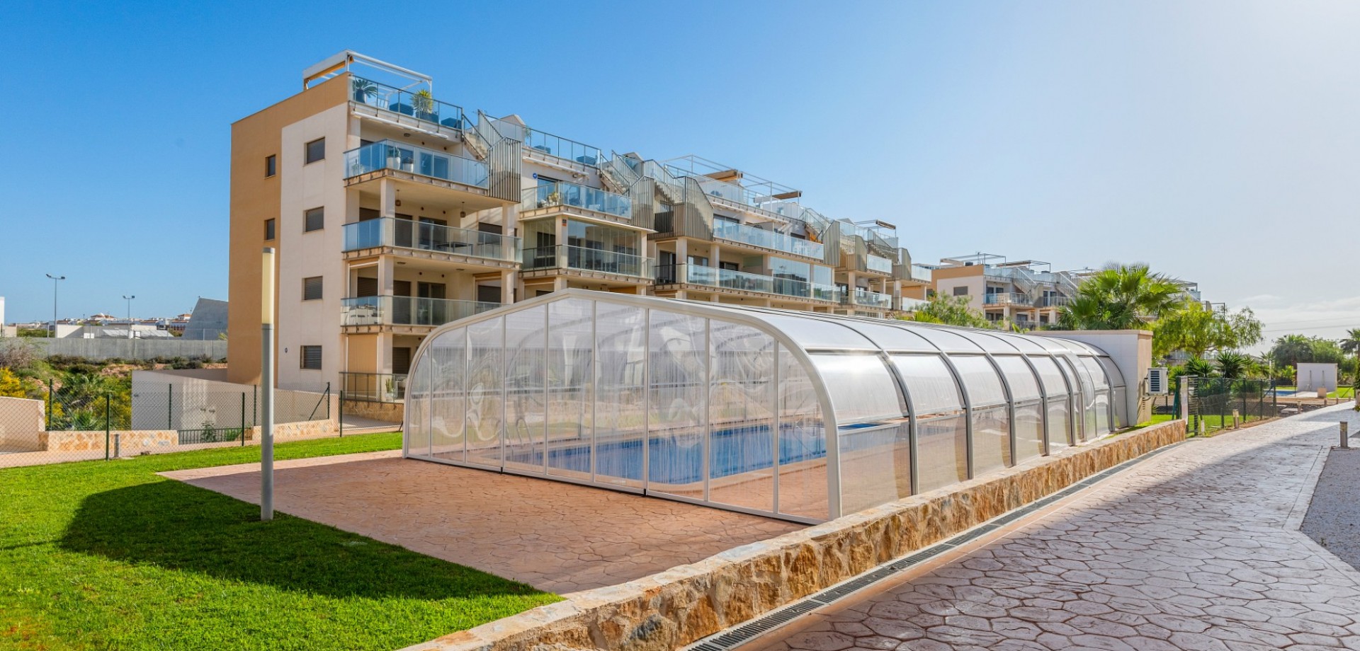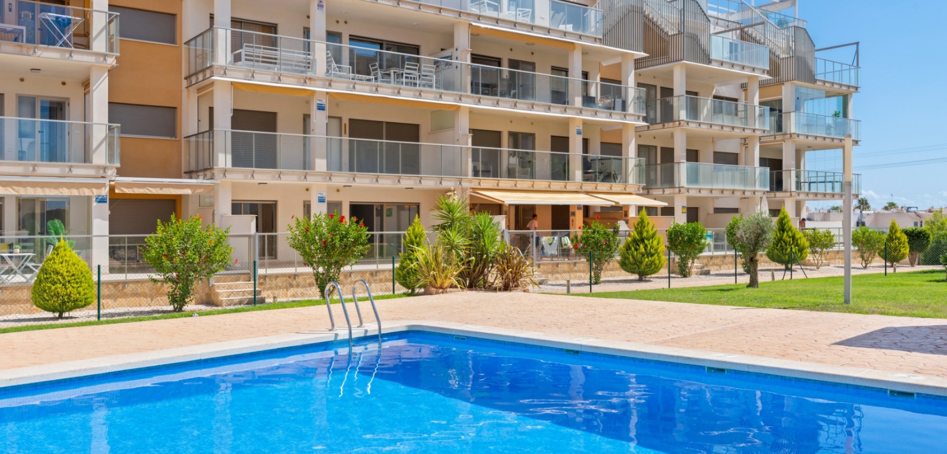 Moderno apartamento con orientación sur con 2 dormitorios y 2 baños - Amplia terraza - ¡Parking y trastero! Aquí tenemos un apartamento moderno y ordenado en el segundo piso con 2 dormitorios, 2 baños delicados, una amplia sala de estar con cocina abierta y una gran terraza fuera de la sala de estar. El apartamento está bien equipado y se vende con muebles incluidos en el precio. Orientación sur con condiciones ideales de sol.Hay un ascensor en el edificio y un garaje subterráneo con plaza de aparcamiento y trastero privado. Se encuentra a poca distancia de una buena selección de restaurantes, cafeterías y el centro comercial de La Zenia. Si quieres ir a la playa, puedes bajar en bicicleta en unos 15 minutos. También cabe mencionar que en las cercanías hay tres campos de golf de 18 hoyos. El complejo incluye 3 piscinas (una de ellas incorporada y climatizada) y amplias zonas verdes para jugar. ¡Bienvenido a Villamartin Gardens!
