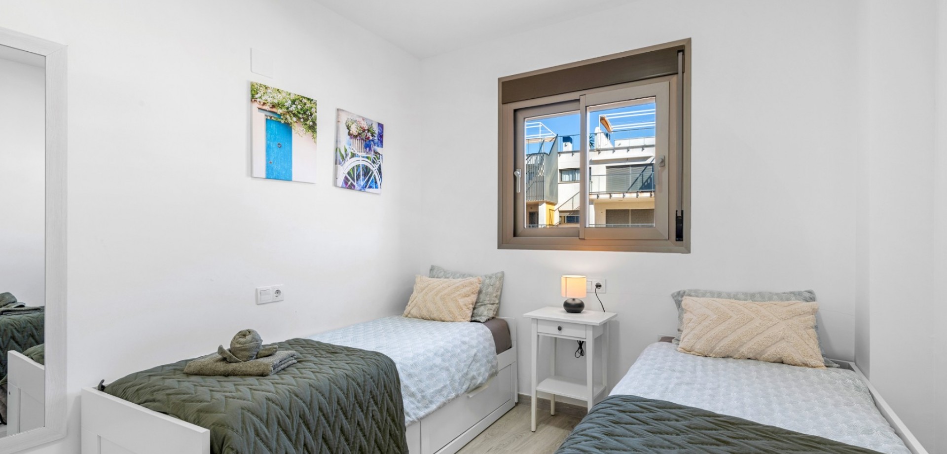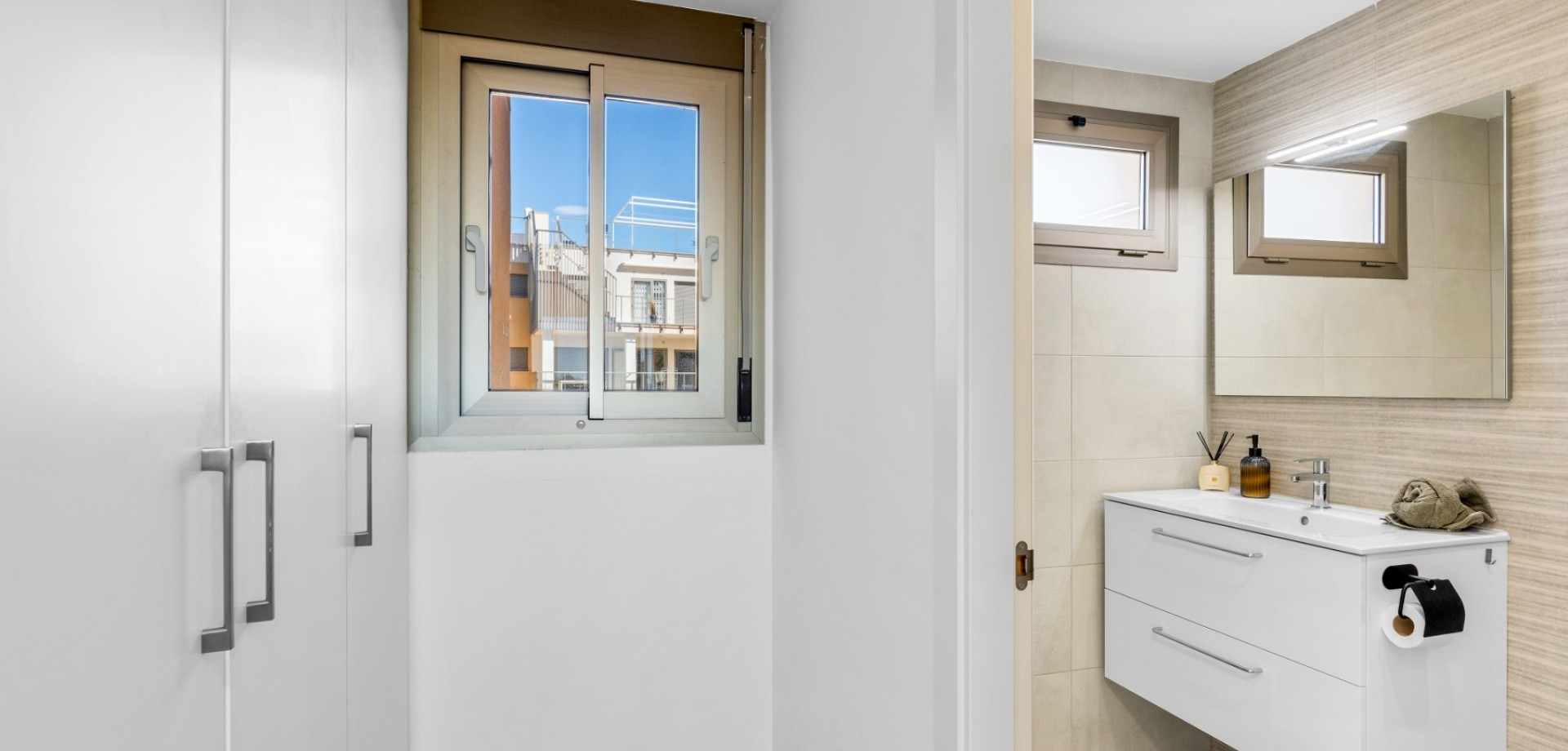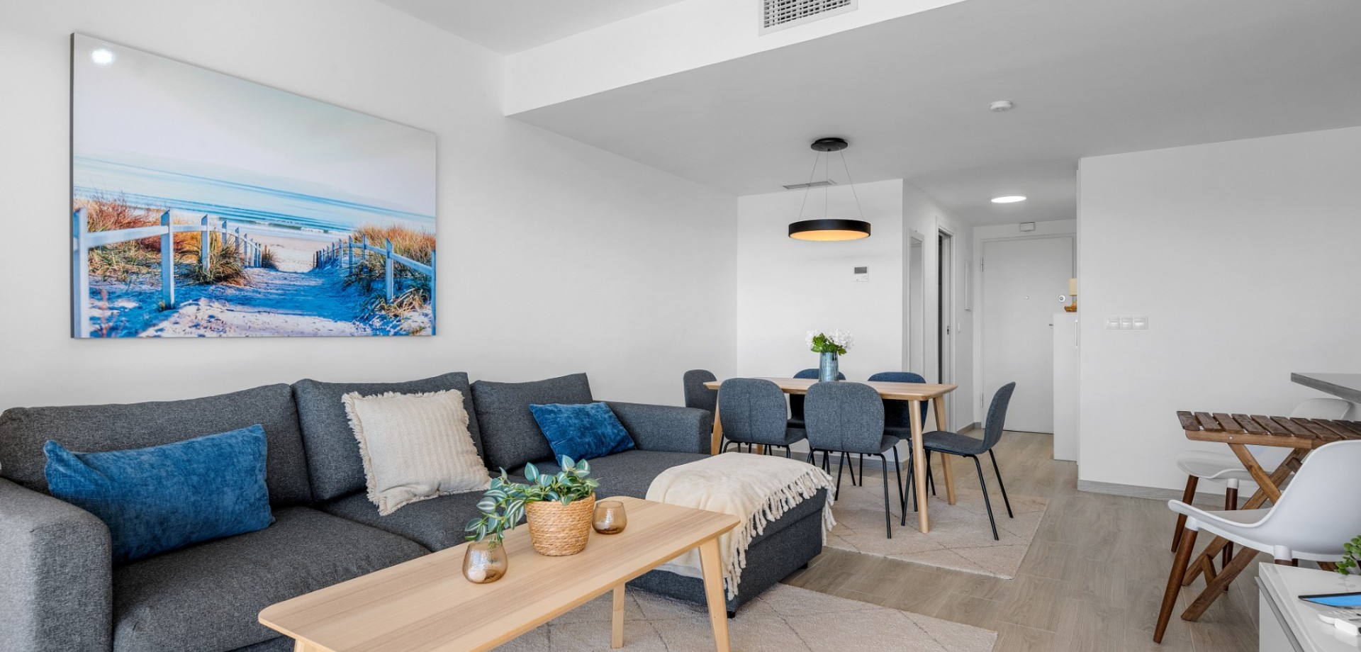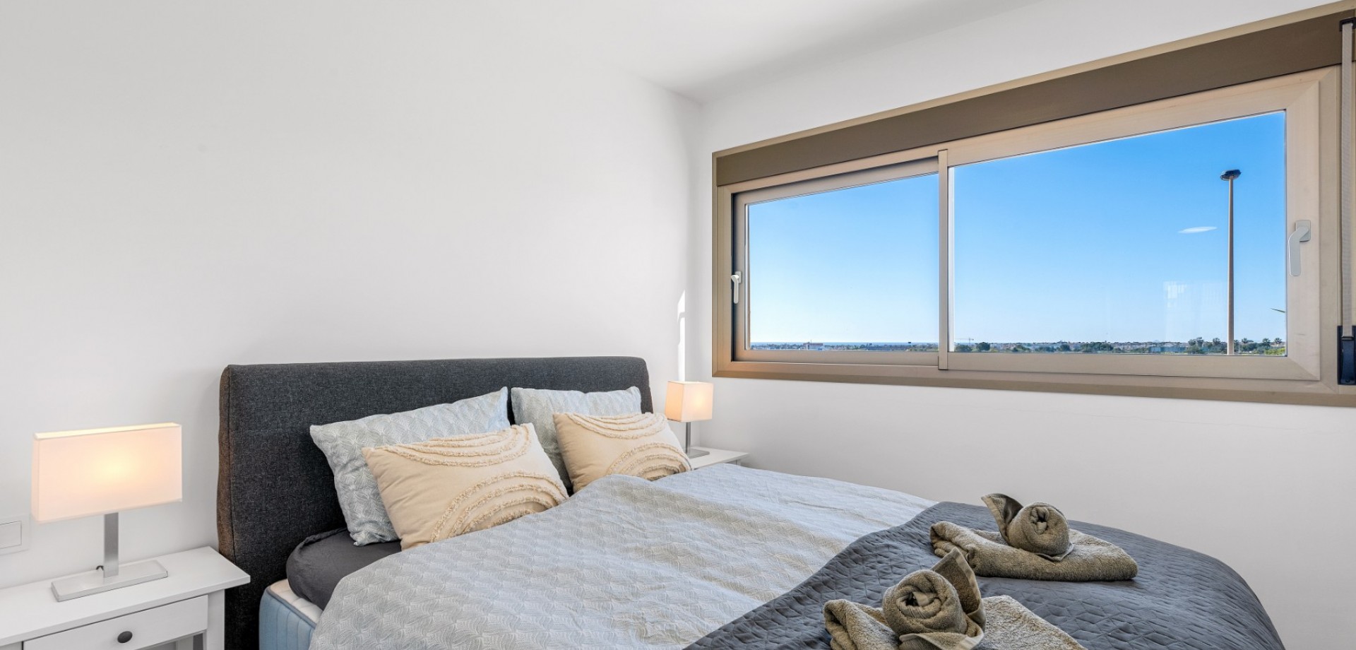 Moderno apartamento con orientación sur con 2 dormitorios y 2 baños - Amplia terraza - ¡Parking y trastero! Aquí tenemos un apartamento moderno y ordenado en el segundo piso con 2 dormitorios, 2 baños delicados, una amplia sala de estar con cocina abierta y una gran terraza fuera de la sala de estar. El apartamento está bien equipado y se vende con muebles incluidos en el precio. Orientación sur con condiciones ideales de sol.Hay un ascensor en el edificio y un garaje subterráneo con plaza de aparcamiento y trastero privado. Se encuentra a poca distancia de una buena selección de restaurantes, cafeterías y el centro comercial de La Zenia. Si quieres ir a la playa, puedes bajar en bicicleta en unos 15 minutos. También cabe mencionar que en las cercanías hay tres campos de golf de 18 hoyos. El complejo incluye 3 piscinas (una de ellas incorporada y climatizada) y amplias zonas verdes para jugar. ¡Bienvenido a Villamartin Gardens!