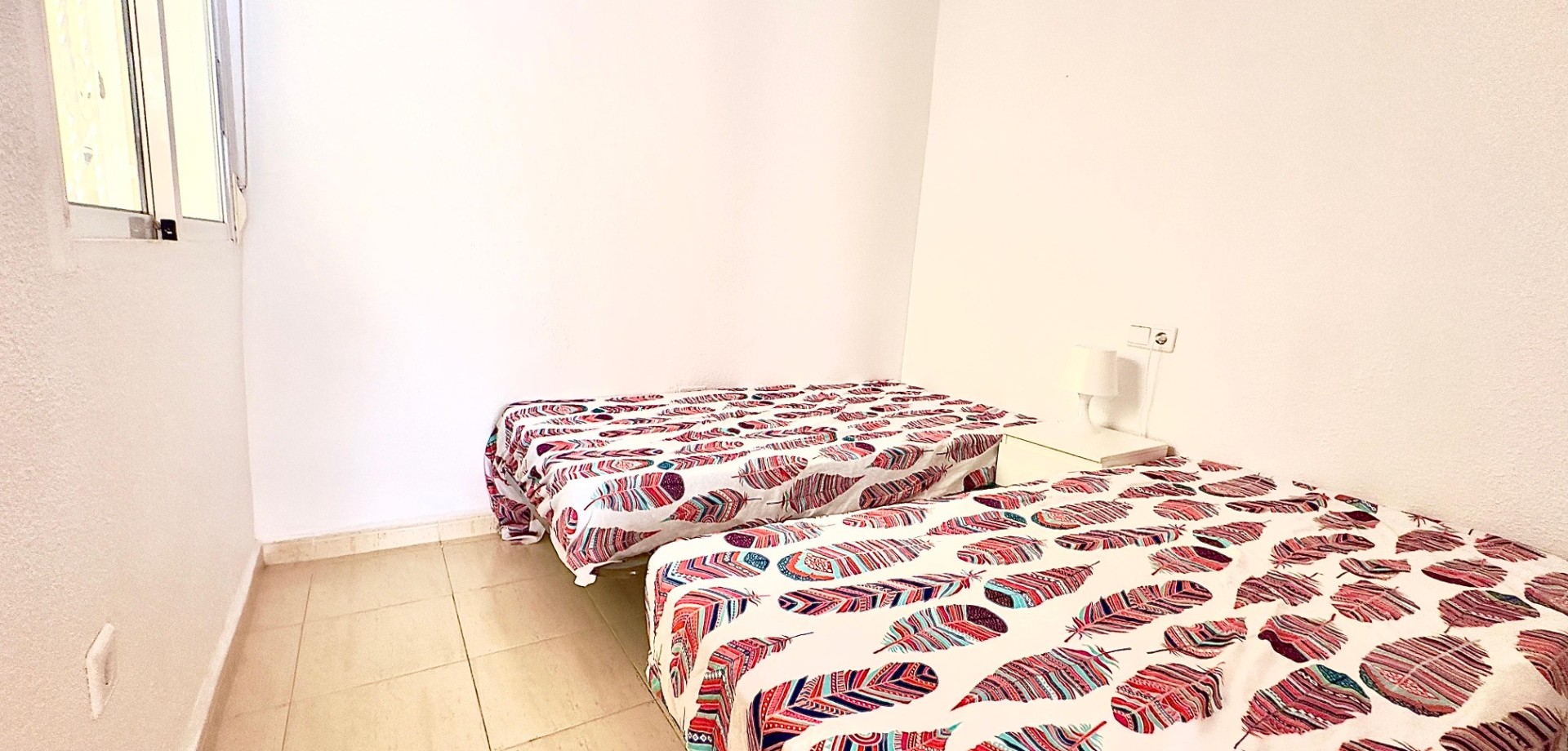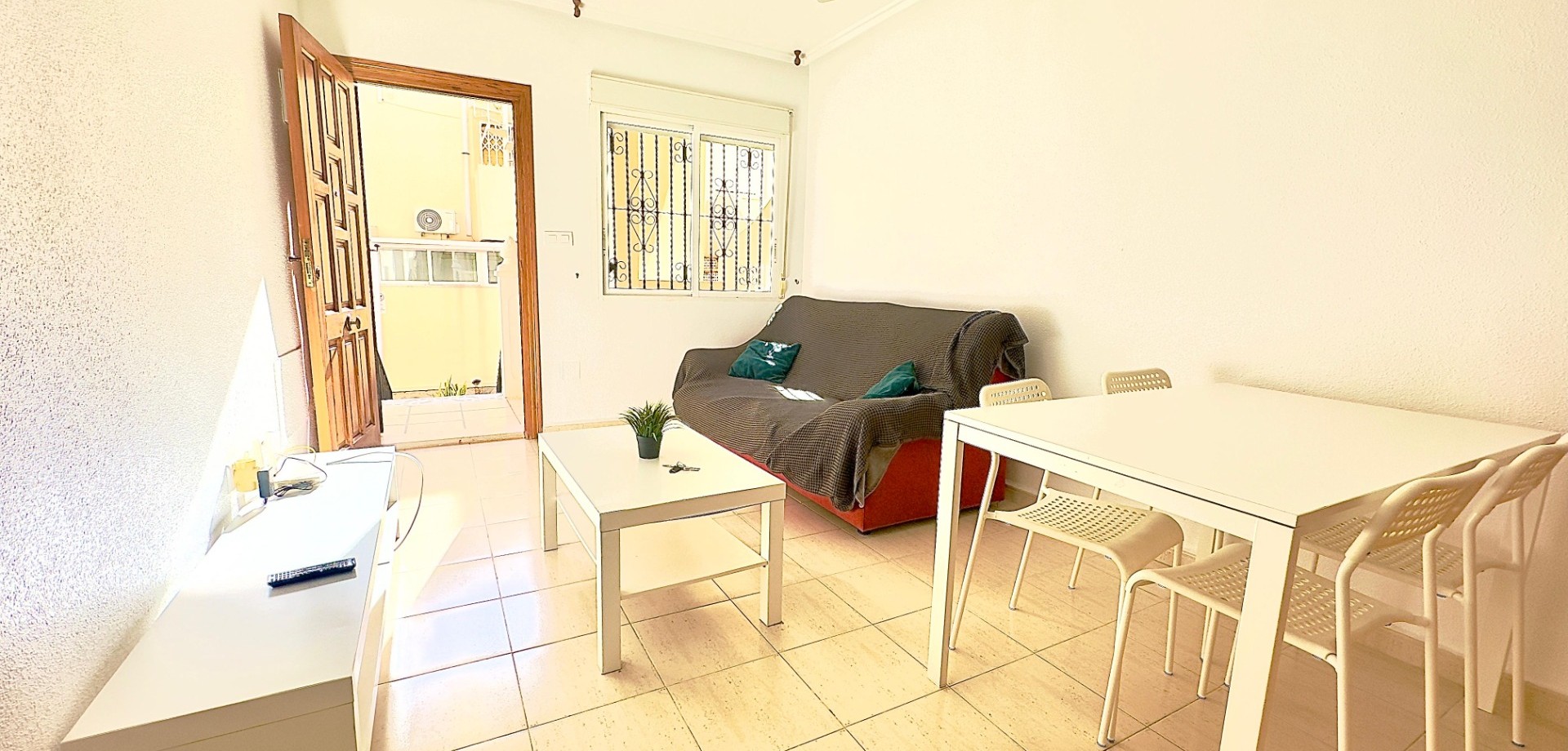 Acogedor bungalow en planta baja en Playa Flamenca – La Florida~~Se vende encantador bungalow en planta baja situado en la demandada zona de La Florida, Playa Flamenca, una urbanización tranquila rodeada de parques verdes y zonas naturales, ideal tanto para vivir todo el año como para disfrutar de vacaciones.~~La vivienda cuenta con un jardín privado, perfecto para relajarse al aire libre, y una galería cerrada con acceso desde la cocina, que aporta espacio extra y funcionalidad. Dispone de 2 dormitorios, 1 baño completo y una práctica cocina francesa. Además, está equipada con aire acondicionado para garantizar el máximo confort durante todo el año.~~Forma parte de una urbanización con piscina comunitaria, ideal para refrescarse y disfrutar del clima mediterráneo. El aparcamiento es fácil, gracias a que se trata de una zona muy tranquila y con poco tráfico.~~A pesar de su entorno relajado, la vivienda se encuentra cerca de todo tipo de servicios: supermercados, restaurantes y bares tan conocidos como The Abbey Tavern, y a poca distancia de las playas de la zona.~~Una excelente oportunidad en una de las zonas más valoradas de la Costa Blanca.~¡Lista para entrar a vivir!