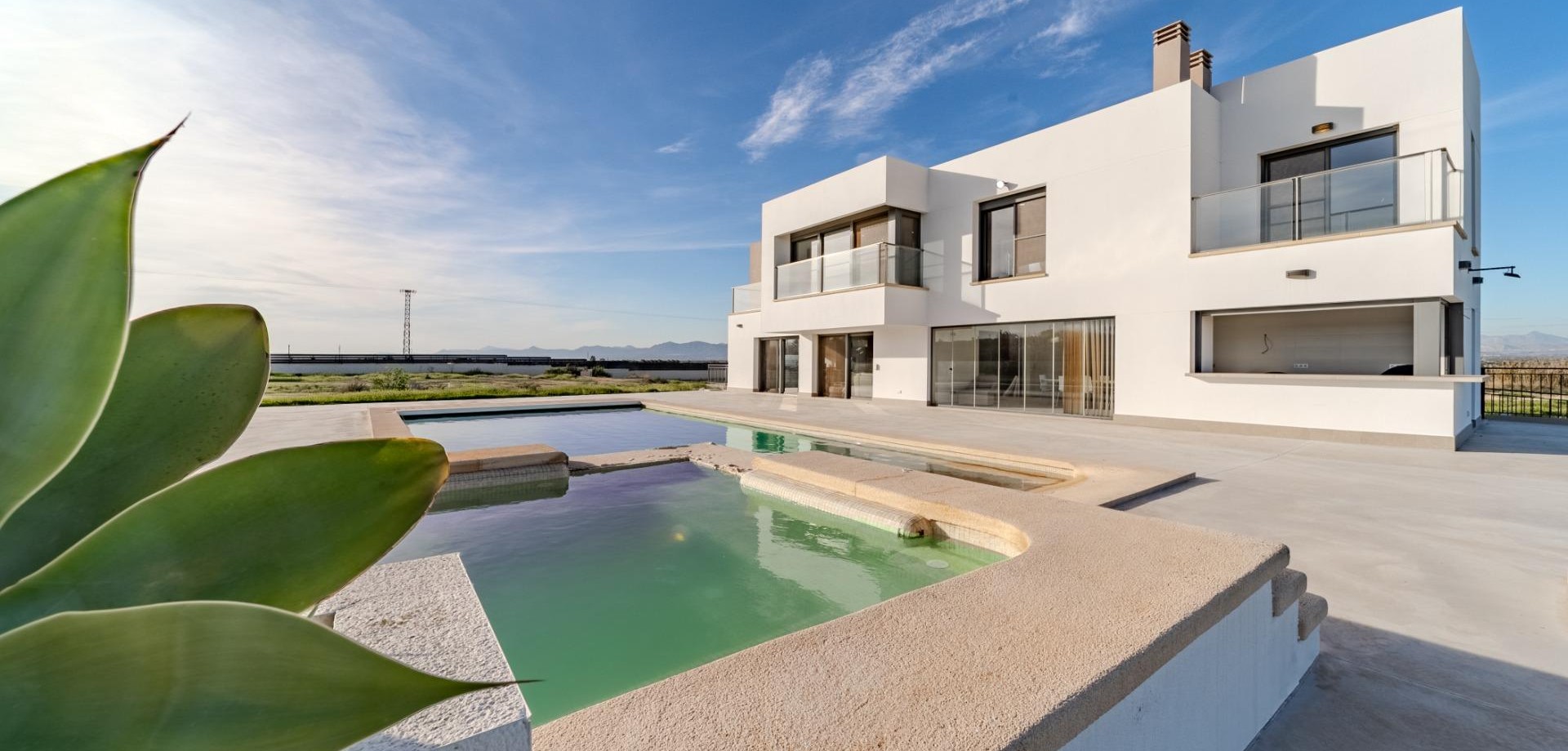 Ubicada en La Marina del Pinet (Elche, sur de Alicante), esta impresionante villa de estilo contemporáneo fue construida en 2016 sobre una extensa parcela de 10.600 m2, en un entorno de absoluta tranquilidad y privacidad. Con diferentes orientaciones al sol, ofrece vistas panorámicas de 360° al campo y las montañas.~~Su ubicación estratégica permite conectarse con todo: a tan solo 5 km de la playa, 3 km del pueblo de La Marina, 20 km de Elche y Torrevieja, y a 25 km del aeropuerto de Alicante.~~