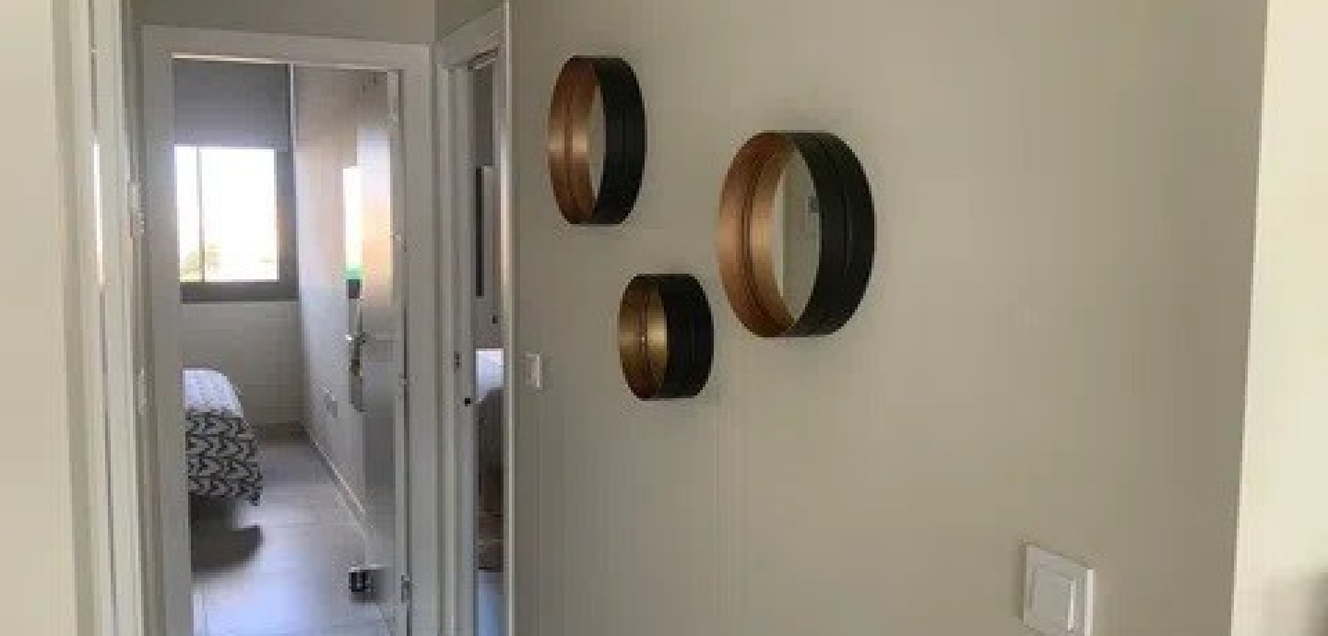 Presentamos esta preciosa propiedad, ubicada en la primera planta de un edificio moderno y bien cuidado en la encantadora localidad costera de Mar de Cristal, conocida por su tranquilidad, su proximidad al Mar Menor y su excelente comunicación con servicios y lugares de ocio. Con una superficie construida de 85 m², este apartamento destaca por su luz natural, su distribución funcional y su excelente estado, lo que lo hace ideal para entrar a vivir sin necesidad de reformas. Distribución y espacios:2 amplios dormitorios con armarios empotrados, perfectos para familias o quienes necesitan espacio adicional para teletrabajar. 2 baños completos, uno de ellos en suite, diseñados con materiales modernos de alta calidad. Elegante salón-comedor con acceso directo a una terraza privada, ideal para disfrutar del clima mediterráneo. Cocina abierta, totalmente equipada con todos los electrodomésticos necesarios y barra americana, ideal para reuniones y cenas informales. Lavadero y trastero independientes que ofrecen funcionalidad y espacio de almacenamiento adicional. Extras y equipamiento:Aire acondicionado instalado y preinstalado en el resto de estancias. Se vende semiamueblado. Puerta blindada para mayor seguridad. Intercomunicador automático. Acceso a una fantástica piscina comunitaria y solárium, ideal para relajarse en verano. Plaza de aparcamiento subterráneo privado y trastero incluidos en el precio. Ubicación privilegiada:A tan solo 5 minutos a pie de las playas del Mar Menor. A 30 minutos en coche del aeropuerto más cercano. A poca distancia a pie de restaurantes, tiendas, supermercados y lugares de ocio (10 minutos). Cerca de prestigiosos campos de golf (10 minutos), como La Manga Club. Con orientación sur, esta propiedad disfruta de excelente luz natural durante todo el día, lo que la convierte en una vivienda cálida, acogedora y de alta eficiencia energética.
