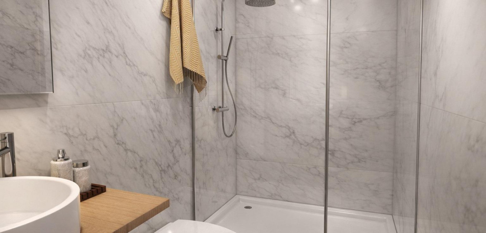Moderna villa de nueva construcción en Los Alcázares, Murcia, cerca de la playa Ubicación privilegiada en la costa de Los Alcázares Descubra esta exclusiva villa de nueva construcción en Los Alcázares, Murcia, a solo 800 m de las playas de arena del Mar Menor. Situada en una tranquila zona residencial, esta propiedad ofrece el equilibrio perfecto entre tranquilidad y proximidad a todos los servicios esenciales. Los Alcázares es una encantadora localidad costera conocida por su largo paseo marítimo, sus aguas tranquilas y su relajado estilo de vida mediterráneo. Tiendas, restaurantes, supermercados, colegios e instalaciones deportivas se encuentran a poca distancia, lo que la convierte en una vivienda ideal para vivir de forma permanente, pasar las vacaciones o invertir. Villa personalizable con piscina privada y solárium Esta villa en autopromoción ofrece una oportunidad única para personalizar tanto el interior como el exterior para adaptarla a su estilo de vida. Construida en una parcela de 300 m2, la propiedad tiene 150 m2 de superficie construida distribuidos en dos plantas. La villa cuenta con 3 amplios dormitorios y 3 baños, diseñados para ofrecer comodidad y funcionalidad. Un garaje cerrado dentro de la parcela garantiza un aparcamiento seguro, mientras que la piscina privada con cascada crea un elegante espacio exterior. En la primera planta, un gran solárium con cocina de verano le permite disfrutar del sol durante todo el año. Distribución interior luminosa y funcional En la planta baja, la villa ofrece una sala de estar y comedor de planta abierta con una cocina moderna y acceso directo a la terraza, la piscina y el garaje. Este nivel también incluye un amplio dormitorio con vestidor y baño en suite, además de un baño adicional para invitados. La primera planta cuenta con dos dormitorios que comparten un baño y una generosa terraza descubierta de 53 m2, ideal para relajarse, entretenerse y disfrutar del clima mediterráneo. Características de alta calidad y comodidad La villa se entrega con una cocina totalmente equipada, incluyendo electrodomésticos, y preinstalación de aire acondicionado por conductos. Los baños están equipados con tocadores, espejos y mamparas de ducha. El diseño combina la arquitectura moderna con espacios prácticos, ofreciendo una vivienda cómoda y elegante cerca del mar. Distancias a puntos de interés Playa 0,8 km Centro de Los Alcázares 1,5 km Roda Golf 3 km Mar Menor Golf 5 km Ciudad de Cartagena 25 km Ciudad de Murcia 40 km Aeropuerto de Corvera Murcia 30 km Aeropuerto de Alicante 85 km Puerto de Cartagena 28 km Su hogar ideal junto al mar Esta villa de nueva construcción en Los Alcázares ofrece opciones de personalización, un diseño moderno y una ubicación privilegiada cerca de la playa y del golf. Póngase en contacto con nosotros hoy mismo para recibir más información o concertar una visita privada.