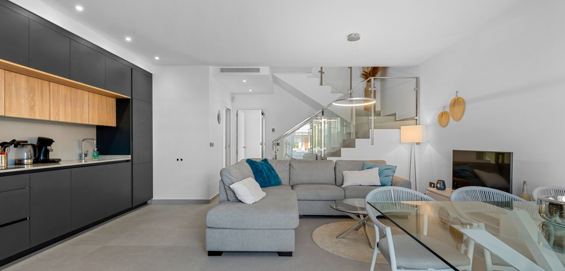 Ven a ver esta vivienda recientemente terminada, prácticamente nueva, en Rojales. ¿Te imaginas vivir en el pintoresco pueblo de Rojales, a solo 15 minutos de la playa, en una impresionante villa con 4 dormitorios y 2 baños? Esta villa cuenta con una hermosa piscina privada, un amplio sótano y todas las comodidades necesarias para ser la casa de tus sueños. Es un auténtico punto de atracción para los amantes del lujo y la tranquilidad. Esta casa de acabado lujoso está situada en una hermosa parcela orientada al norte y ha sido equipada con materiales de alta calidad, sin escatimar en detalles. La propiedad está disponible de inmediato y lista para entrar a vivir. En resumen, ¿quieres disfrutar de una casa en España o prefieres alquilarla? ¡Esta es tu oportunidad perfecta! La villa se divide en tres niveles: la planta baja, la primera planta y el nivel -1. Planta Baja: Al entrar por la puerta principal, accedes al salón. El espacioso salón con cocina moderna está completamente equipado con todo lo necesario. En la parte trasera de la vivienda, encontrarás el acceso al primer dormitorio con baño en suite. No te olvides del jardín, que cuenta con una piscina privada y varios espacios acogedores para disfrutar del sol español. Primera Planta: Sube las escaleras a la primera planta, donde encontrarás dos dormitorios, uno de ellos con baño en suite. En esta planta también hay un precioso espacio exterior ideal para relajarse. Nivel -1: Desde la planta baja, baja al sótano. Esta amplia área incluye una sala de estar/dormitorio y es perfecta para crear dos dormitorios adicionales, ¡lo que convierte esta propiedad en una casa de hasta 5 dormitorios! Características Principales: Superficie construida: 192 m²Parcela: 137 m²Año de construcción: 20213 dormitorios2 bañosPiscina privadaSótano completamente terminadoCocina y baños totalmente equipadosIncluye mobiliario Este anuncio es informativo y no se derivan derechos de la información mencionada anteriormente.