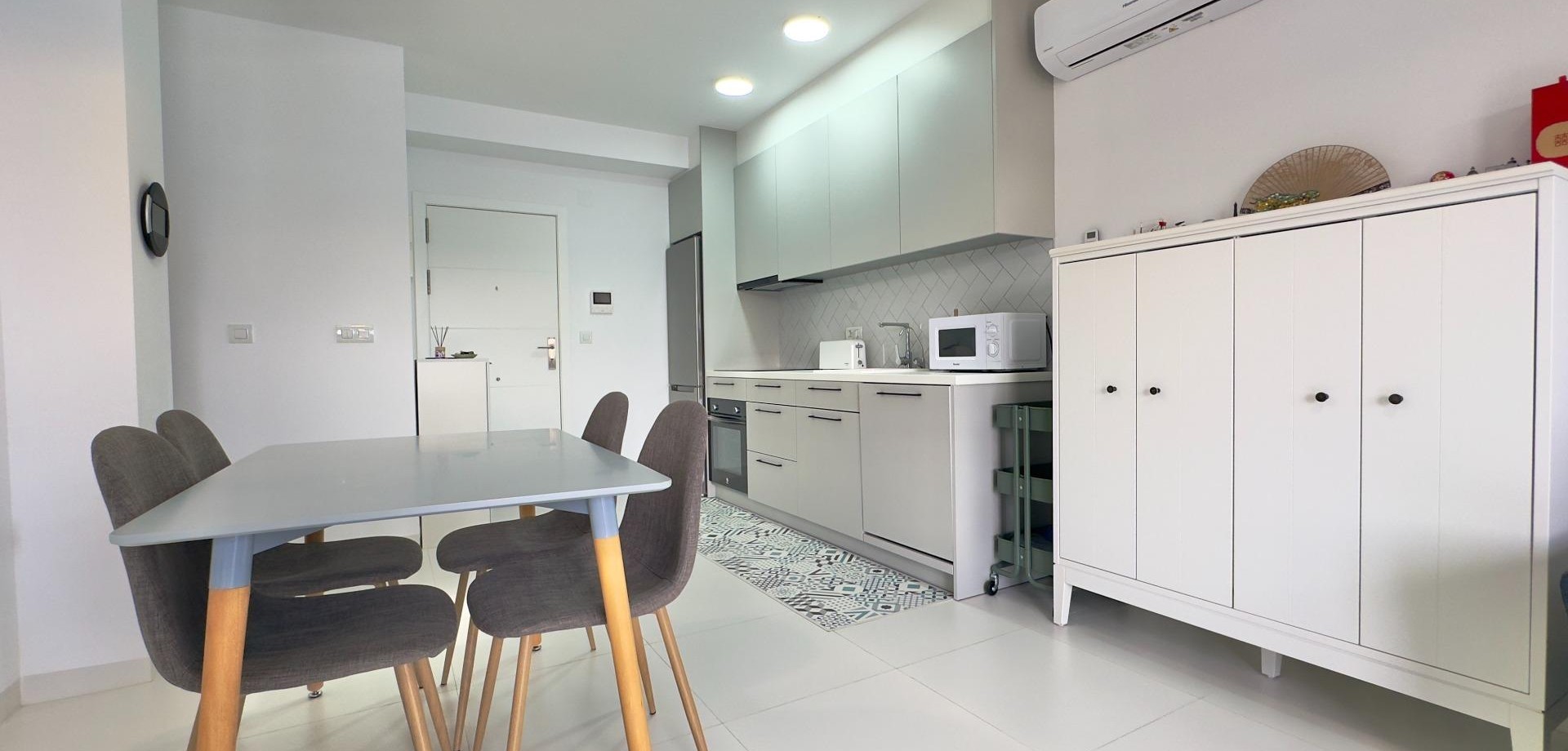 Luminoso apartamento en tercera planta y en esquina, situado en un edificio de reciente construcción en la zona nueva y en plena expansión de San Miguel de Salinas. La vivienda cuenta con 2 dormitorios y 2 baños, ofreciendo una distribución cómoda y funcional.~~La cocina está integrada en el salón, creando un espacio moderno y abierto, ideal para el día a día. Desde el salón se accede a un balcón con orientación suroeste, que disfruta de sol durante la mayor parte del día y ofrece vistas despejadas a la rambla, aportando una agradable sensación de amplitud y tranquilidad.~~El apartamento forma parte de un residencial cerrado con piscina comunitaria, perfecto para disfrutar del clima mediterráneo. Además, incluye plaza de parking y trastero, aportando un extra de comodidad y espacio de almacenaje.~~Una vivienda ideal tanto como residencia habitual, segunda vivienda o inversión, en una zona bien comunicada y con todos los servicios cercanos.~~San Miguel de Salinas es un destino cada vez más demandado en la Costa Blanca, ideal para la inversión en alquiler turístico. Su ubicación estratégica, cerca de las playas de Orihuela Costa, campos de golf y servicios, junto a su clima soleado durante todo el año, garantiza una alta demanda tanto vacacional como de larga estancia.~