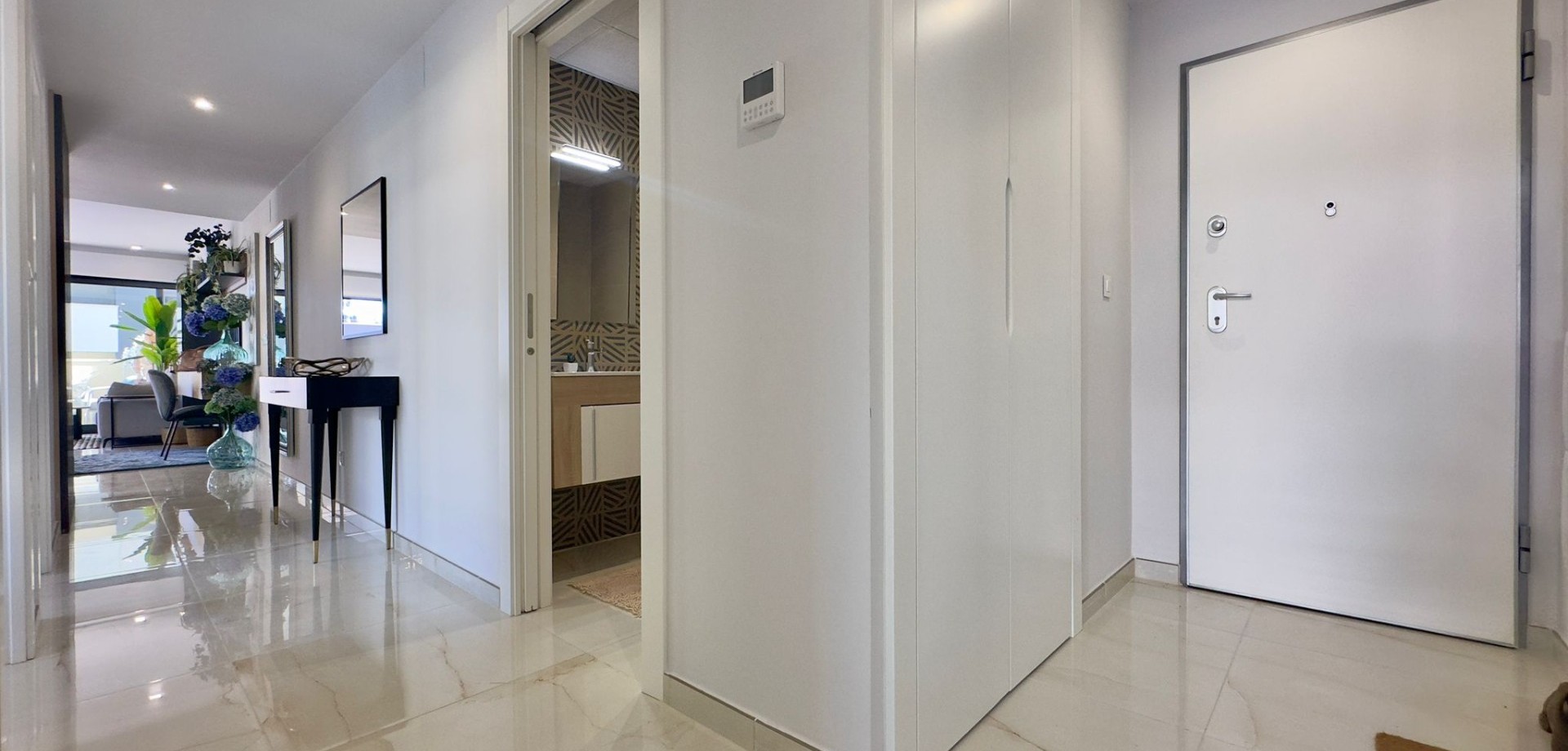 Descubre esta espectacular vivienda nueva a estrenar en el exclusivo residencial Amanecer Deluxe, ubicado en la codiciada zona de Playa Flamenca.~~Se trata de un amplio apartamento en planta baja que destaca por su impresionante terraza privada de aproximadamente 136 m2, ideal para disfrutar del clima mediterráneo todo el año, organizar reuniones al aire libre o simplemente relajarse con vistas despejadas al mar y a las zonas verdes.~~Características principales:~~3 dormitorios amplios, todos exteriores~~2 baños completos (uno de ellos en suite)~~Luminoso salón-comedor con acceso directo a la terraza~~Cocina moderna~~Vistas al mar y a jardines~~2 plazas de garaje incluidas~~Trastero incluido en el precio~~ Zonas comunes exclusivas:~~Amplias zonas verdes y ajardinadas~~Piscina comunitaria~~Parque infantil~~Gimnasio totalmente equipado~~Sauna~~Una vivienda perfecta tanto como residencia habitual, segunda vivienda o inversión, gracias a su amplitud, privacidad y excelentes prestaciones.