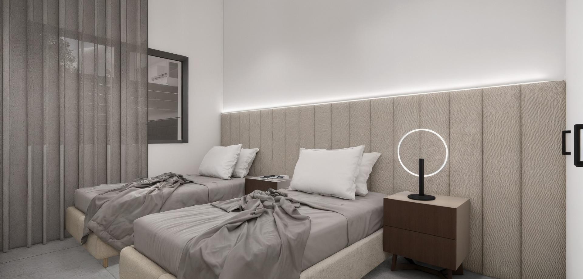 Modernas villas de nueva construcción en La Herrada Los Montesinos con piscina privada Exclusivo proyecto residencial en un entorno tranquilo Situada en la prestigiosa urbanización La Herrada, en Los Montesinos, esta exclusiva promoción de 16 modernas villas ofrece privacidad, comodidad y una excelente calidad de vida. La Herrada es conocida por su tranquilo ambiente residencial, su proximidad a los servicios cotidianos y su privilegiada ubicación entre las famosas salinas de Torrevieja y La Mata. Es un lugar ideal para aquellos que buscan un estilo de vida mediterráneo relajado y saludable en el sur de la Costa Blanca. Diseño contemporáneo con espacios interiores optimizados Cada villa tiene 130 m² de superficie habitable bien distribuida en dos plantas, diseñadas para maximizar la luz natural y la funcionalidad. Construidas en parcelas a partir de 250 m², las propiedades ofrecen amplias zonas exteriores perfectas para tomar el sol, divertirse o relajarse junto a la piscina privada. Cómoda distribución en dos plantas La planta baja cuenta con un salón diáfano con cocina totalmente integrada y acceso directo al jardín y a la zona de la piscina. Esta planta también incluye dos dormitorios, un cuarto de baño completo y un práctico lavadero. En la planta superior hay dos amplios dormitorios, cada uno con su propio cuarto de baño, uno de ellos en suite. Ambos dormitorios tienen acceso a una terraza privada abierta de 28 m². Para aquellos que deseen aún más espacio exterior, hay un solárium opcional en la azotea disponible con un coste adicional. Acabados de alta calidad y características modernas Las villas incluyen acabados de calidad, como muebles de baño, espejos, mamparas de ducha y calefacción por suelo radiante en todos los cuartos de baño. Hay preinstalación para aire acondicionado por conductos, puerta de entrada motorizada para vehículos, aparcamiento privado en la parcela y acceso residencial cerrado a través de una calle interna privada. Ubicación privilegiada cerca de los principales servicios y atracciones Playas de Guardamar y Torrevieja a 9 km La Marquesa Golf, La Finca Golf y Vistabella Golf a menos de 5 km Aeropuerto de Alicante a 29 km Parques naturales, salinas, rutas ciclistas y senderos para hacer senderismo en las inmediaciones Viva cómodamente en el corazón de la Costa Blanca Estas villas de nueva construcción en Los Montesinos ofrecen la combinación perfecta de comodidad moderna, entorno natural y excelente accesibilidad. Tanto si busca una residencia permanente como una casa de vacaciones, esta promoción le ofrece todo lo que necesita para disfrutar de un estilo de vida mediterráneo tranquilo y cómodo. Póngase en contacto con nosotros hoy mismo para concertar una visita y asegurarse su nueva vivienda en La Herrada.