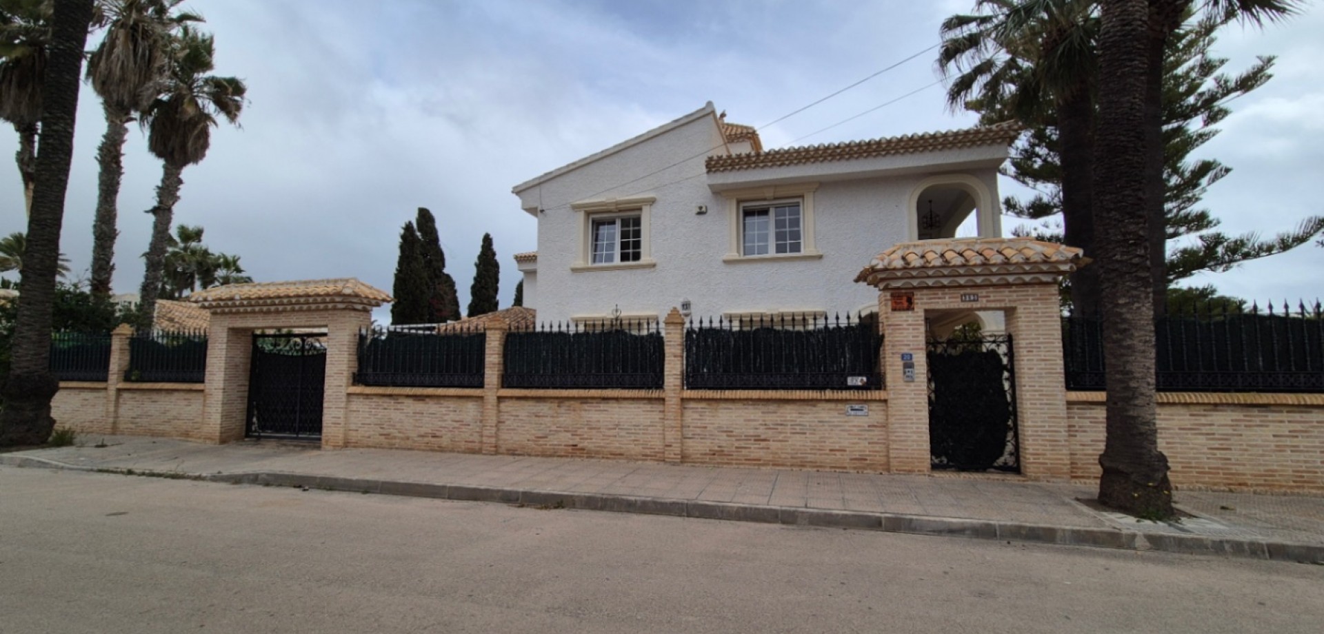 Ubicada en una calle privada bordeada de mansiones exclusivas, esta impresionante propiedad en Cabo Roig emana el lujoso encanto y la sofisticación de una finca al estilo de Miami. El amplio jardín ofrece una escapada serena, con una pequeña cancha de baloncesto para momentos activos y mucho espacio para relajarse o entretenerse. Lo más destacado de la propiedad es el área de la piscina cerrada, con un elegante espacio para reuniones diseñado para cenas y reuniones. El área está protegida por un techo, pero permanece abierta a las vistas circundantes, lo que permite una experiencia gastronómica al aire libre que se siente íntima y amplia. En el interior, la mansión cuenta con seis habitaciones de tamaño generoso, cada una de las cuales es un refugio tranquilo con un amplio espacio para acomodar a una gran familia multigeneracional. Los cinco baños bellamente diseñados garantizan la comodidad y la privacidad de cada huésped. La gran sala de estar cuenta con muebles rústicos que se mezclan sin esfuerzo con el estilo arquitectónico moderno de la casa, creando un ambiente cálido y acogedor. La cocina completamente renovada es el sueño de un chef, con electrodomésticos nuevos y de última generación y amplias encimeras que invitan a la creatividad culinaria. Esta lujosa mansión ofrece el equilibrio perfecto entre elegancia moderna y comodidad atemporal, lo que la convierte en el mejor escenario para reuniones familiares, entretenimiento o simplemente relajarse con estilo.