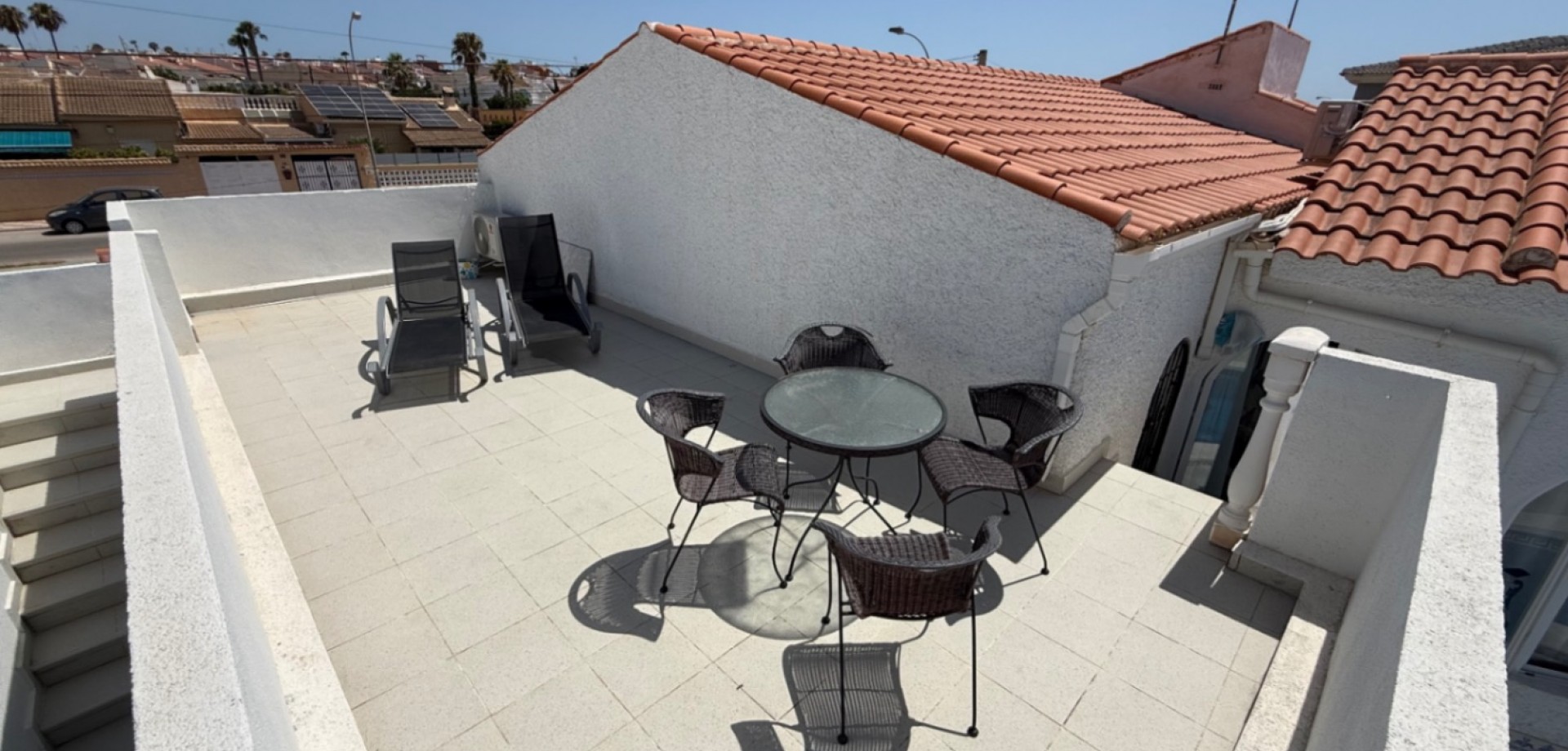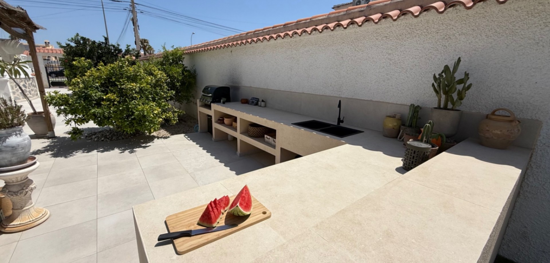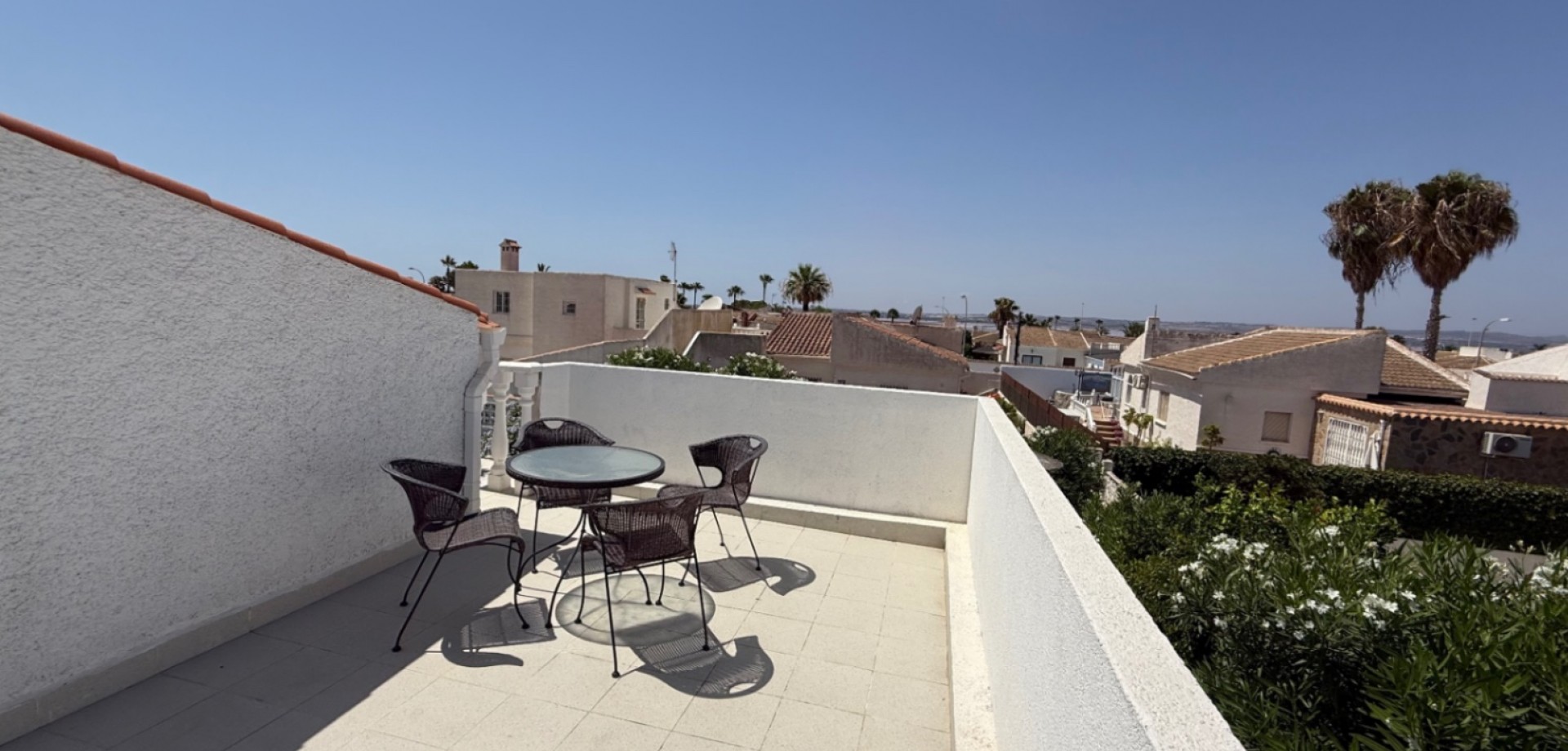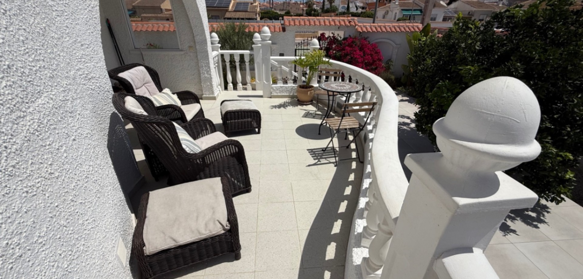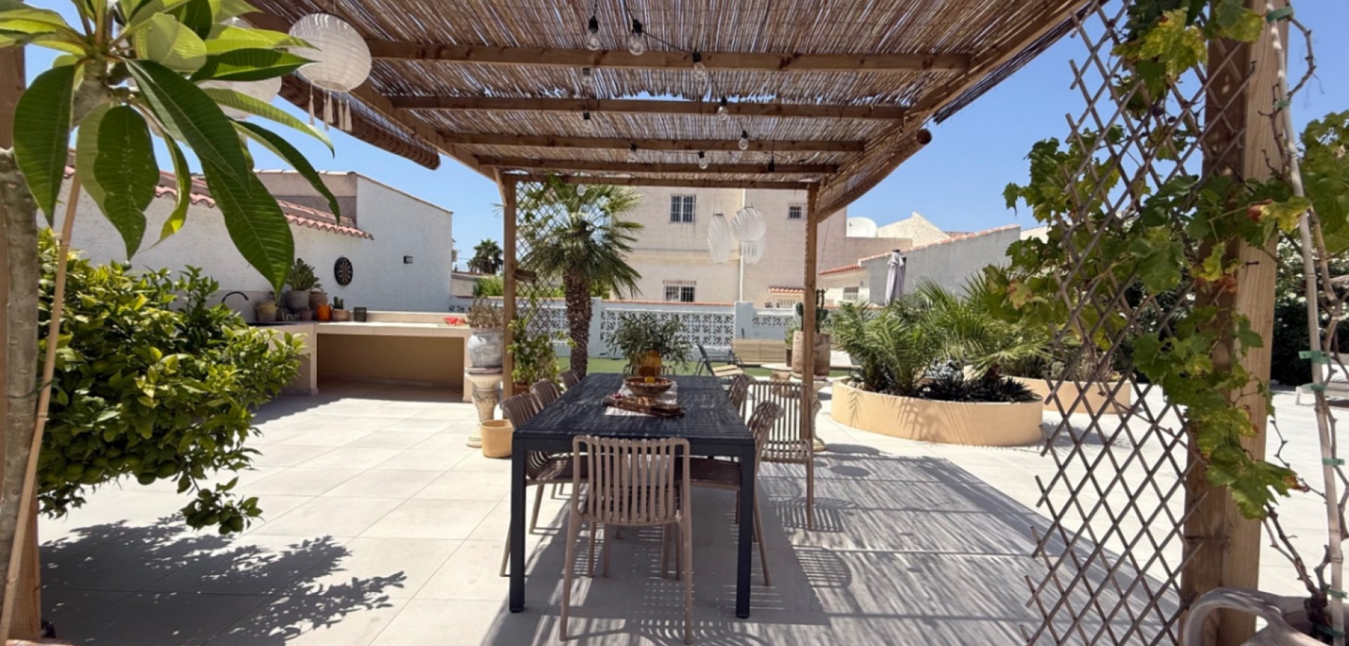 Presentamos esta villa independiente de tres habitaciones y dos baños, elegantemente presentada, idealmente ubicada en el codiciado vecindario de El Chaparral / San Luis - Costa Blanca Sur. Situada en una generosa parcela de aproximadamente 800 m², esta propiedad ofrece una rara combinación de privacidad, espacio y estilo refinado. Rodeada de muros de privacidad y con acceso a través de una entrada segura, la villa ofrece una atmósfera tranquila y acogedora desde el momento de su llegada. El hogar ha sido cuidadosamente actualizado a un estándar alto, combinando un diseño nórdico limpio con la calidez de los elementos tradicionales españoles. El resultado es un interior armonioso y acogedor que se siente tanto contemporáneo como atemporal. La espaciosa veranda acristalada da a la impresionante área de la piscina con piscina de agua salada y jardines cuidadosamente mantenidos y de bajo mantenimiento, creando una experiencia de vida interior-exterior sin interrupciones que se puede disfrutar durante todo el año. Los jardines de la propiedad tienen una codiciada orientación suroeste, bañados por la luz natural durante todo el día, perfectos para quienes buscan sol y entretenimiento al aire libre. Varias zonas de descanso, piscina de agua salada, áreas de comedor, solárium con vistas al lago salado y cocina exterior completan realmente este oasis al aire libre. Los jardines están llenos de árboles frutales, incluyendo: naranja, naranja sanguina, mandarina, limón, mango y olivo. Las características adicionales incluyen aparcamiento fuera de la carretera, una zona de almacenamiento dedicada, un baño completo exterior para la comodidad junto a la piscina y exteriors bellamente alicatados diseñados para un fácil mantenimiento. Cada rincón de esta casa ha sido cuidadosamente considerado para maximizar el confort, el estilo y la funcionalidad. Idealmente situada a pocos momentos de las comodidades locales, con fácil acceso a Torrevieja, el centro comercial Habaneras y las playas de la Costa Blanca, esta villa ofrece tanto conveniencia como un entorno de vida sereno. Ya sea que esté buscando una residencia permanente, un refugio de vacaciones o una inversión inteligente, esta es una propiedad que no querrá perderse.