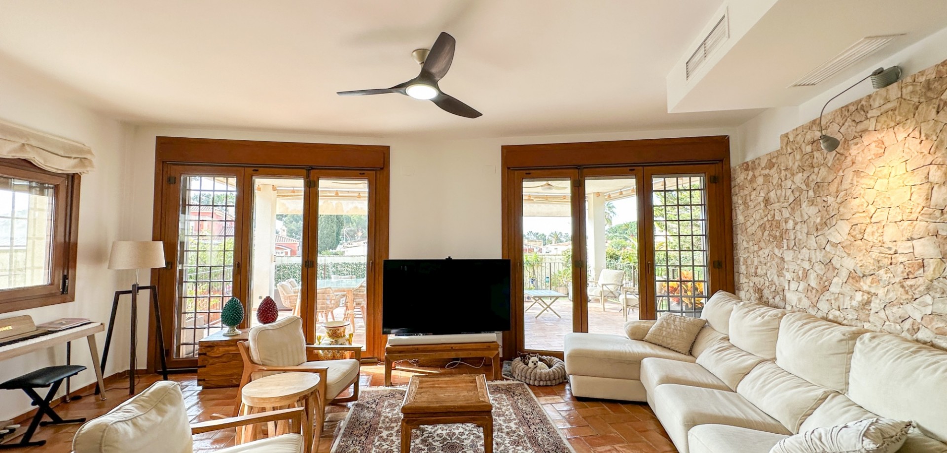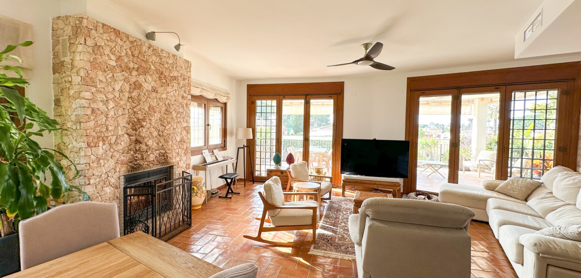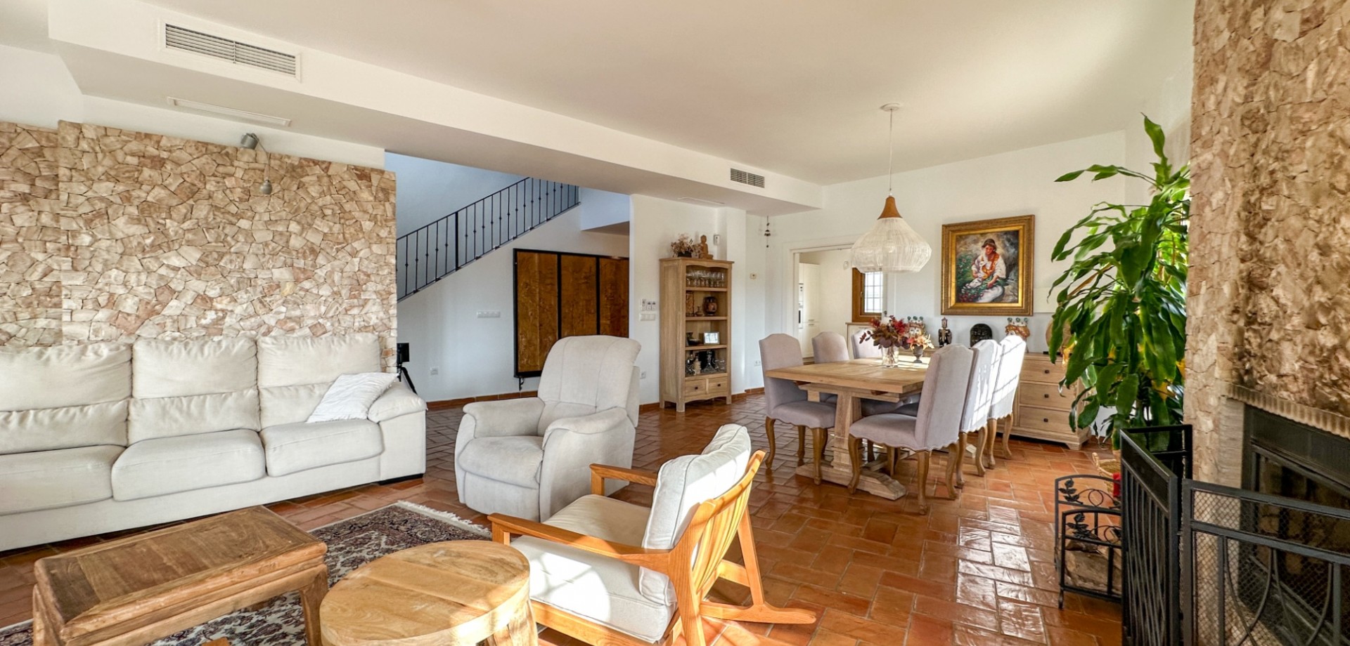 Esta excepcional villa de estilo mediterráneo se encuentra a solo 800 metros del mar, en una de las zonas residenciales más prestigiosas de Dehesa de Campoamor, en la codiciada Orihuela Costa. Con amplios espacios, total privacidad y acabados de alta gama, es ideal como residencia habitual, elegante segunda vivienda o exclusivo refugio junto al mar. Ubicada sobre una parcela privada de 725 m², la villa ofrece 450 m² construidos distribuidos en tres niveles. Su orientación sur garantiza una excelente luminosidad durante todo el año. Construida en 2006 y completamente renovada en 2020. Dispone de 7 dormitorios y 5 baños: Sótano: 2 dormitorios y 1 bañoPlanta baja: 3 dormitorios y 2 bañosPrimera planta: 2 dormitorios y 2 baños Suite principal de 32 m² con baño en suite y vestidor. Jardín con piscina privada de 27 m². Garaje para tres coches. Cocina de 23 m² de la marca Schmidt. Extras: aire acondicionado, placas solares, cargador eléctrico, sistema de seguridad, parcela en esquina, suelos de terracota, detalles en hierro forjado. Acceso a zona comunitaria exclusiva con instalaciones deportivas y restaurante privado.