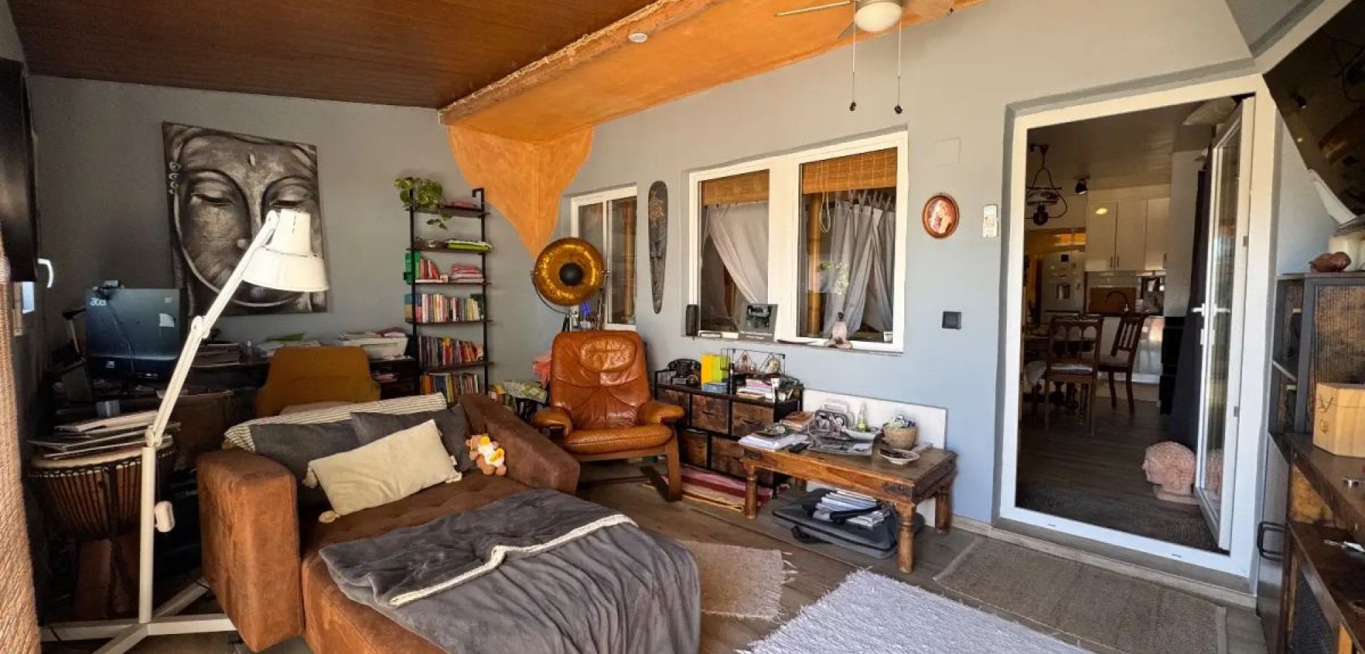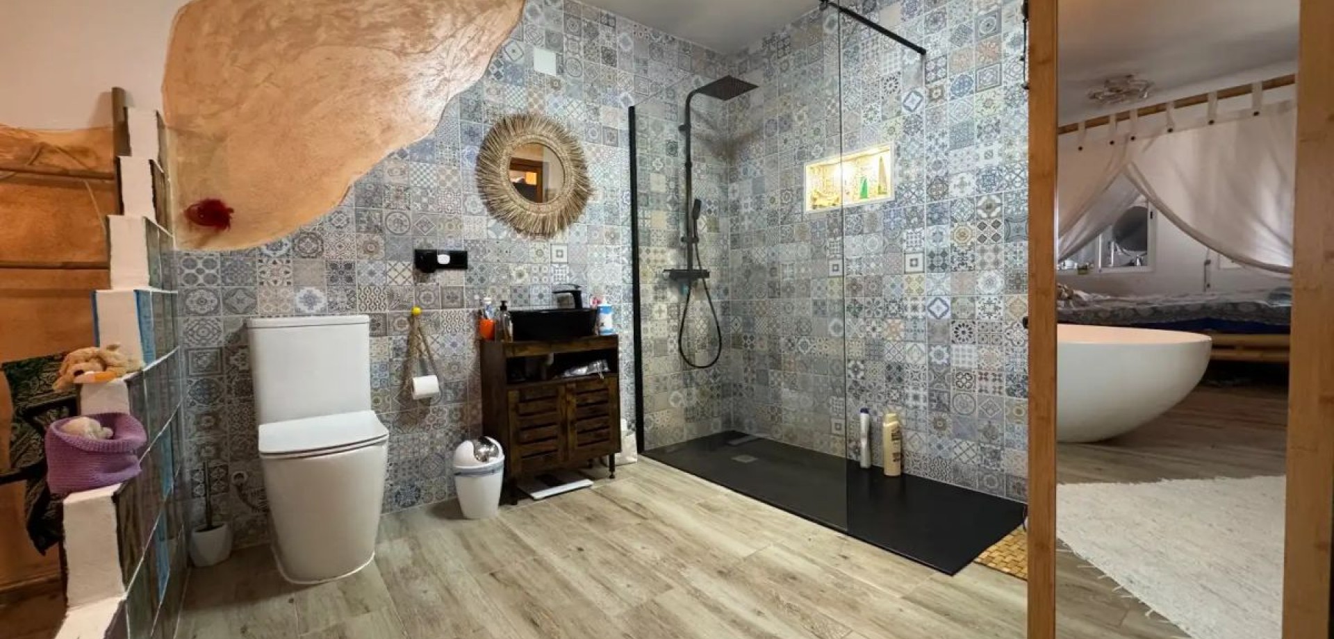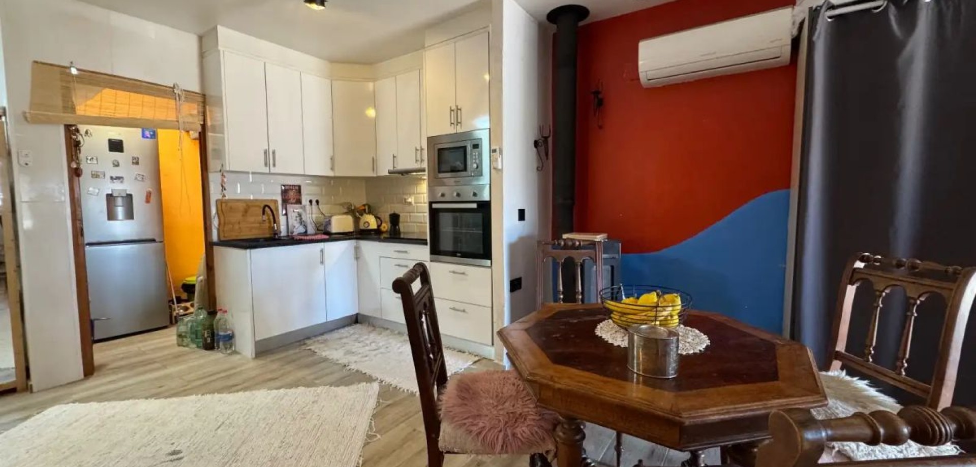 Bienvenido a esta propiedad única y completamente reformada en Torrevieja, donde el diseño contemporáneo se mezcla con sutiles detalles rústicos. La casa está idealmente ubicada a poca distancia del famoso Lago Rosa (Laguna Rosa), con fácil acceso a restaurantes, supermercados, cafés, áreas de ocio y escuelas. La propiedad ofrece un jardín privado con vistas abiertas directamente hacia el Lago Rosa — una característica rara que te permite disfrutar de uno de los paisajes naturales más icónicos de Torrevieja desde tu hogar. Es un espacio ideal para relajarse y disfrutar del clima mediterráneo durante todo el año. Hay estacionamiento en la calle conveniente disponible justo afuera de la propiedad. En la entrada, te recibe una brillante terraza acristalada con grandes ventanas, creando un espacio adicional perfecto para relajarse o entretener a los invitados. El interior se abre a un elegante diseño tipo loft con un concepto de planta abierta. La cocina está perfectamente integrada, y una práctica área de servicio con una ventana proporciona luz natural y ventilación. El baño es moderno y elegante, con una ducha a ras de suelo de diseño limpio. Una de las características más distintivas de esta casa es la bañera independiente colocada en el centro del espacio, junto a la cama y el área de comedor — creando una atmósfera única y sofisticada.
