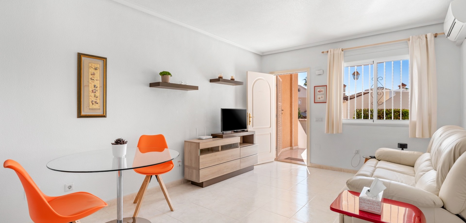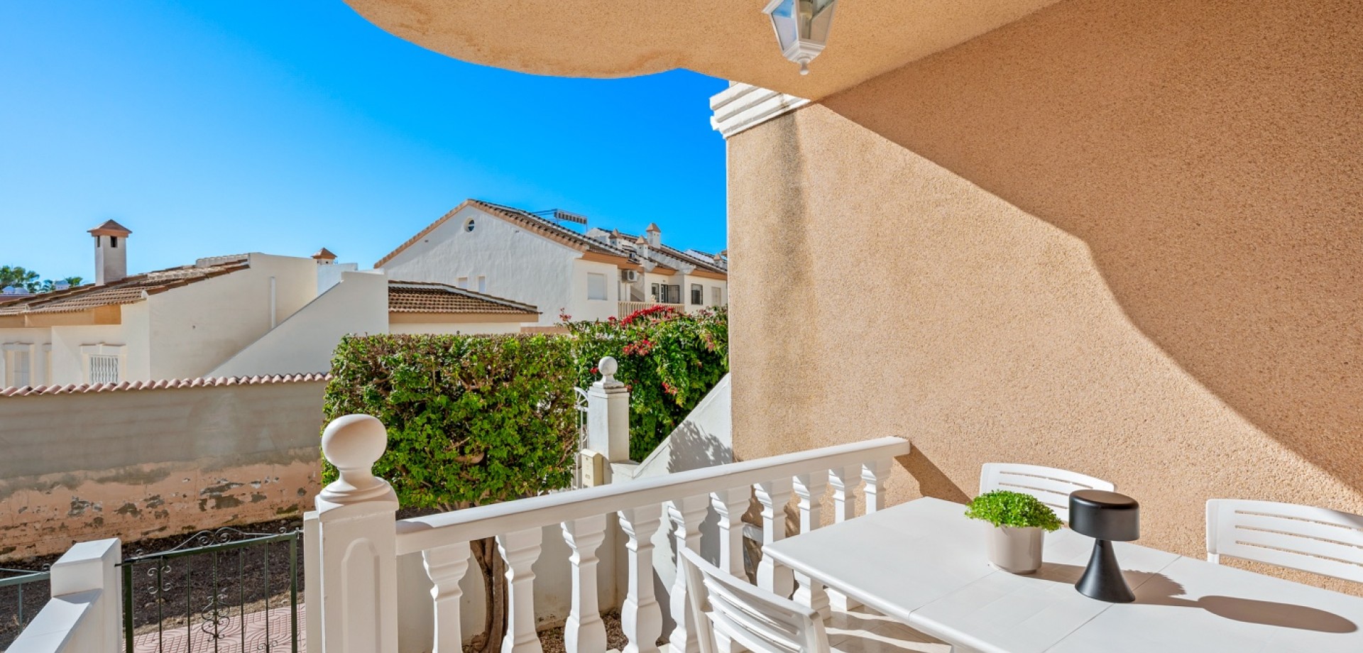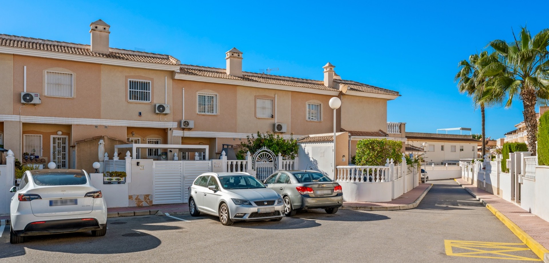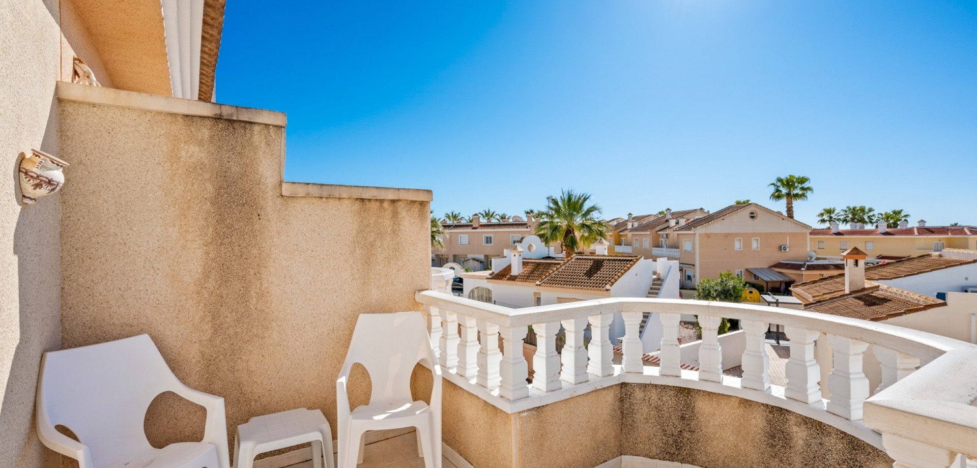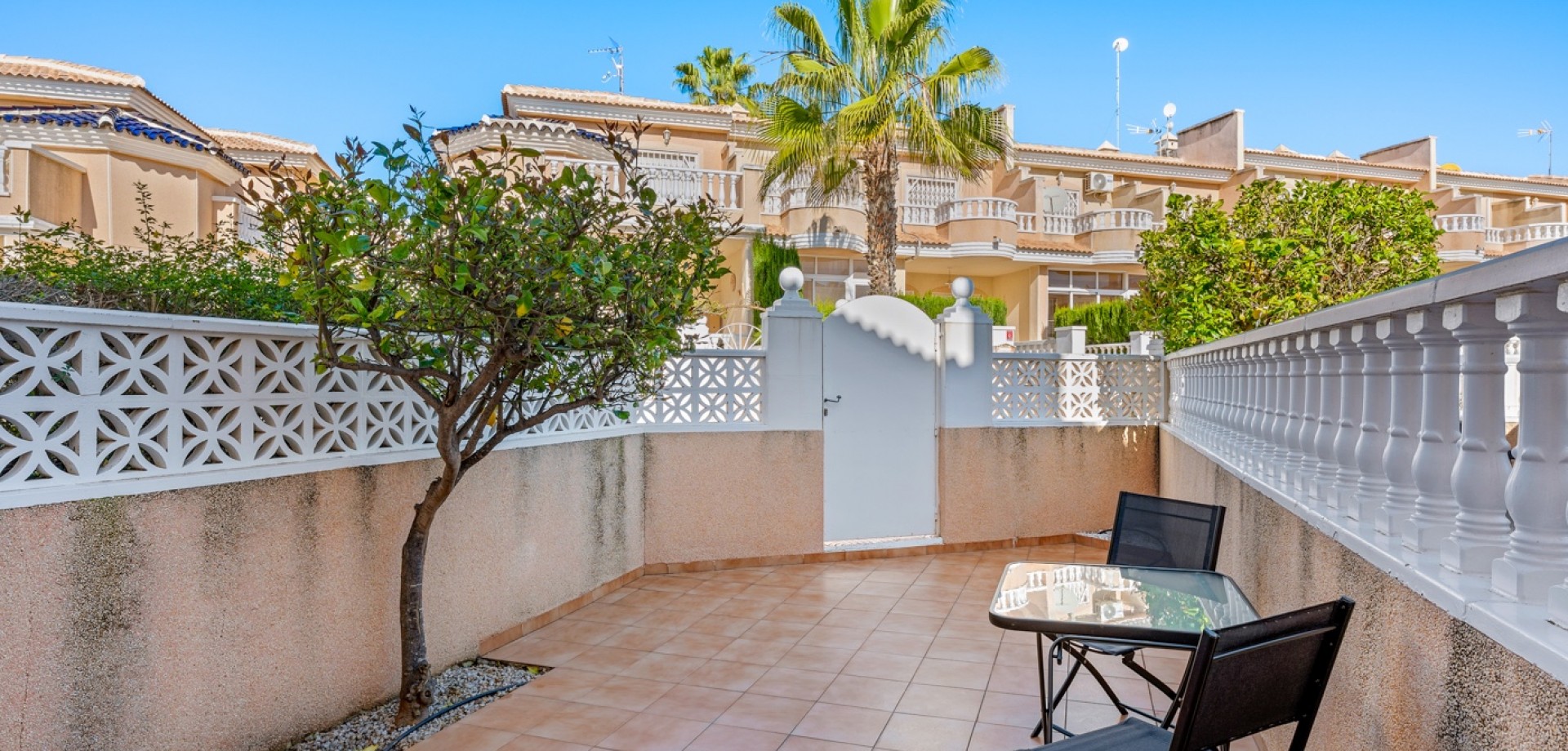 Descubre este encantador adosado en el residencial Las Palmeras, situado en Ciudad Quesada, una de las zonas más demandadas por su tranquilidad y cercanía a todos los servicios. La vivienda se distribuye en dos plantas y cuenta con dos fantásticas terrazas que permiten disfrutar del sol durante todo el día: la terraza delantera recibe el sol de la mañana, perfecta para empezar el día al aire libre, mientras que la terraza trasera ofrece sol por la tarde, ideal para relajarse o disfrutar de reuniones con familia y amigos. En la planta principal encontramos un amplio y luminoso salón, un aseo de cortesía y una cocina independiente con acceso directo a la terraza trasera, donde además hay un espacioso trastero con zona de lavandería. En la planta superior se encuentran dos dormitorios, destacando el dormitorio principal de matrimonio con acceso a una agradable terraza privada. En esta planta también se ubica el baño principal. La vivienda forma parte de una cuidada comunidad que dispone de piscina comunitaria y una plaza de aparcamiento asignada por vivienda. Su excelente ubicación permite disfrutar de la tranquilidad sin renunciar a la comodidad: a solo 10 minutos de la playa y a 5 minutos de supermercados, restaurantes y todo tipo de servicios. Una oportunidad ideal tanto como vivienda habitual o casa de vacaciones