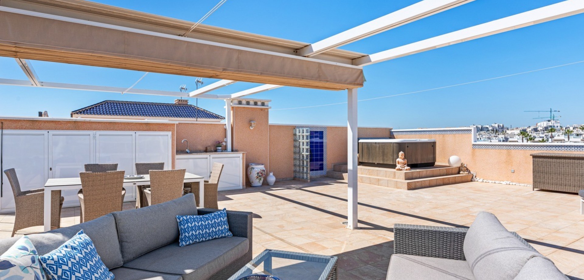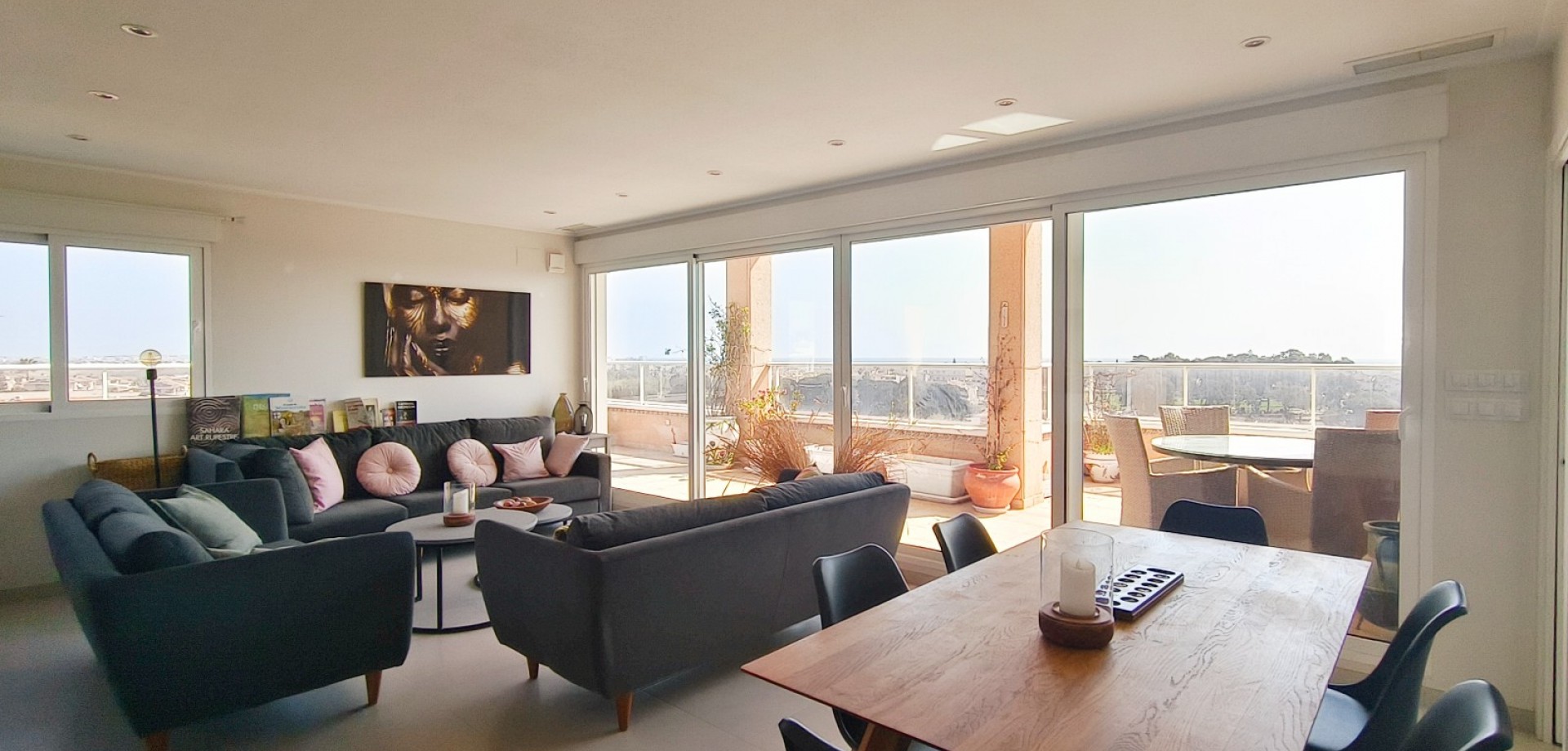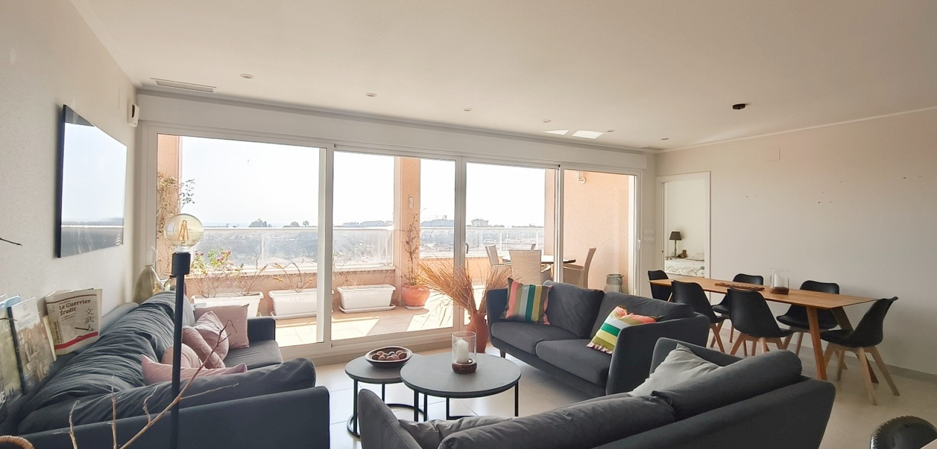 Descubra este magnífico ático de 3 dormitorios y 2 baños, situado en la tercera y última planta con ascensor, en una moderna residencia construida en 2019. Se vende amueblado y equipado (electrodomésticos incluidos), por lo que este piso está listo para recibir a sus futuros propietarios. Ofrece un espacio diáfano y funcional, con aire acondicionado centralizado para un confort óptimo durante todo el año. Su verdadera ventaja: un espectacular solárium privado de 97 m², con jacuzzi y cocina de verano, que ofrece unas vistas impresionantes al mar. Un espacio ideal para disfrutar del clima mediterráneo, relajarse o recibir a familiares y amigos. El precio incluye una plaza de aparcamiento en el sótano con acceso directo por ascensor, así como un trastero. La residencia, cerrada y segura, ofrece servicios de alta gama: gran piscina exterior, piscina interior climatizada, sauna, zona de juegos para niños y gimnasio. Ubicación privilegiada, a solo 5 minutos de las playas, así como de todos los servicios: restaurantes, bares y comercios. Una oportunidad única en el mercado. Póngase en contacto con nosotros ahora mismo para concertar una visita.