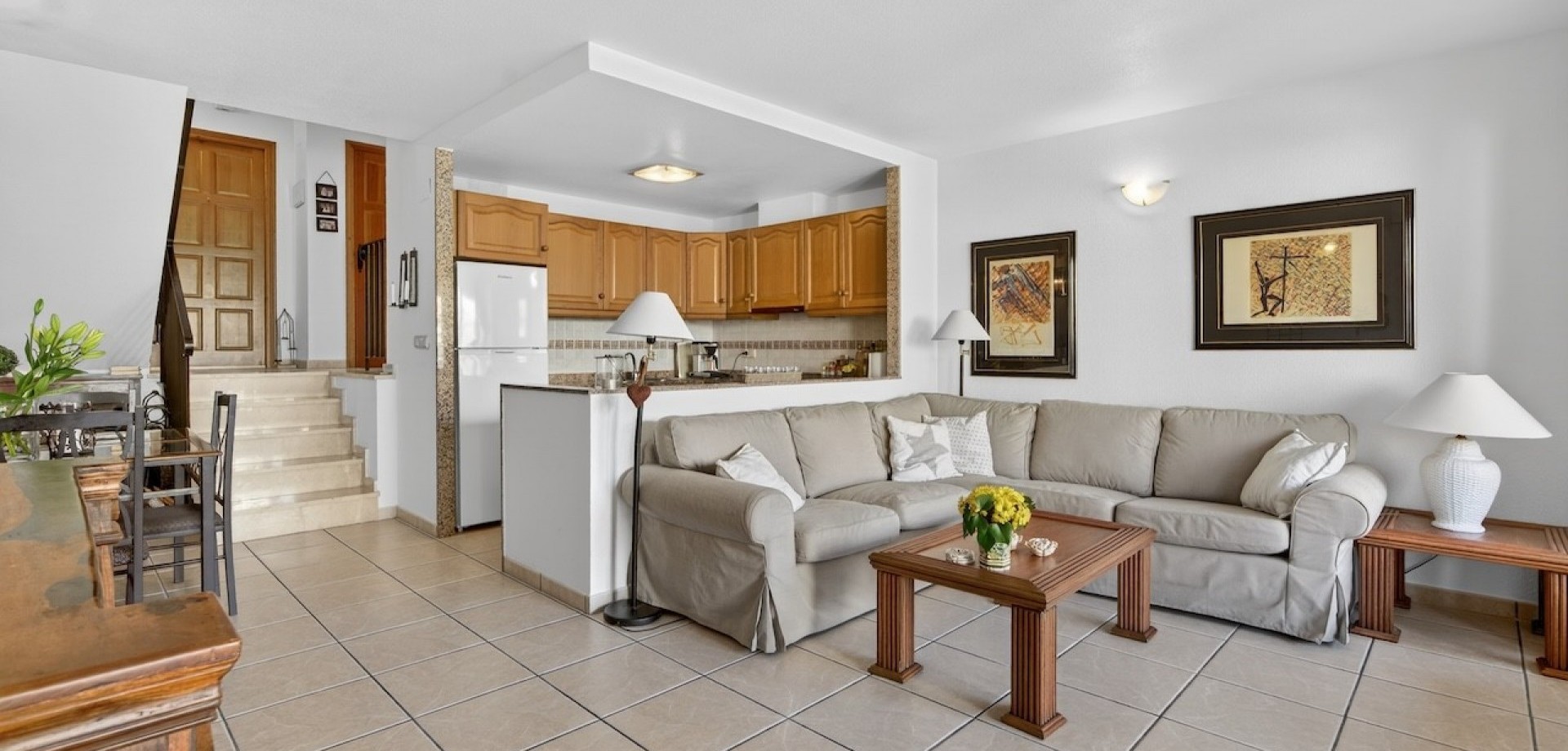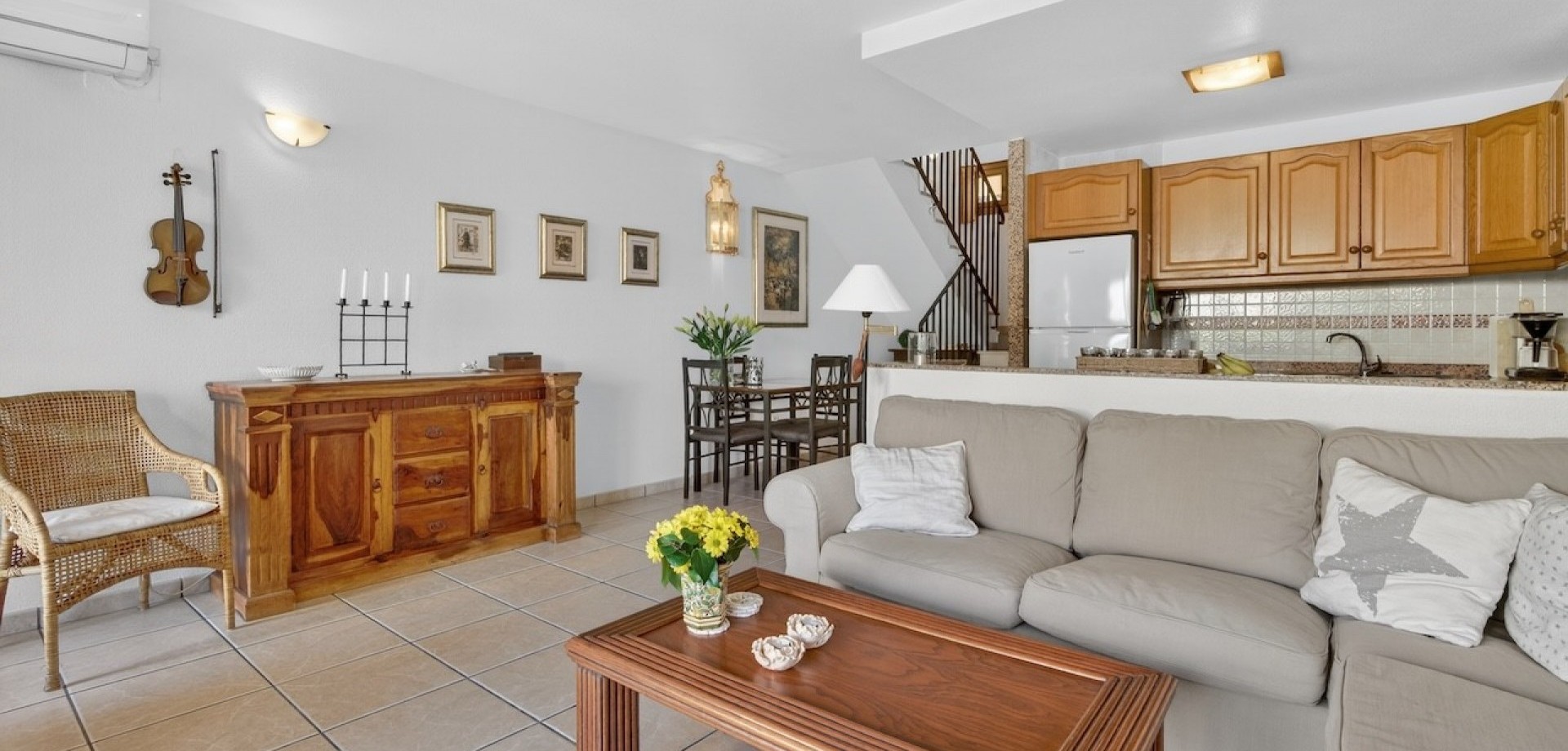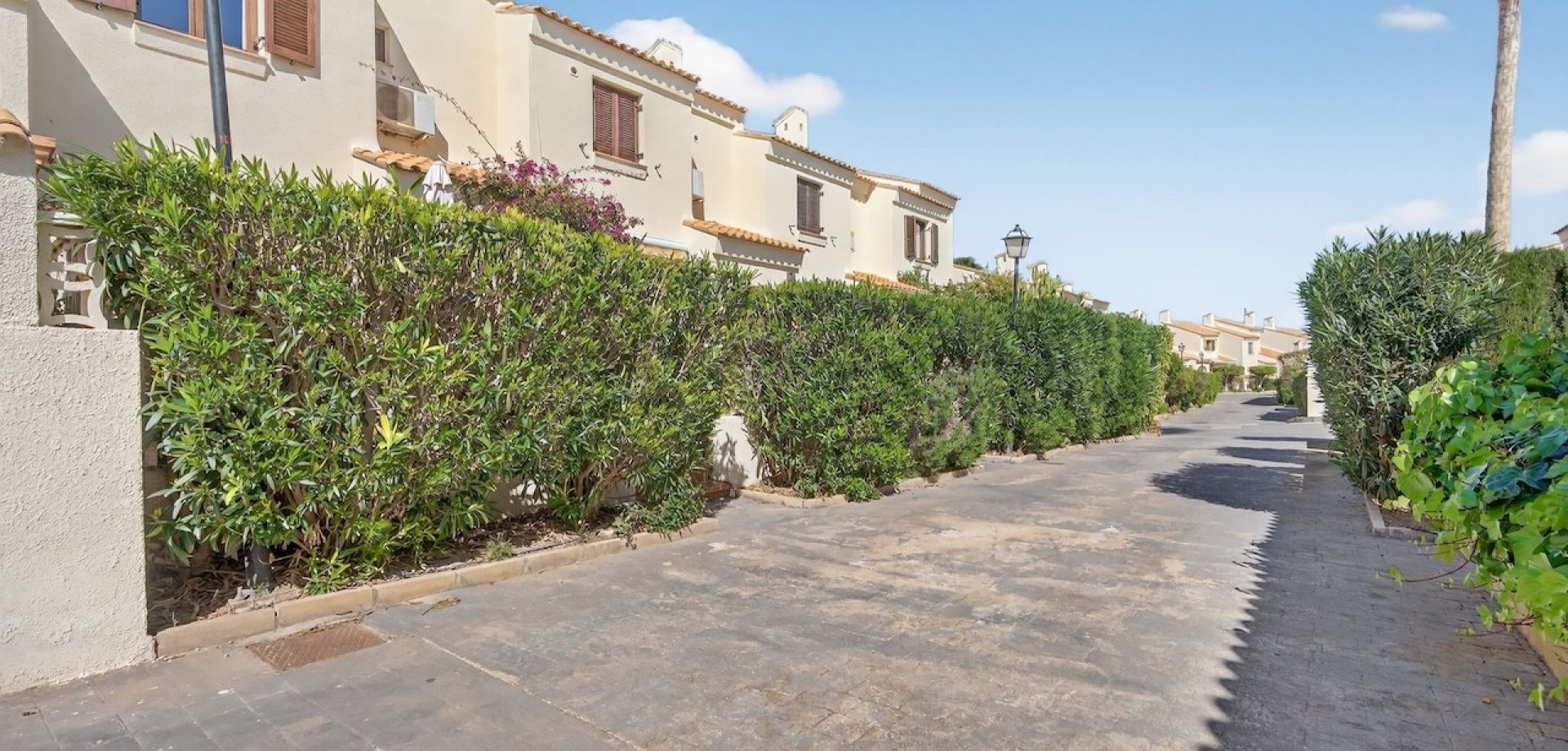 3 dormitorios | Solárium con vistas al mar | 2 terrazas | Garaje | Urbanización tranquila Se vende vivienda en esquina situada en una zona verde y tranquila de Gran Alacant. La propiedad se encuentra en una urbanización bien cuidada con amplias zonas comunes, piscina, pista de tenis y áreas recreativas. Es un lugar ideal para quienes buscan privacidad, tranquilidad y una vida cómoda cerca de la naturaleza. Sobre la vivienda La vivienda ha sido diseñada pensando en la funcionalidad y en poder disfrutarla durante todo el año. Gracias a sus dos terrazas con diferentes orientaciones, permite aprovechar el sol en invierno y la sombra en verano. Planta baja: Luminoso salón con cocina abierta y salida directa a la terraza orientada al norte, ideal para desayunos de verano y momentos de descanso a la sombra. En la entrada se encuentra una segunda terraza orientada al sur, perfecta para los meses más frescos. En esta planta también hay un despacho (ideal para teletrabajo), un aseo de cortesía y un práctico trastero. Primera planta: Zona privada con tres dormitorios y un baño. Todas las estancias son cómodas y cuentan con aire acondicionado, lo que garantiza confort durante todo el año. Solárium (terraza en la azotea): Amplia terraza con vistas al mar, palmeras y Alicante. Un espacio ideal para relajarse, tomar el sol y disfrutar de barbacoas. La distribución de la vivienda garantiza un alto nivel de privacidad. Espacio exterior y extras dos terrazas (orientación norte y sur)solárium privado con vistas al margaraje construido (abierto) con posibilidad de crear un trasteroaire acondicionado Zonas comunes y servicios La urbanización ofrece un entorno cómodo para vivir y descansar: gran piscina comunitariazonas verdes bien cuidadaspista de tenismiradoresambiente tranquilo y residencial Ubicación Gran Alacant es una de las zonas más demandadas de la Costa Blanca, ideal tanto para vivir todo el año como para disfrutar de vacaciones. colegio, tiendas, restaurantes y cafeterías a pocos minutoscerca del centro comercial Gran Alacantfácil acceso a las playasaproximadamente a 15 minutos del aeropuerto de Alicante ¿Buscas una vivienda en España? Esta propiedad es una opción ideal para quienes valoran la tranquilidad, la privacidad y una distribución funcional en un entorno natural. Contáctanos para concertar una visita, presencial o mediante videollamada en directo.