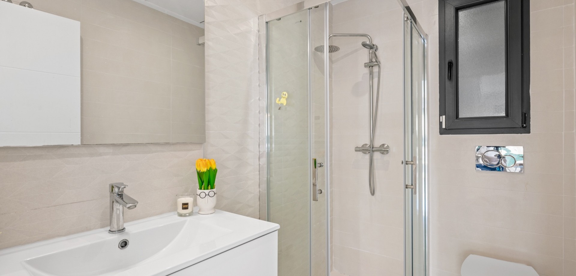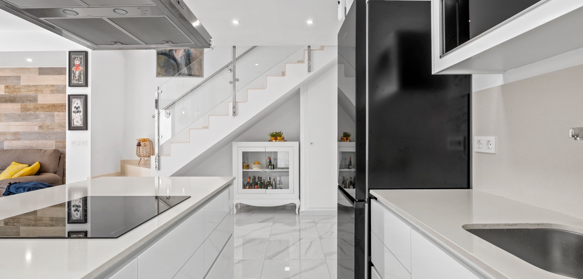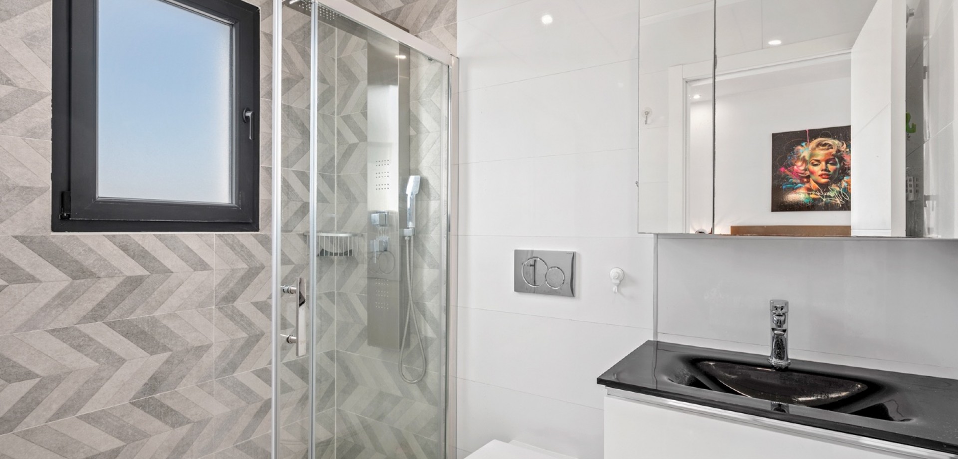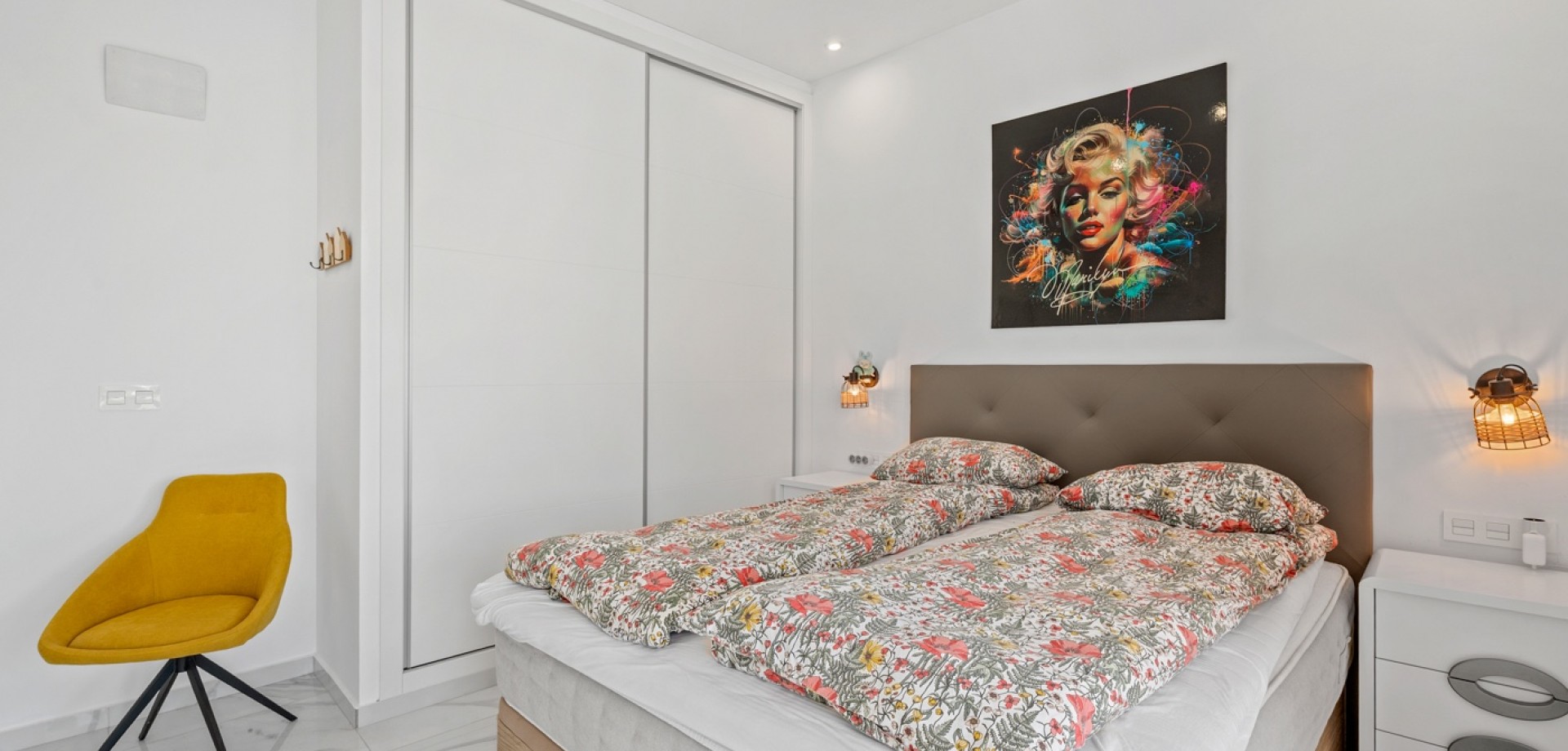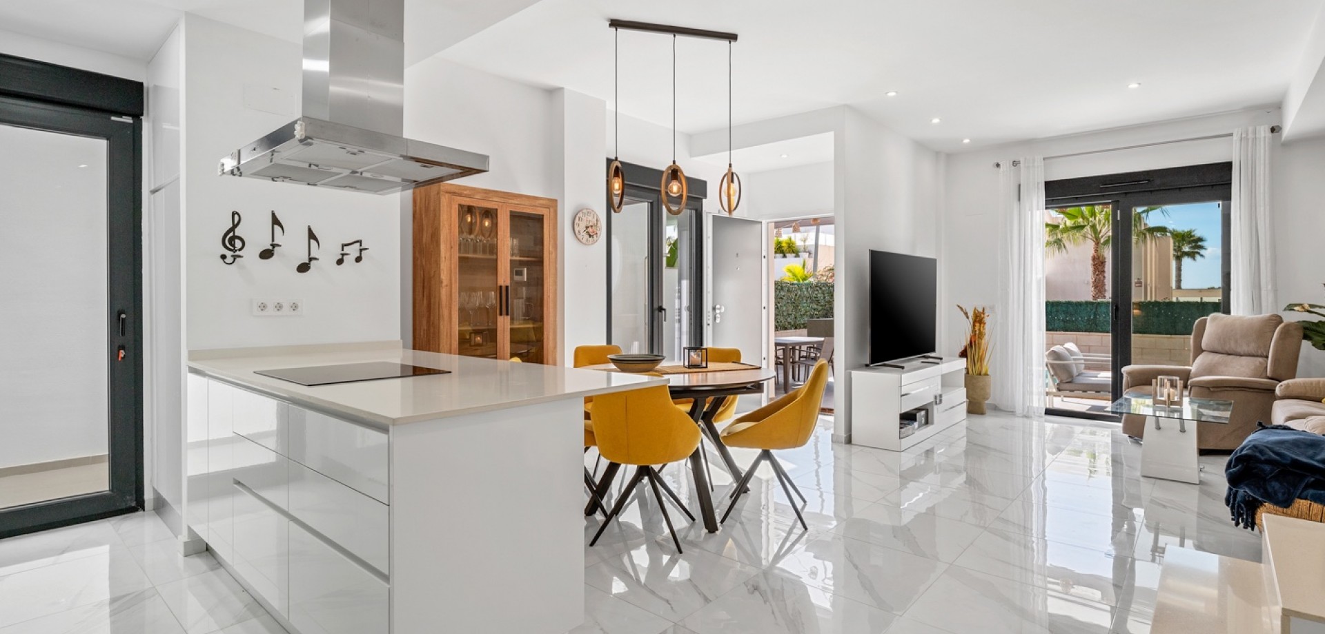 Esta moderna villa de 3 dormitorios en Benijófar, construida en 2023, ofrece un diseño elegante, piscina privada climatizada y excelentes espacios exteriores. La vivienda tiene una superficie construida de 111 m², distribuida en dos plantas, y consta de 3 dormitorios dobles y 3 baños. En la planta principal se encuentra un dormitorio doble, un baño y un luminoso salón-comedor con cocina de concepto abierto. Grandes puertas correderas desde el salón proporcionan acceso directo al jardín y a la zona de la piscina, creando una perfecta conexión entre interior y exterior. En la primera planta hay dos amplios dormitorios dobles, ambos con baño en suite. El dormitorio principal tiene acceso a una terraza privada, y desde esta planta también se accede a la gran terraza solárium. La villa fue terminada en 2023 y está equipada con varias características modernas, entre ellas: Aire acondicionado centralizado (frío/calor)Suelo radiante en el salón y en todos los bañosSistema de filtración de agua por ósmosis en la cocinaArmarios empotrados en todos los dormitoriosPaneles solares para agua caliente y electricidad Zona exteriorLa propiedad se sitúa en una parcela orientada al oeste con un bonito espacio exterior. El jardín cuenta con una piscina privada climatizada, zonas exteriores para relajarse y comer, y aparcamiento privado dentro de la parcela con puerta automática. También dispone de un área de trabajo con banco y un trastero adicional. Se han instalado varios toldos para proporcionar sombra durante los meses más cálidos. Además del jardín, la villa ofrece una terraza en la primera planta y un amplio solárium con vistas a las montañas, con espacio para zonas de descanso y entretenimiento. La terraza cuenta con zonas alicatadas y con césped artificial, además de un gran toldo para sombra. UbicaciónLa villa se encuentra a poca distancia a pie de la calle principal de Benijófar, donde se puede encontrar una amplia oferta de servicios, restaurantes, cafeterías y tiendas.