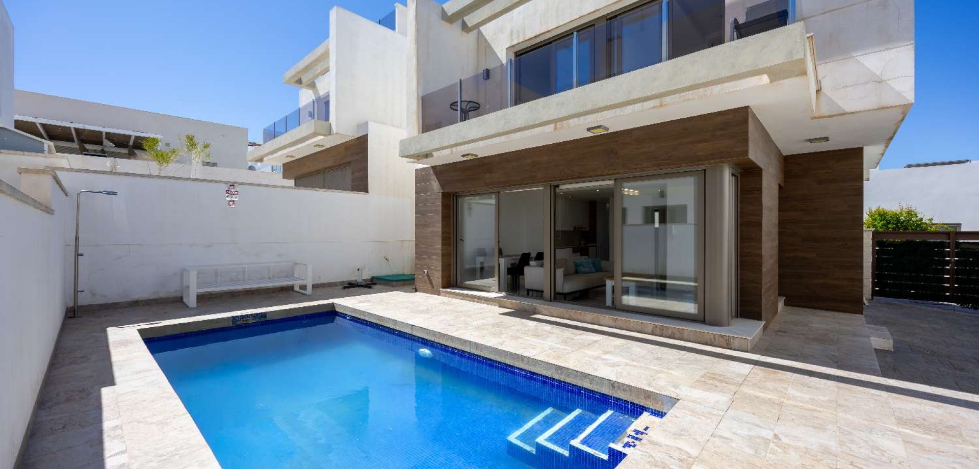 Impresionante villa de 3 dormitorios en Pau 26, Villamartín. Esta espléndida villa de tres dormitorios goza de una ubicación ideal en la codiciada zona de Pau 26, en Villamartín. La propiedad ofrece privacidad y un amplio espacio exterior. El exterior cuenta con un espacioso jardín con varias zonas de estar, una piscina privada y aparcamiento. Un elemento destacado es el amplio solárium en la azotea, perfecto para recibir invitados mientras se disfruta de vistas panorámicas de los alrededores. En el interior, la villa presenta un luminoso y moderno espacio diáfano con una amplia y bien equipada cocina. Dispone de tres dormitorios dobles de generosas dimensiones, incluyendo dos dormitorios principales con baño en suite, además de un baño familiar independiente, lo que la convierte en una opción ideal como residencia permanente, casa de vacaciones o inversión.