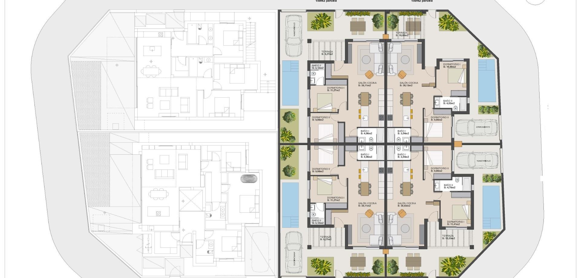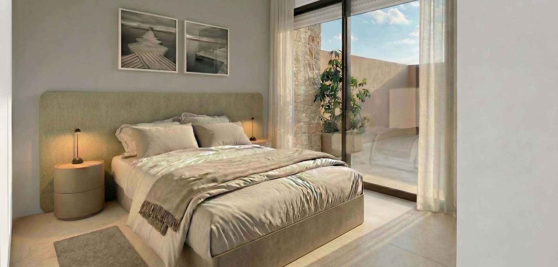 Villas de nueva construcción en El Alba Mediterranean Resort, en Torre Pacheco Vida moderna en un entorno turístico en crecimiento Descubra esta exclusiva promoción de nueva construcción de solo 6 villas independientes y semiindependientes situadas en El Alba Mediterranean Resort, en Torre Pacheco, Murcia. Esta zona residencial emergente combina arquitectura moderna, instalaciones de ocio y un relajado estilo de vida mediterráneo. Situada entre el club de golf Terrazas de la Torre y la localidad de Roldán, la ubicación ofrece tranquilidad sin renunciar a la proximidad de todos los servicios esenciales, como supermercados, restaurantes, bares y bancos. Villas contemporáneas con espacio exterior privado Estas modernas villas se distribuyen en una sola plantas y disponen de 2 dormitorios y 2 baños, uno de ellos ensuite. Cada vivienda cuenta con una cocina y una sala de estar diáfanas, diseñadas para maximizar la luz natural y el confort. Las parcelas en esquina disponen de jardín privado con piscina y espacio para aparcar el coche. Los interiores son elegantes y funcionales, lo que hace que estas viviendas sean ideales para vivir de forma permanente, para uso vacacional o como inversión. Los dormitorios están equipados con armarios empotrados con cajones, y los baños se entregan totalmente equipados con muebles con espejo y mamparas de ducha. Especificaciones y acabados de alta calidad Todas las villas están construidas con un alto nivel de calidad, utilizando materiales y acabados de primera. Las cocinas están completamente amuebladas y equipadas con electrodomésticos, mientras que los acabados de Porcelanosa se utilizan en todas las cocinas, baños y azulejos, lo que añade un toque de lujo. Otras características adicionales son la carpintería exterior con rotura de puente térmico y doble acristalamiento, persianas motorizadas en los dormitorios y preinstalación de aire acondicionado por conductos. Instalaciones del complejo y servicios locales El Alba Mediterranean Resort ofrece una excelente gama de instalaciones comunes diseñadas para todas las edades. Los residentes pueden disfrutar de una casa club con restaurante y zona chill out, piscina comunitaria, bolera, pistas de pádel y zona de juegos para niños. Actualmente se está construyendo un pequeño centro comercial dentro del complejo, lo que añadirá más comodidad con tiendas y servicios cerca de casa. Excelente ubicación cerca de campos de golf, playas y aeropuertos El complejo está rodeado de varios campos de golf galardonados, lo que lo convierte en una opción atractiva para los amantes del golf. Las playas del Mar Menor están a unos 15 km y ofrecen aguas tranquilas y una amplia gama de deportes acuáticos. El aeropuerto internacional de Murcia está a solo 20 km, mientras que Cartagena está a unos 30 km y la ciudad de Murcia a unos 40 km. El aeropuerto de Alicante se encuentra a unos 90 km. El fácil acceso a la red de autopistas permite desplazarse de forma rápida y cómoda por toda la región. Su nuevo hogar en la Costa Cálida Estas villas de nueva construcción en El Alba Mediterranean Resort ofrecen una excelente relación calidad-precio, un diseño moderno y una ubicación estratégica cerca de campos de golf, playas y servicios. Póngase en contacto con nosotros hoy mismo para recibir más información o concertar una visita y asegurarse su lugar en esta nueva y emocionante promoción en Torre Pacheco.