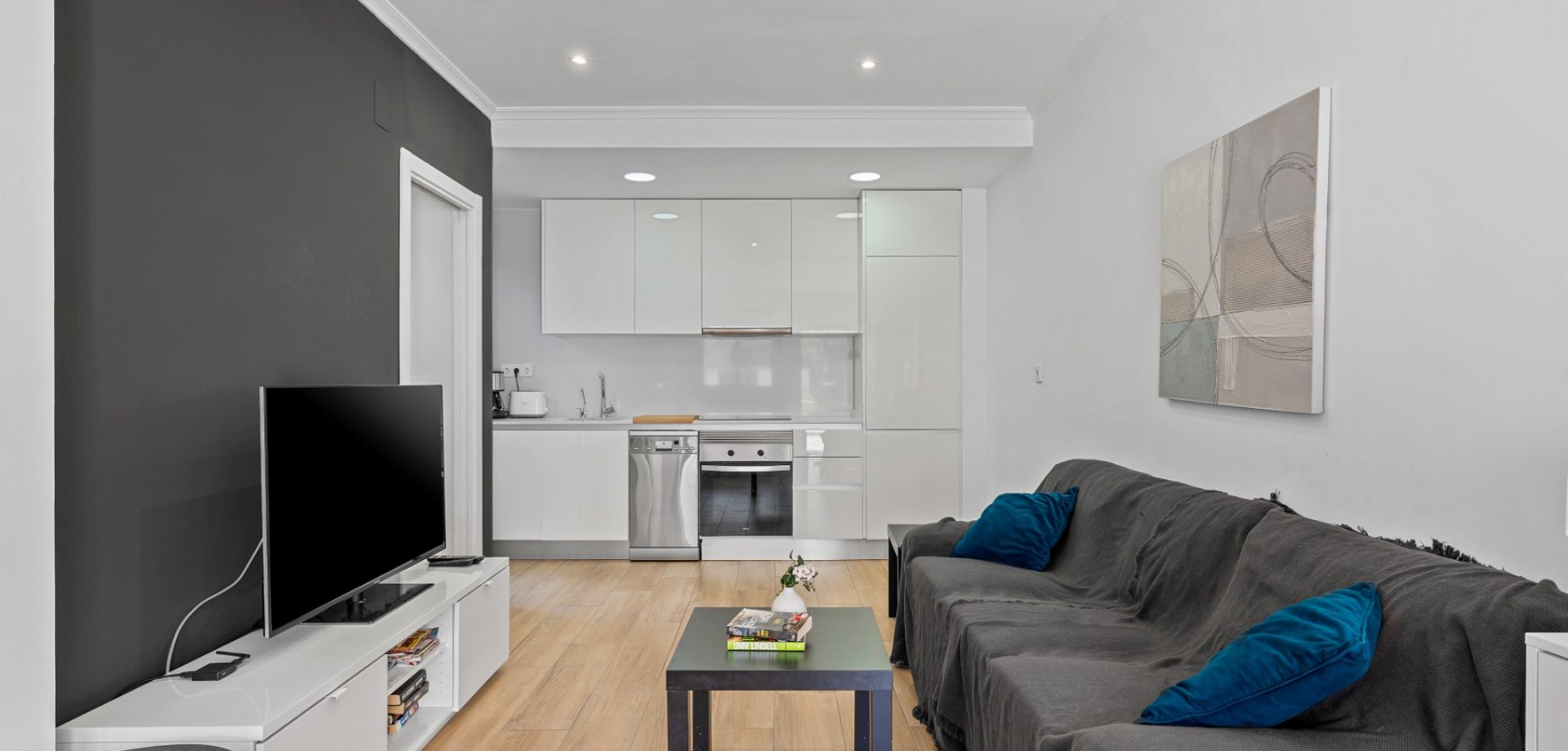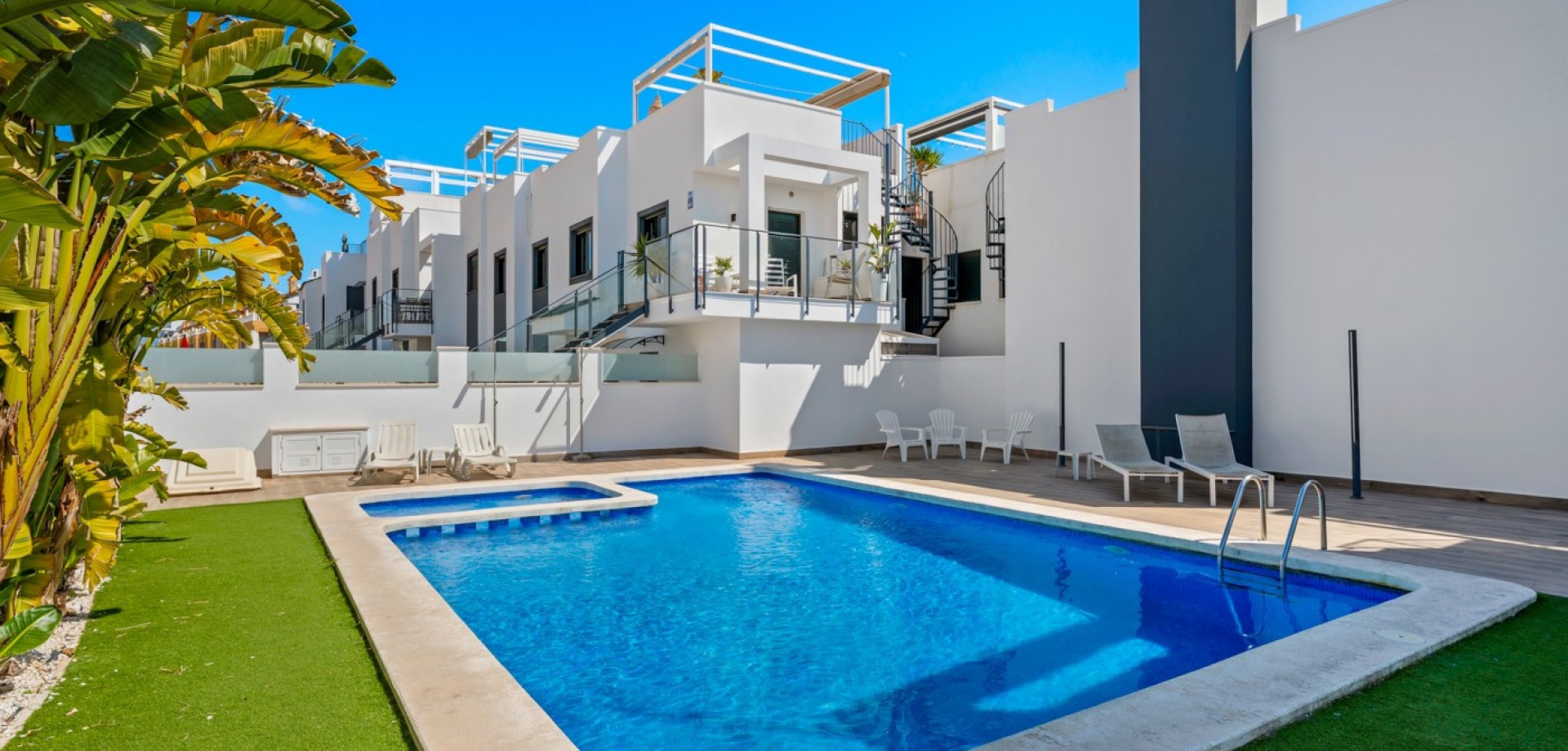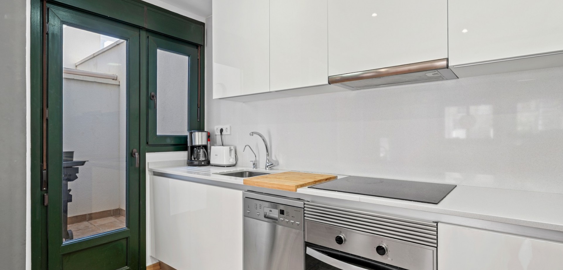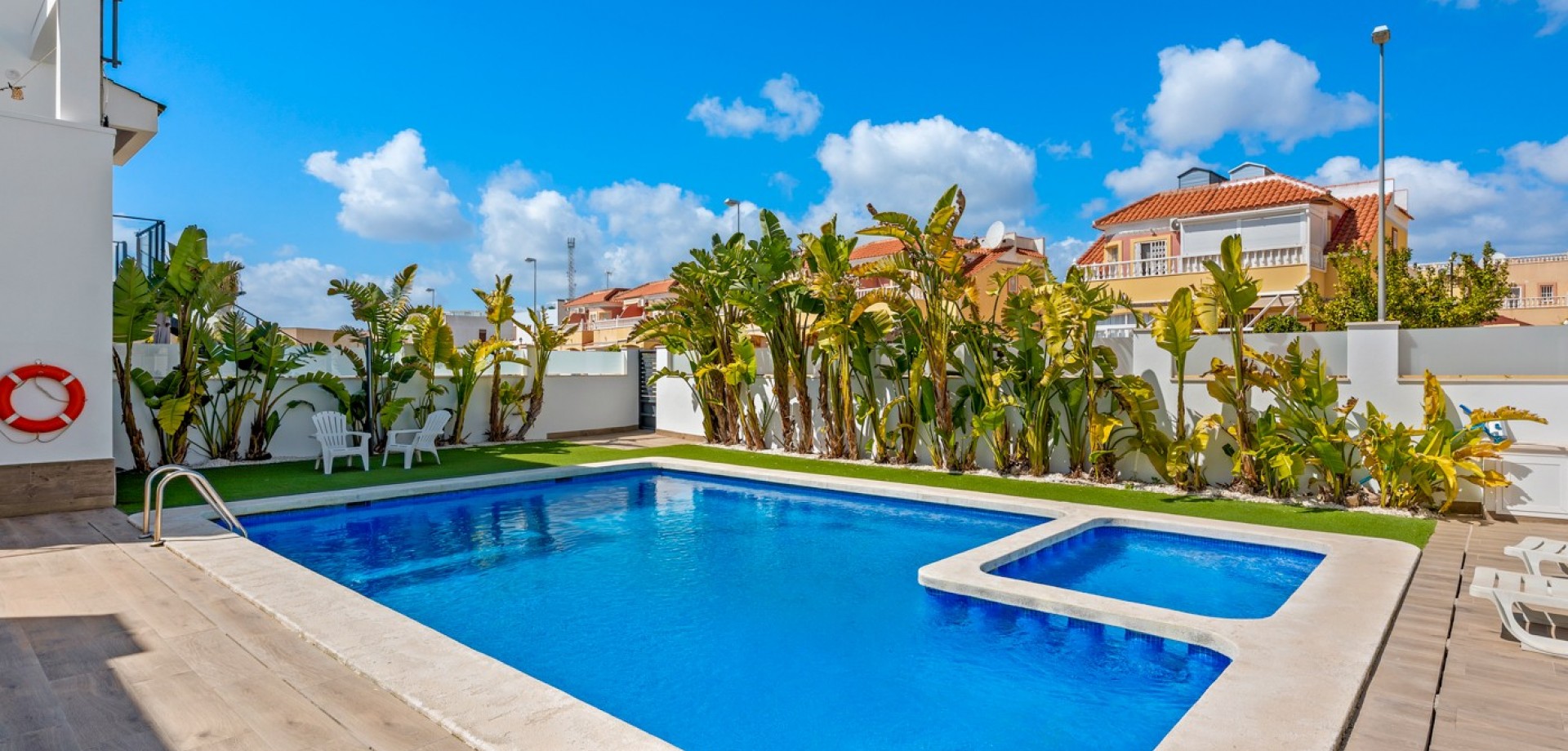 Este moderno apartamento en planta baja se encuentra en la codiciada zona de La Zenia, a pocos pasos de la playa y cerca de tiendas, restaurantes y todos los servicios. Con acceso directo desde la calle, ofrece comodidad y un estilo de vida contemporáneo y confortable en la Costa Blanca. La propiedad cuenta con 2 dormitorios y 1 baño, con un diseño luminoso y práctico, ideal tanto para vacaciones como para residencia permanente. En el corazón de la casa se encuentra un elegante salón-comedor diáfano con una moderna cocina, que crea un ambiente amplio y acogedor. Desde el salón se accede directamente a una gran terraza frontal, perfecta para comer al aire libre, relajarse o disfrutar del clima mediterráneo. Ubicado en un complejo residencial bien mantenido, los residentes disfrutan de una hermosa piscina comunitaria, ideal para disfrutar del soleado estilo de vida español. El apartamento también incluye aparcamiento subterráneo, lo que aporta mayor comodidad y seguridad. Gracias a su diseño moderno, su excelente ubicación y su amplio espacio exterior, esta propiedad es una opción ideal como casa de vacaciones, inversión para alquiler o residencia permanente en La Zenia.