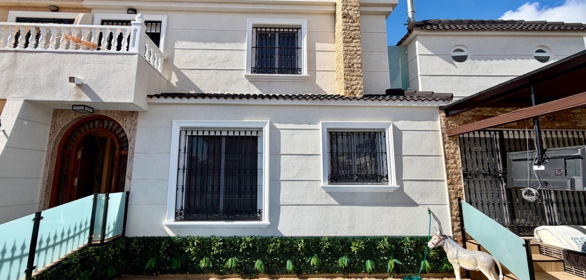 Preciosa villa pareada (semi-independiente) situada en la codiciada zona de La Zenia, a tan solo 7 minutos de la playa y a 4 minutos de La Zenia Boulevard. La propiedad disfruta de una ubicación excelente, con todos los servicios a mano: bares, restaurantes y tiendas a solo 2 minutos andando.~~La vivienda cuenta con 4 amplios dormitorios y 4 baños, diseñada para ofrecer comodidad y funcionalidad, ideal tanto como residencia habitual como para vacaciones.~~La propiedad dispone de una piscina privada climatizada y plaza de aparcamiento cubierta.~~En el interior, la casa es muy acogedora y está en excelente estado, ofreciendo:~~* Se vende totalmente amueblada~* Aire acondicionado en todas las estancias~* Sistema de calefacción por gasoil~* Amplias zonas de almacenamiento~~La vivienda se encuentra en estado impecable, muy bien cuidada y lista para entrar a vivir de inmediato.~~Una excelente combinación de confort, ubicación y estilo de vida en una de las zonas más demandadas de la Costa Blanca.