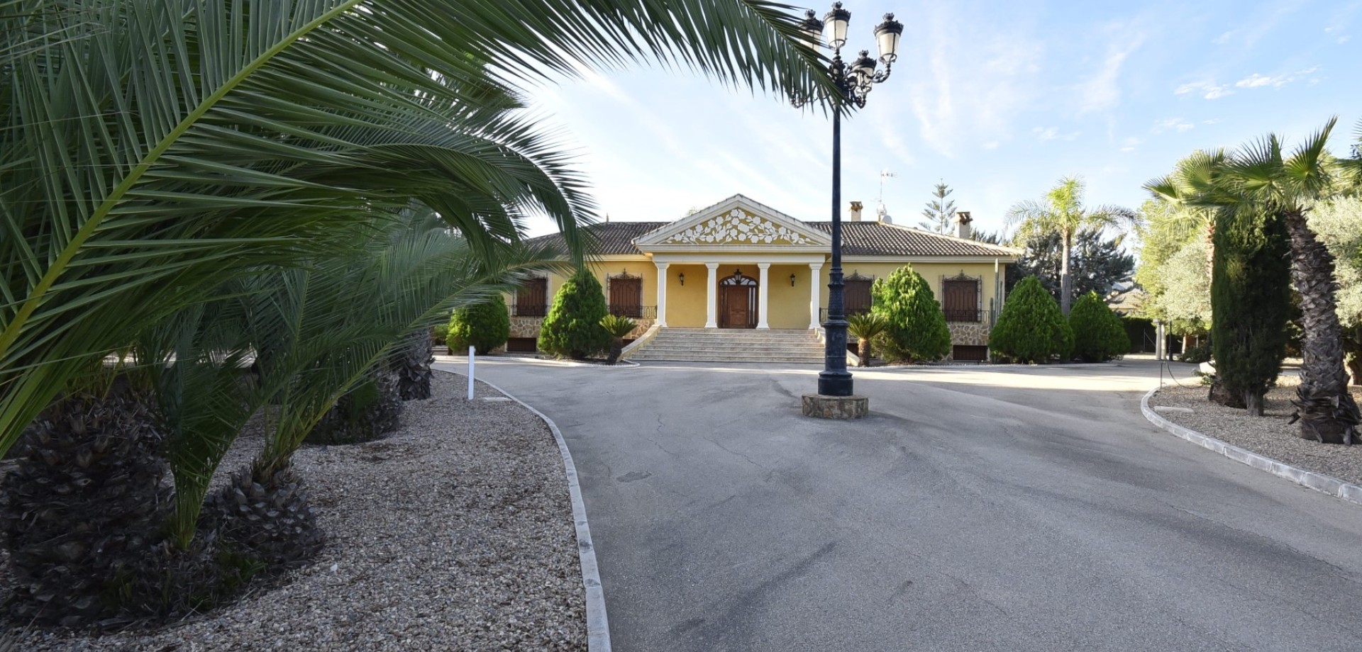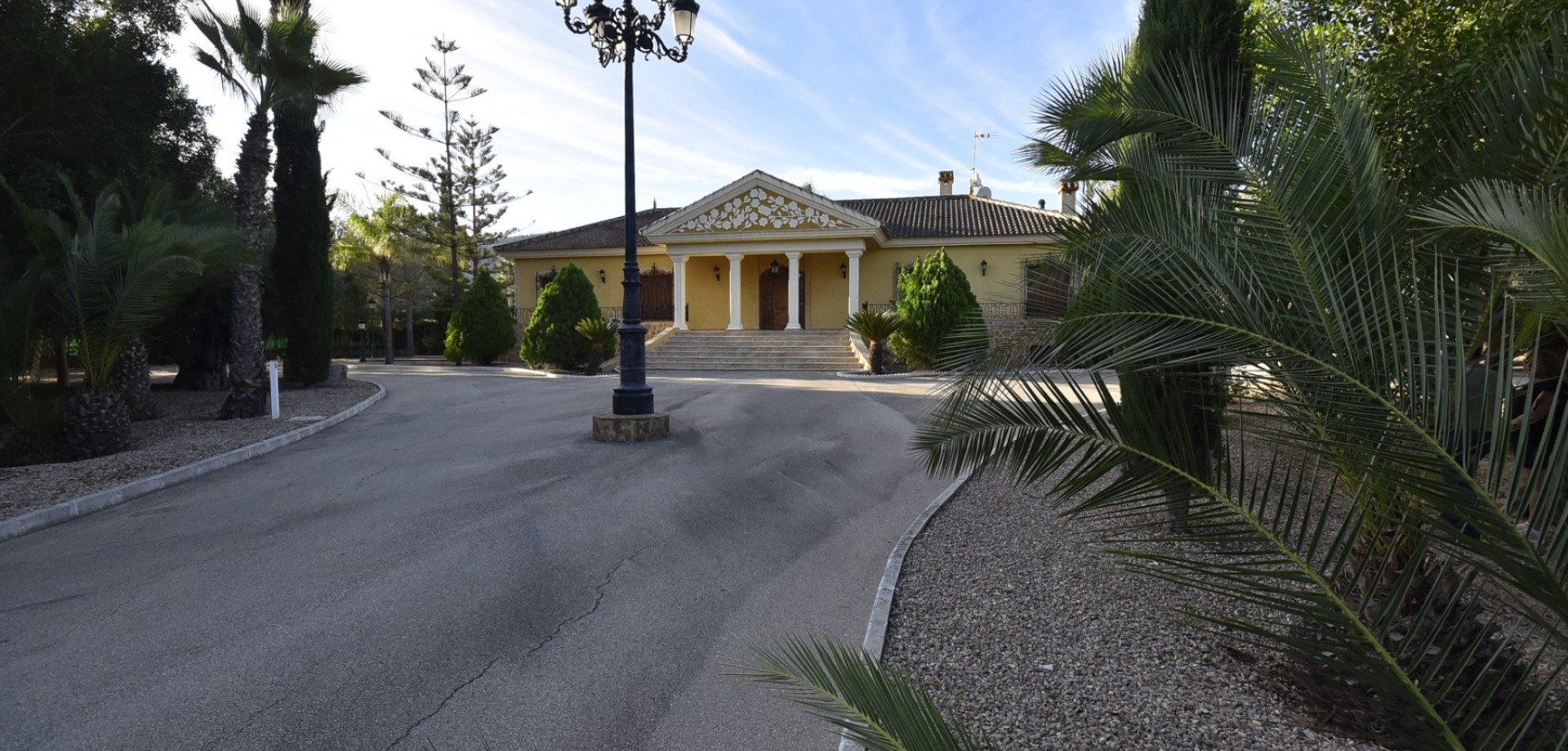 Hacienda con vistas únicas a las montañas y con una absoluta privacidad Vivienda, Compra | España, Costa Blanca, Orihuela, La Matanza Descripción del Bien Inmueble Esta espectacular mansion tiene espectaculares vistas a las sierras de Orihuela y Abanilla, en medio de un Oasis de paz, tranquilidad y relax. La Finca sobre la que se encuentra dicha mansion tiene una superficie terrestre de 13.627 m2. Toda la finca se compone de una mansión de (430 m2), una vivienda para el servicio o invitados con terraza exterior (75 m2) y un almacén (181 m2). Además la finca dispone de un jardin lleno de olivos, palmeras, piceas, cipreses, limoneros, naranjos. La planta baja de la lujosa mansión dispone de 190 m2 y tiene 3 habitaciones, 2 baños, un salón, una despensa y una cocina grande. Además cuenta la misma con un patio enorme interior en el que se encuentra una piscina cubierta con 4m x 9m (con Jacuzzi, Duchas y aseo) y dos cocinas, completamente amuebladas, una de ellas en el exterior del salon y la otra cerca de la piscina con mesa de granito y sillas del mismo tipo. En el sótano (240 m2) hay a su vez 1 habitación, 1 baño, 1 bodega y también salas donde se pueden instalar juegos, un gimnasio y oficinas asi como también 1 Garaje. Podemos garantizar que todos los amigos, familiares quedarán impresionados de su mansión. La vivienda para el servicio o para invitados dispone de 2 habitaciones, 1 cocina, 1 salon, 1 baño y en el exterior una terraza. El garaje puede ser utilizada como oficina, sala de trabajo o como sala de manualidades Esta finca esta diseñada de forma particular y pensada para aquellos clientes que quieren vivir lejos de cualquier tumulto o ruido, pero a su vez cerca de ciudades, aeropuerto, campo de golf y del mar. Detalles de la situacion de la finca en el mapa: La Hacienda se encuentra en La Matanza. El pueblo tiene aproximadamente 1.100 habitantes y pertenece administrativamente a la ciudad cultural de Orihuela. Distancia a la ciudad Orihuela aprox. 91.000 habitantes =10 Kilometros Distancia a la ciudad de Murcia aprox. 438.000 habitantes =29 Kilometros Distancia a la ciudad de Alicante aprox. 335.000 habitantes =57 Kilometros Distancia al aeropuerto de Alicante =50 Kilometros Distancia a la entrada de la autovia Murcia- Alicante = 3 Kilometros Distancia al Mar =40 Kilometros Distancia a los campos de Golf =24 Kilometros