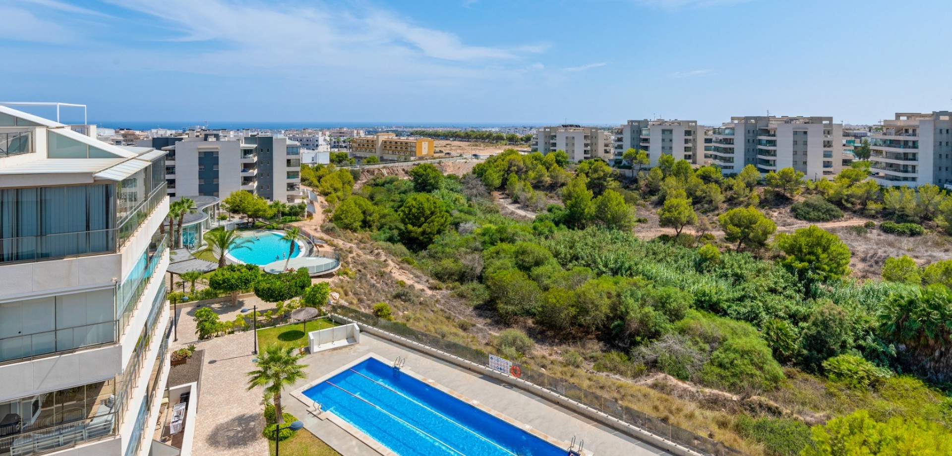 Estamos orgullosos de presentar este apartamento en el exitoso "Green Hills", ubicado justo encima de La Zenia. Aquí tenemos quizás el apartamento más hermoso del complejo, un ático con orientación suroeste con 3 dormitorios, 2 estilosos baños con calefacción por suelo radiante, una gran terraza acristalada fuera de la sala de estar, así como una azotea privada con pérgola y ducha: aquí puede disfrutar de una vista panorámica de la vegetación y el Mediterráneo. El apartamento se vende con muebles de alta gama, electrodomésticos, aire acondicionado, persianas eléctricas en la terraza acristalada, etc. Hay estacionamiento privado y un trastero en el garaje subterráneo. Green Hills es un complejo extremadamente popular y se destaca entre la multitud, con varias piscinas al aire libre, hermosas áreas verdes, un gimnasio cubierto con vestuarios y una piscina climatizada cubierta. La ubicación céntrica y agradable está a tiro de piedra de los restaurantes y el supermercado más cercanos, a unos 20 minutos a pie del gran centro comercial "Zenia Boulevard" y a un corto paseo en bicicleta de las playas. ¡Contáctanos para visitar este apartamento tan especial!