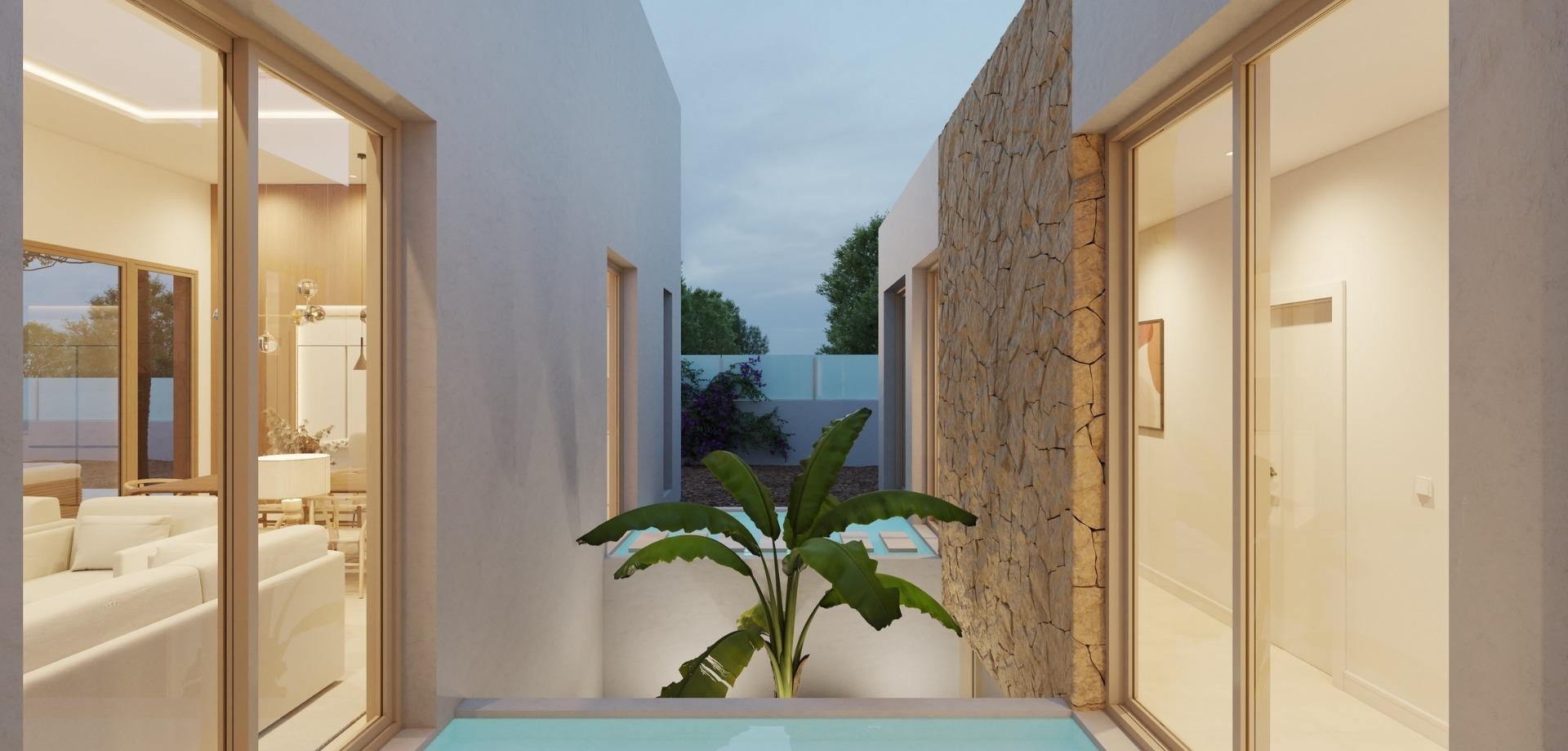Exclusieve nieuwbouw villa's in Algorfa vlakbij het La Finca Golf Resort Rustig wonen op een toplocatie Ontdek deze luxe nieuwbouwvilla's in het pittoreske stadje Algorfa, genesteld op uitgestrekte rustieke percelen van meer dan 10.000 m². Gelegen op slechts 2 km van La Finca Golf Resort en vlakbij Almoradí Tennis Club, zijn deze woningen ontworpen voor diegenen die waarde hechten aan privacy, elegantie en de nabijheid van recreatieve voorzieningen van topniveau. Algorfa ligt in het hart van de zuidelijke Costa Blanca en biedt een serene omgeving midden in de natuur, met gemakkelijke toegang tot het gouden zand van Guardamar Beach, op slechts een klein eindje rijden. Deze idyllische locatie zorgt voor een levensstijl die ontspanning en gemak in evenwicht brengt. Ruime 4-slaapkamervilla's met aanpassingsopties Deze elegante villa's hebben vier ruime slaapkamers, met de optie om tegen een meerprijs een vijfde slaapkamer, solarium of ondergrondse verdieping toe te voegen. Ontworpen met een open lay-out, de woningen beschikken over: Een moderne keuken naadloos geïntegreerd met het woongedeelte. Grote ramen en glazen schuifdeuren voor overvloedig natuurlijk licht en ventilatie. Directe toegang tot een privéterras en zwembad, perfect om te genieten van zonnige mediterrane dagen. Privéparkeergelegenheid op het perceel voor extra gemak. Hoogwaardige voorzieningen voor modern comfort Elke villa is uitgerust met hoogwaardige afwerkingen en ultramoderne voorzieningen om maximaal comfort en duurzaamheid te garanderen: Overal LED-verlichting. Gemotoriseerde elektrische rolluiken voor gebruiksgemak. Automatische toegangspoort voor meer veiligheid. Ariston aerothermische boiler voor energie-efficiëntie. Vloerverwarming in badkamers voor extra luxe. Privézwembad voor ontspanning en vermaak. Zonnepanelensysteem voor milieuvriendelijk wonen. Compleet airconditioningsysteem. Video-intercom voor gemak en veiligheid. Nabijheid van belangrijke bezienswaardigheden Deze villa's zijn ideaal gelegen om toegang te bieden tot essentiële voorzieningen en attracties: La Finca Golf Resort: 2 km. Strand van Guardamar: 12 km (ongeveer 15 minuten met de auto). Luchthaven Alicante: 40 km (35 minuten met de auto). Luchthaven Murcia: 55 km (45 minuten met de auto). Winkelcentra: Zenia Boulevard, op slechts 25 minuten rijden. Belangrijke wegen: De snelweg AP-7 zorgt voor snelle toegang tot nabijgelegen steden zoals Orihuela, Elche, Murcia en Alicante. Uw mediterrane retraite wacht Omarm de kans om een luxe villa te bezitten in Algorfa, een combinatie van modern design, traditionele charme en een ontspannen mediterrane levensstijl. Neem vandaag nog contact met ons op om een bezichtiging te plannen en je droom te verwezenlijken!