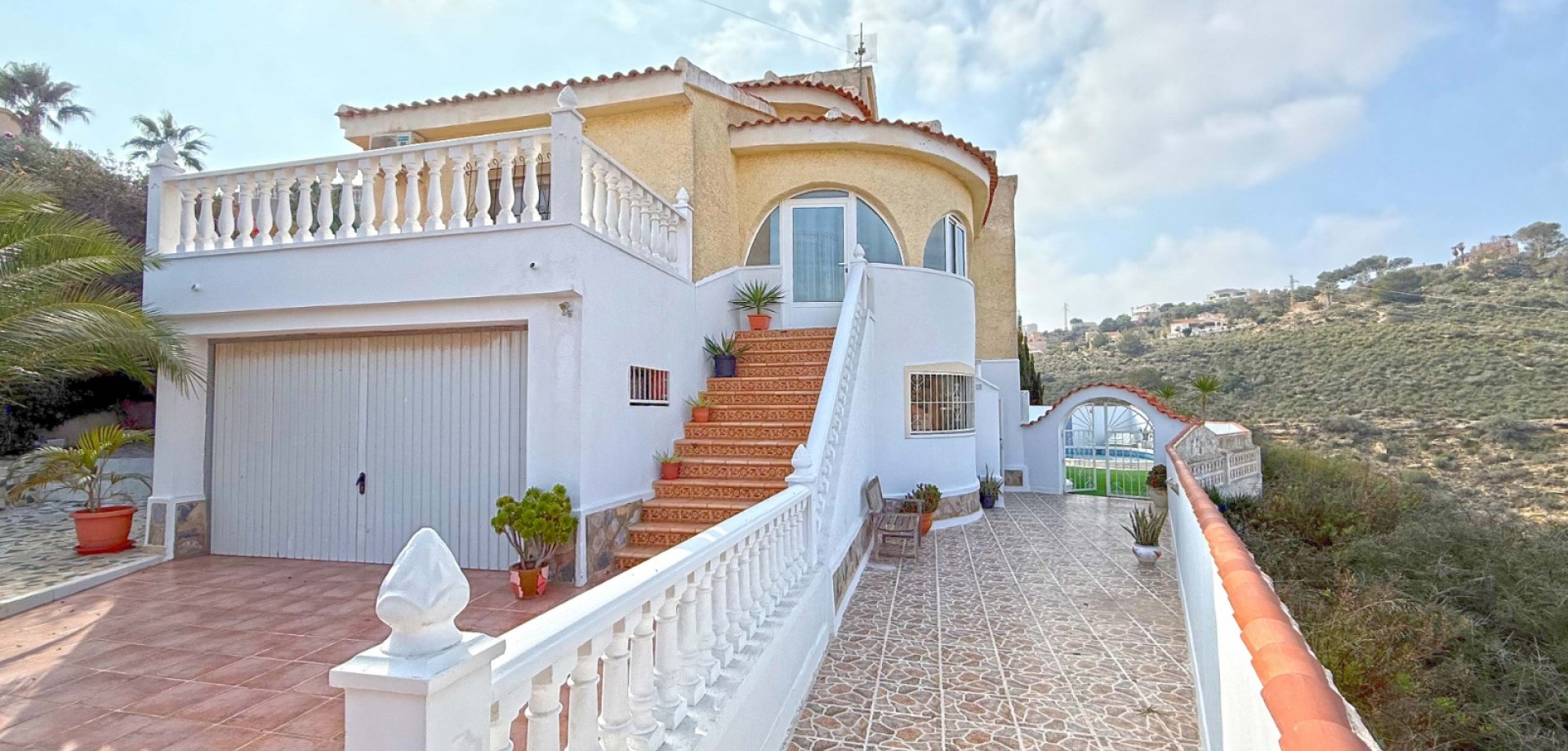 Buiten vindt u uw eigen privéparadijs met een privézwembad en meerdere terrassen, perfect om te ontspannen en te genieten van de mediterrane zon. Of u nu geniet van uw ochtendkoffie of vrienden ontvangt in de avond, het panoramische uitzicht op de golfbaan biedt een prachtig decor.