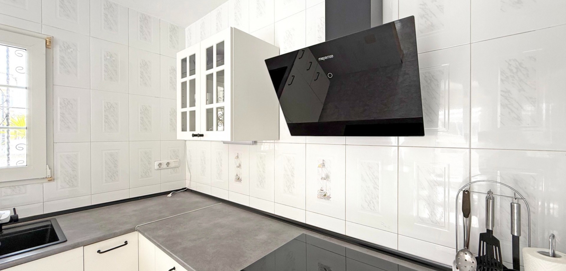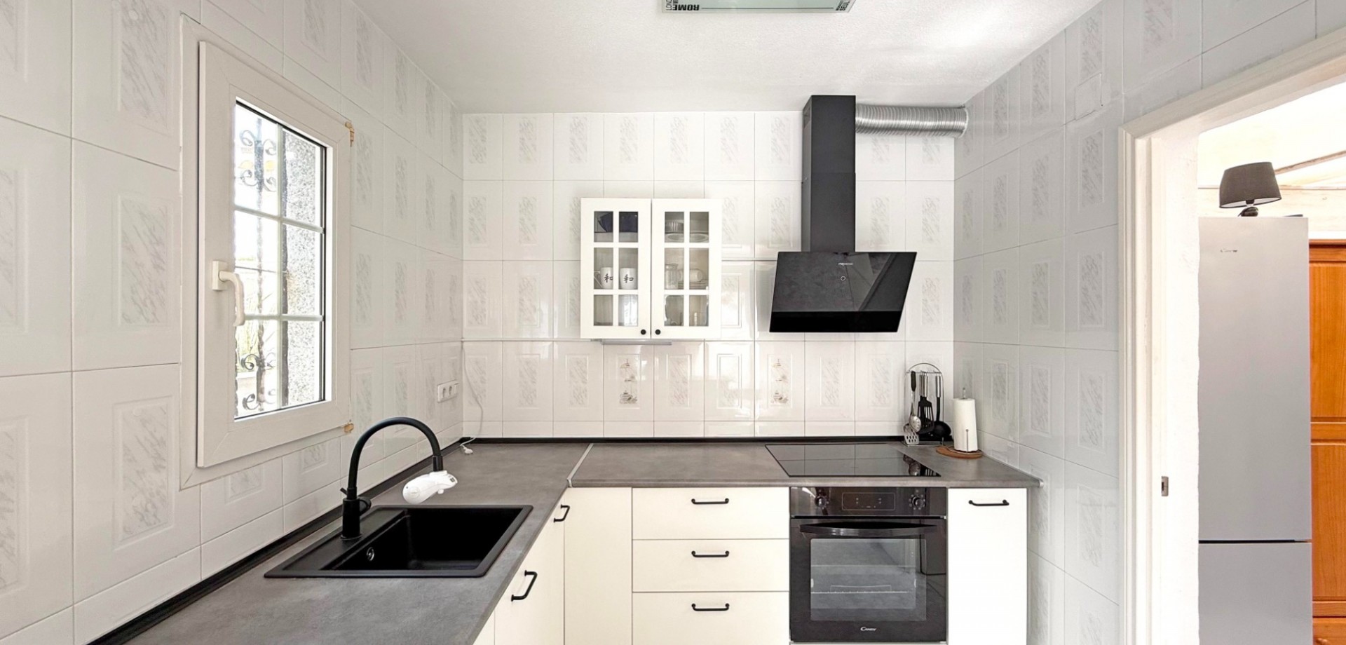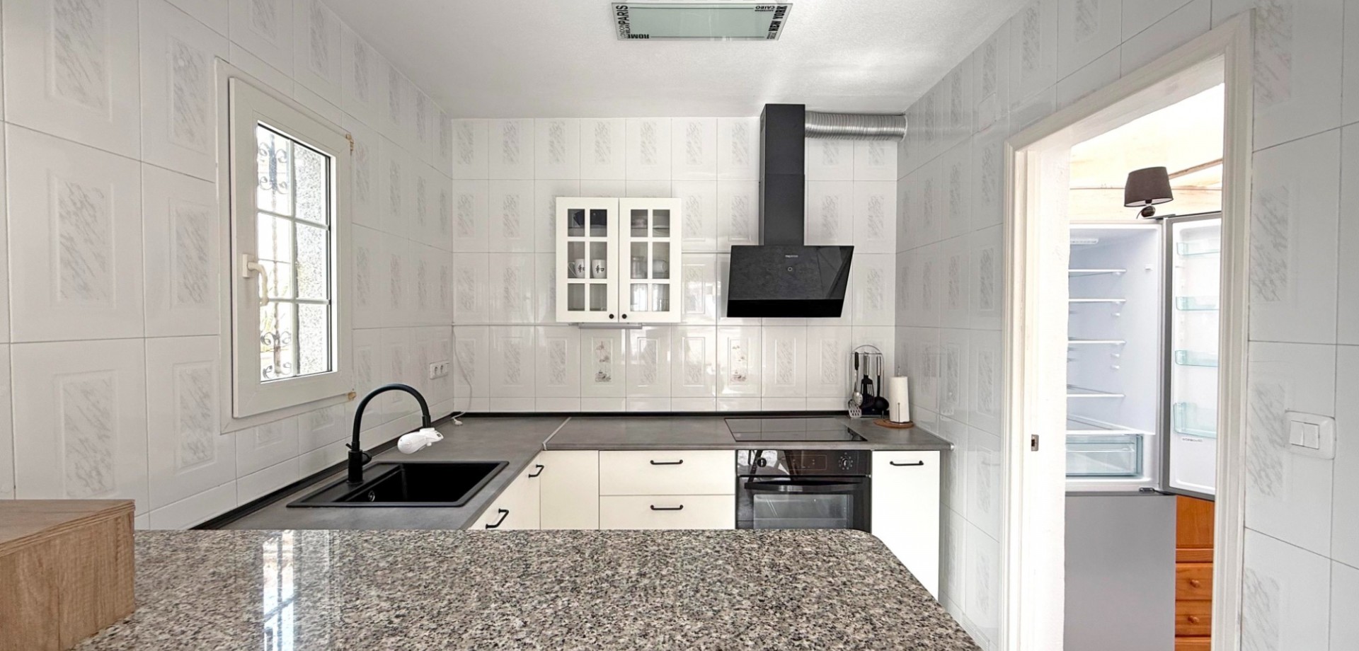 Bij de entree vind je een ruime voorterras – perfect voor barbecues, gezelligheid met vrienden of ontspannen in de zon. Je kunt de auto parkeren binnen de poort. Binnenin biedt de woning een open indeling tussen de keuken en woonkamer – ideaal voor knusse avonden of diners met familie en vrienden. Vanuit de keuken bereik je een praktische binnenplaats met opbergruimte en wasmachine.