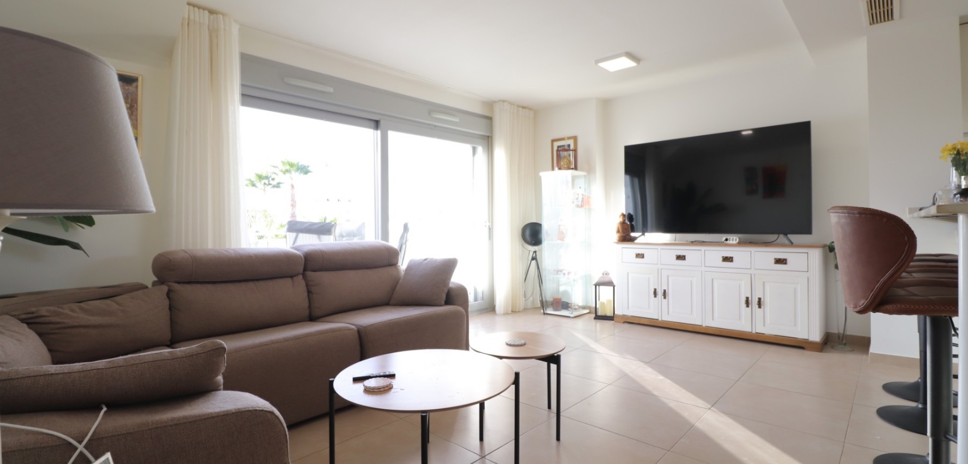 Penthouse. Modern appartement op de bovenste verdieping met solarium en jacuzzi in Vistabella Golf Locatie: Vistabella Golf, Costa Blanca Zuid Dit appartement met twee slaapkamers op de bovenste verdieping, gelegen op het westen, in de populaire urbanisatie Vistabella Golf , biedt comfort, ruimte en een toplocatie. Op slechts 5 minuten wandelen van bars, restaurants en een supermarkt, is deze woning ideaal gelegen voor dagelijks gemak. Met de auto bent u in slechts 5 minuten in Los Montesinos, in 10 minuten in Quesada en Benijófar, en in ongeveer 20 minuten bij de prachtige stranden van de Costa Blanca. Het appartement is gebouwd in 2019 en beschikt over een lichte en ruime woonkamer met grote schuifdeuren die uitkomen op een ruim terras met uitzicht op de perfect onderhouden gemeenschappelijke tuinen. De volledig uitgeruste open keuken is voorzien van een grote ontbijtbar, perfect voor informele maaltijden of het ontvangen van gasten. Er zijn twee tweepersoonsslaapkamers, beiden met inbouwkasten. De hoofdslaapkamer heeft een eigen badkamer en suite, en er is ook een tweede moderne familiebadkamer met douche. Vanaf het terras leidt een buitentrap naar uw privésolarium, waar u een jacuzzi vindt (inbegrepen in de verkoop) en een schaduwrijke plek met zonwering. Dit creëert een ideale omgeving om buiten te eten en te ontspannen terwijl u geniet van een panoramisch uitzicht en zonsondergangen. Extra functies zijn onder meer: Gekanaliseerde airconditioning Vier zonnepanelen Gedeeltelijk gemeubileerd Gemeenschappelijk zwembad Toegewezen parkeerplaats Deze goed onderhouden woning biedt een uitgebalanceerde levensstijl van comfort, ontspanning en toegankelijkheid - ideaal als vakantiehuis, verhuurinvestering of permanente woning onder de Spaanse zon. Contact Geïnteresseerd in een bezichtiging of meer informatie€ Neem contact op met ons – we helpen je graag bij het vinden van jouw plekje in de zon! ☀️