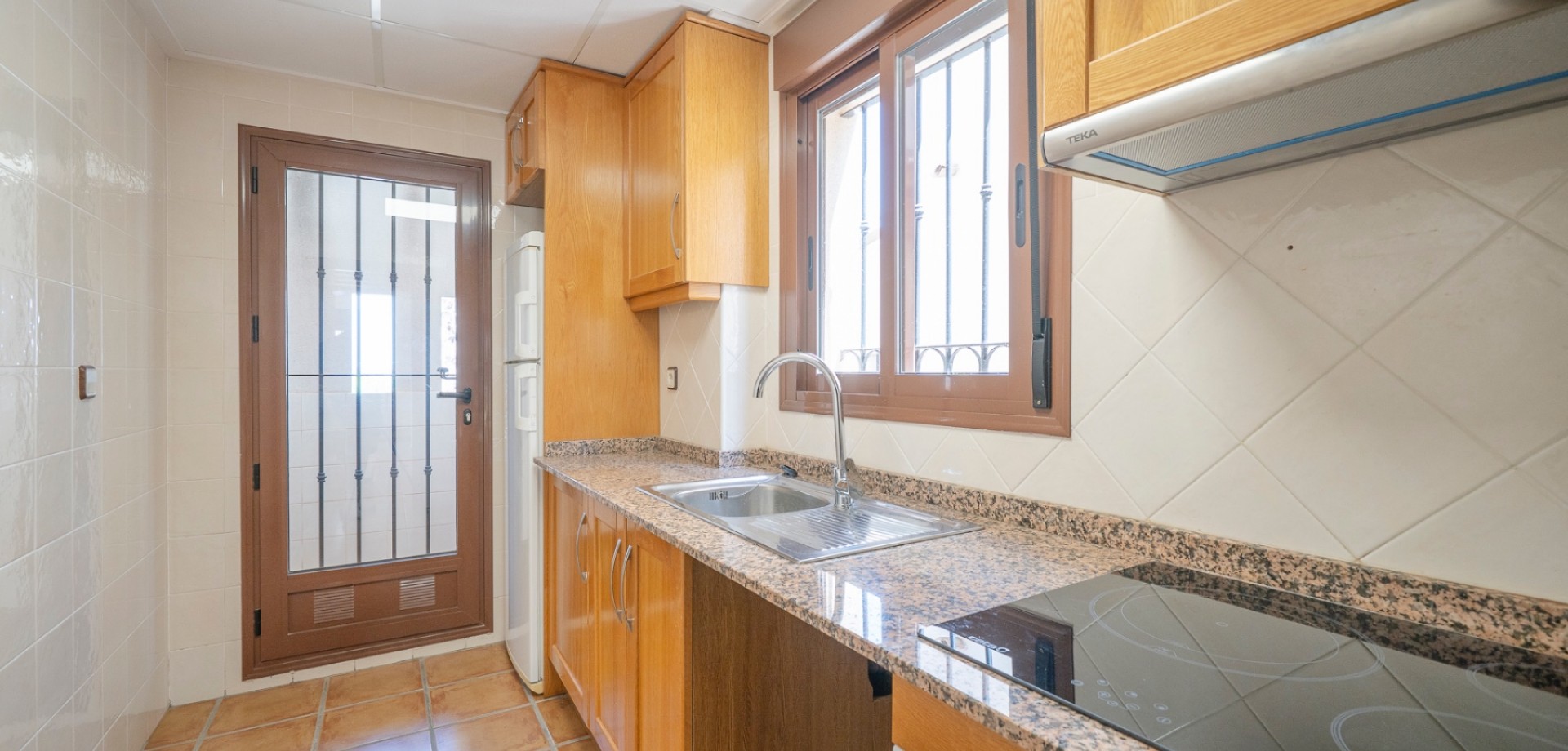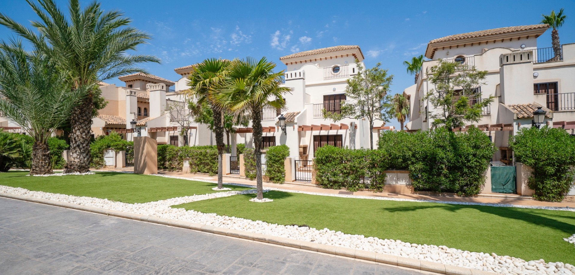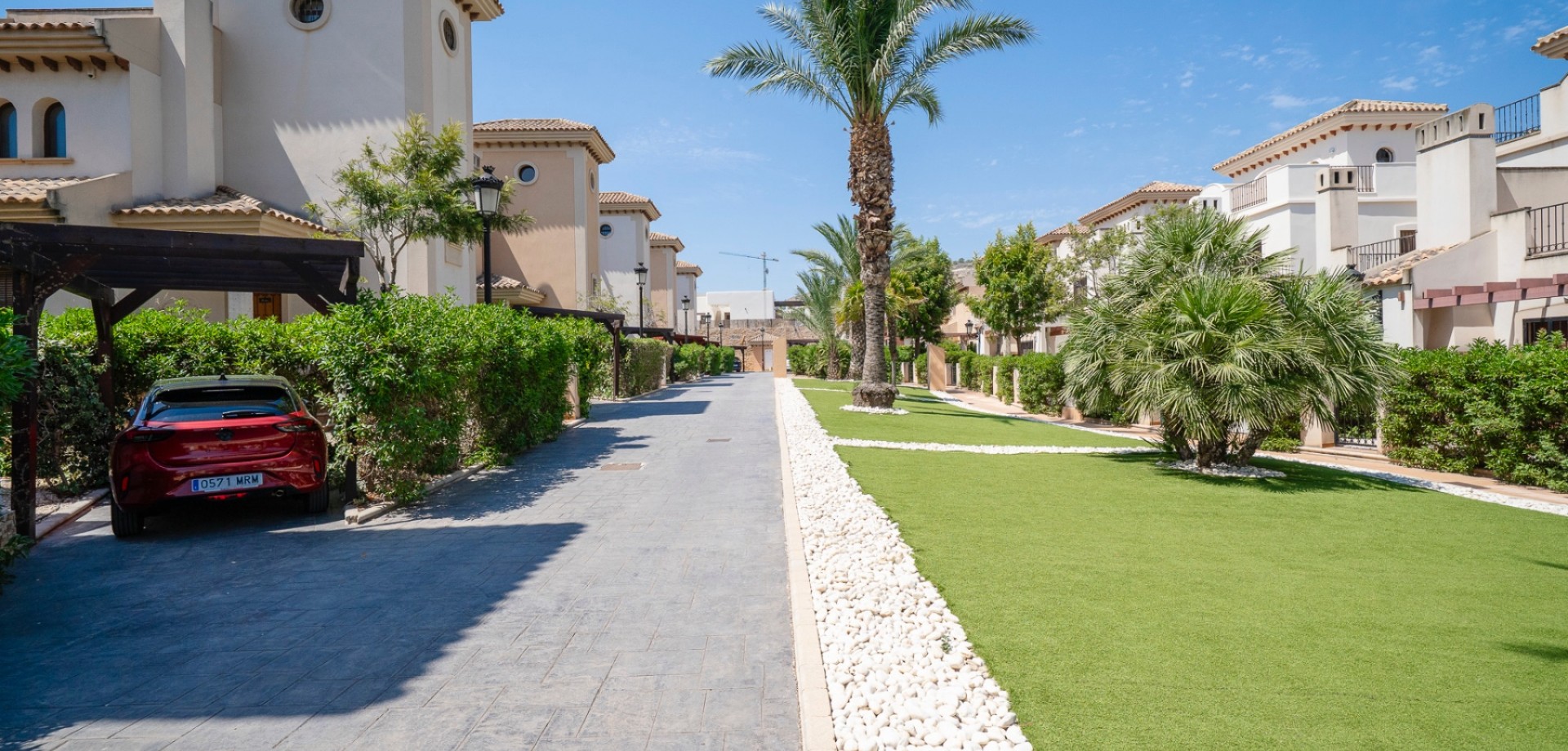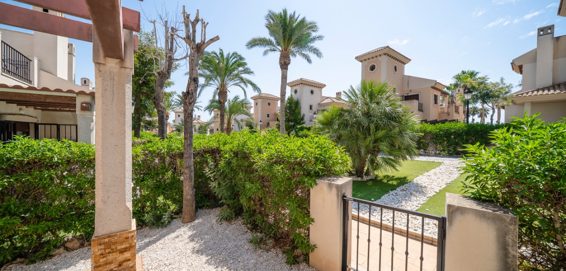 Charmante halfvrijstaande bungalow in het exclusieve wooncomplex Paradise Golf, instapklaar. Aan de voorkant beschikt de woning over een tuin met parkeermogelijkheid en aan de achterkant een overdekte porch met barbecue, die directe toegang biedt tot de woonkamer. Op de begane grond vindt u een woonkamer met open haard, een slaapkamer met inbouwkast, een badkamer met douche en een aparte keuken met bijkeuken. De eerste verdieping omvat een complete badkamer en twee slaapkamers met inbouwkasten – één met balkon en de andere met een prachtig privéterras. Op de bovenste verdieping bevindt zich een solarium dakterras met vrij uitzicht, ideaal om te ontspannen en van de zon te genieten. Het wooncomplex beschikt over een gemeenschappelijk zwembad. De bungalow is recent geschilderd en verkeert in uitstekende staat. Wordt verkocht zonder meubels.
