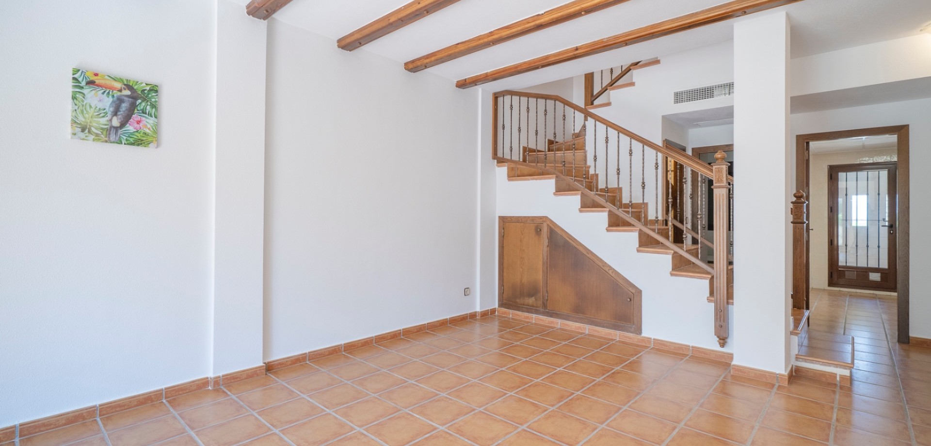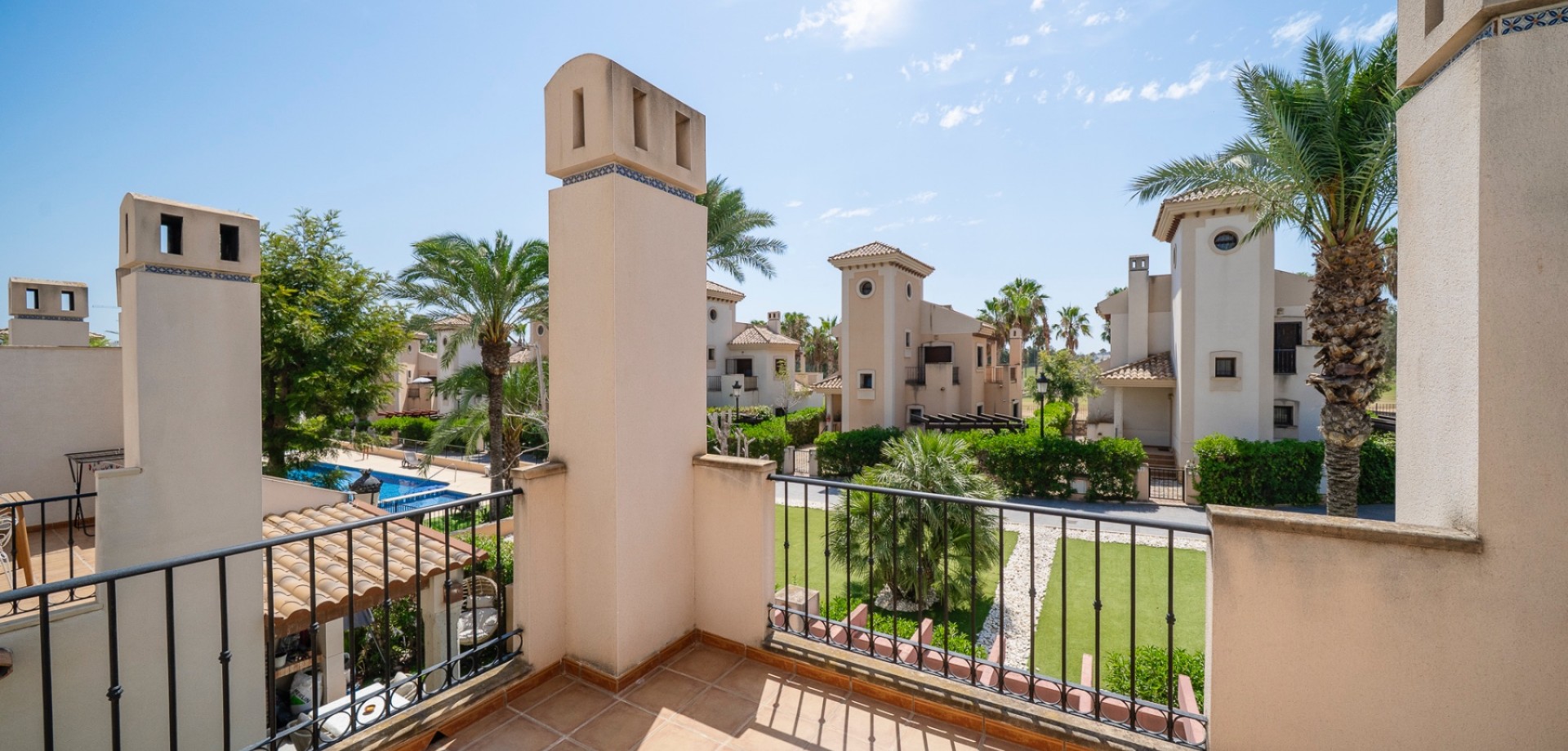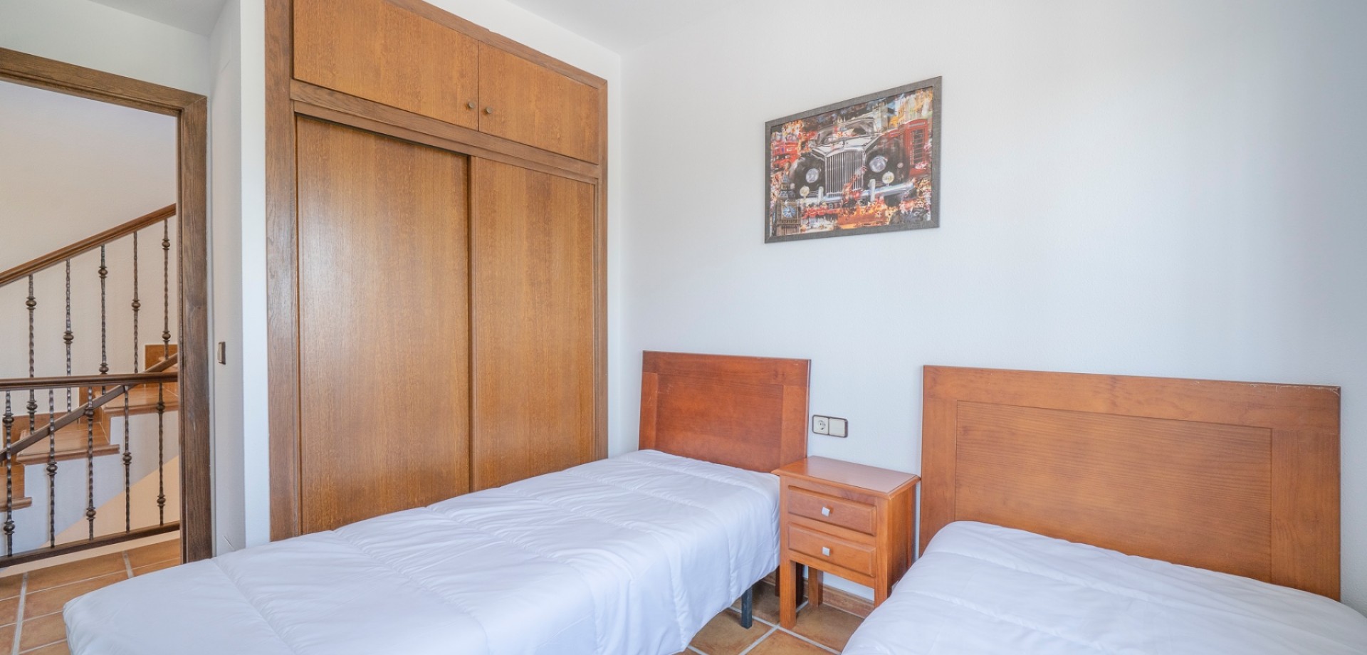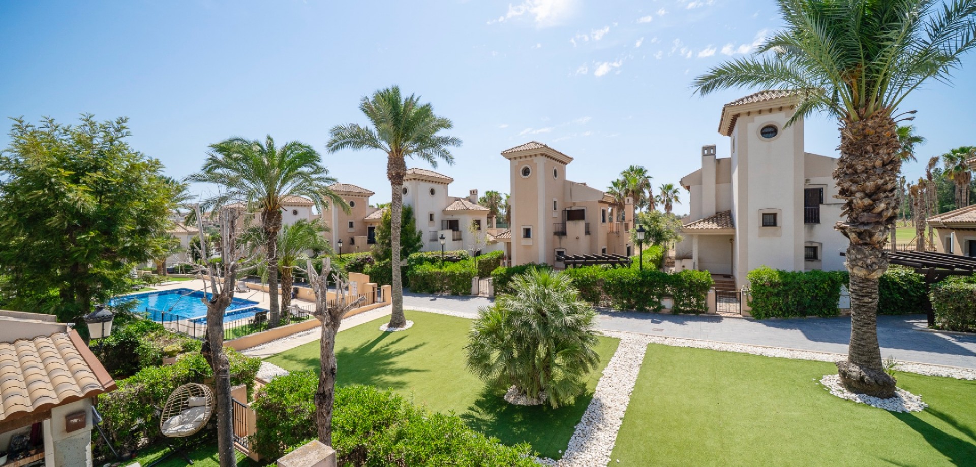 Charmante halfvrijstaande bungalow in het exclusieve wooncomplex Paradise Golf, instapklaar. Aan de voorkant beschikt de woning over een tuin met parkeermogelijkheid en aan de achterkant een overdekte porch met barbecue, die directe toegang biedt tot de woonkamer. Op de begane grond vindt u een woonkamer met open haard, een slaapkamer met inbouwkast, een badkamer met douche en een aparte keuken met bijkeuken. De eerste verdieping omvat een complete badkamer en twee slaapkamers met inbouwkasten – één met balkon en de andere met een prachtig privéterras. Op de bovenste verdieping bevindt zich een solarium dakterras met vrij uitzicht, ideaal om te ontspannen en van de zon te genieten. Het wooncomplex beschikt over een gemeenschappelijk zwembad. De bungalow is recent geschilderd en verkeert in uitstekende staat. Wordt verkocht zonder meubels.
