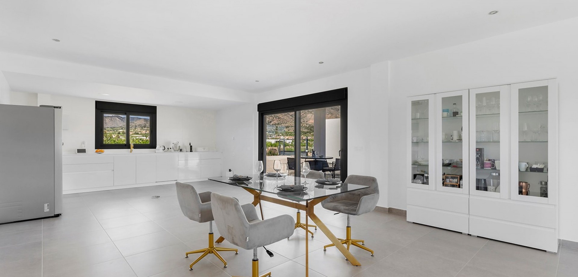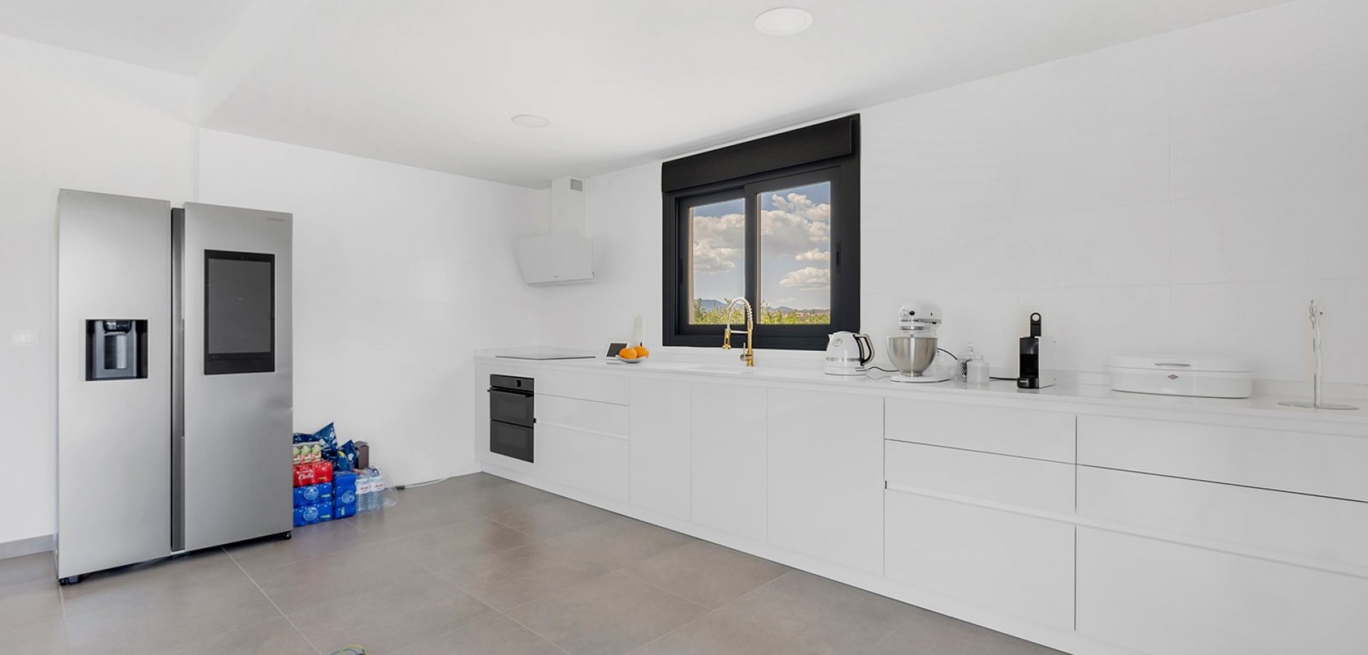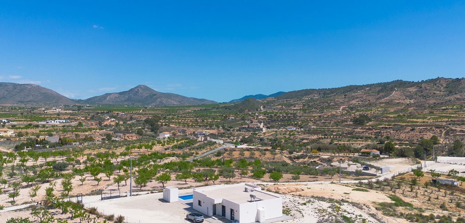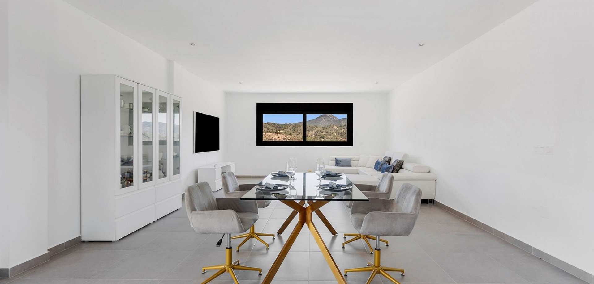 Droom je van rust, ruimte en luxe onder de zon? Deze prachtige nieuwbouwvilla in het charmante Macisvenda (Murcia) biedt het allemaal. Gelegen op een royaal perceel van 10.536 m², geniet je hier van ultieme privacy, schitterende vergezichten en de vrijheid om het buitenleven volledig naar jouw hand te zetten. De moderne architectuur, gecombineerd met hoogwaardige afwerking, zorgt voor een comfortabele en stijlvolle leefomgeving. Indeling van de woning: 3 ruime slaapkamers, elk met veel natuurlijk licht en mooi uitzicht 2 moderne badkamers met luxueuze afwerking en massage bad of inloopdouche. Er is nog een extra douche en toilet in het bijgebouw vlakbij het zwembad. Open woon-/eetkamer met directe toegang tot het terras en zwembad Strakke, volledig uitgeruste keuken Stap naar buiten en laat je verrassen door het schitterende privézwembad van 32 m², perfect gepositioneerd om te genieten van de zon en het uitzicht op de omliggende natuur. Of je nu op zoek bent naar een permanente woning, een luxe vakantieverblijf of een waardevolle investering – deze villa biedt alle ingrediënten voor comfortabel wonen in een idyllische omgeving. Belangrijkste kenmerken: Nieuwbouw – instapklaar Alles op één woonniveau, geen trappen. Groot perceel met veel mogelijkheden Volledige privacy Zwembad, terras en moderne afwerking Slechts enkele minuten van voorzieningen en op ca. 50 min van de kust Vraag vandaag nog een bezichtiging aan en laat je verrassen door deze unieke plek.