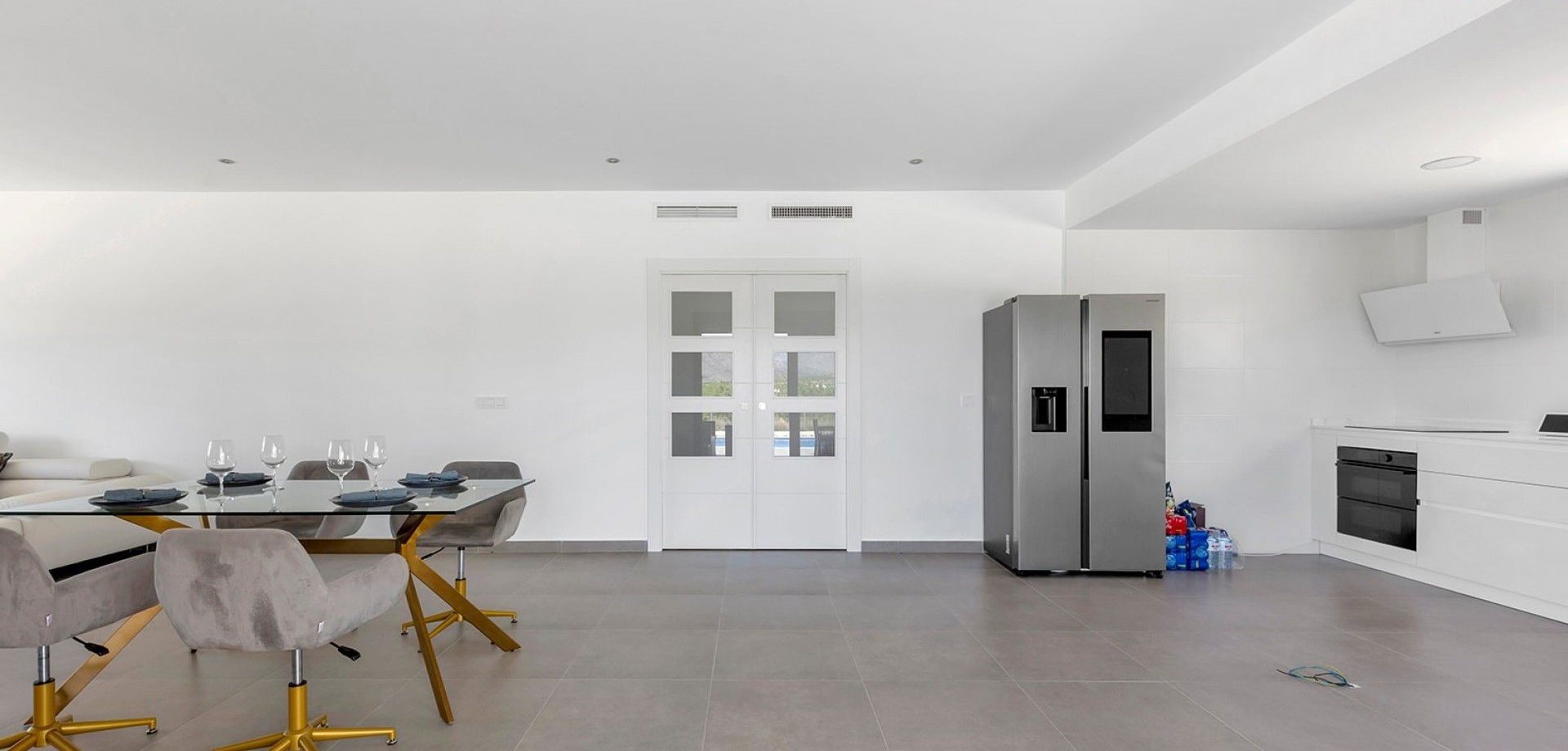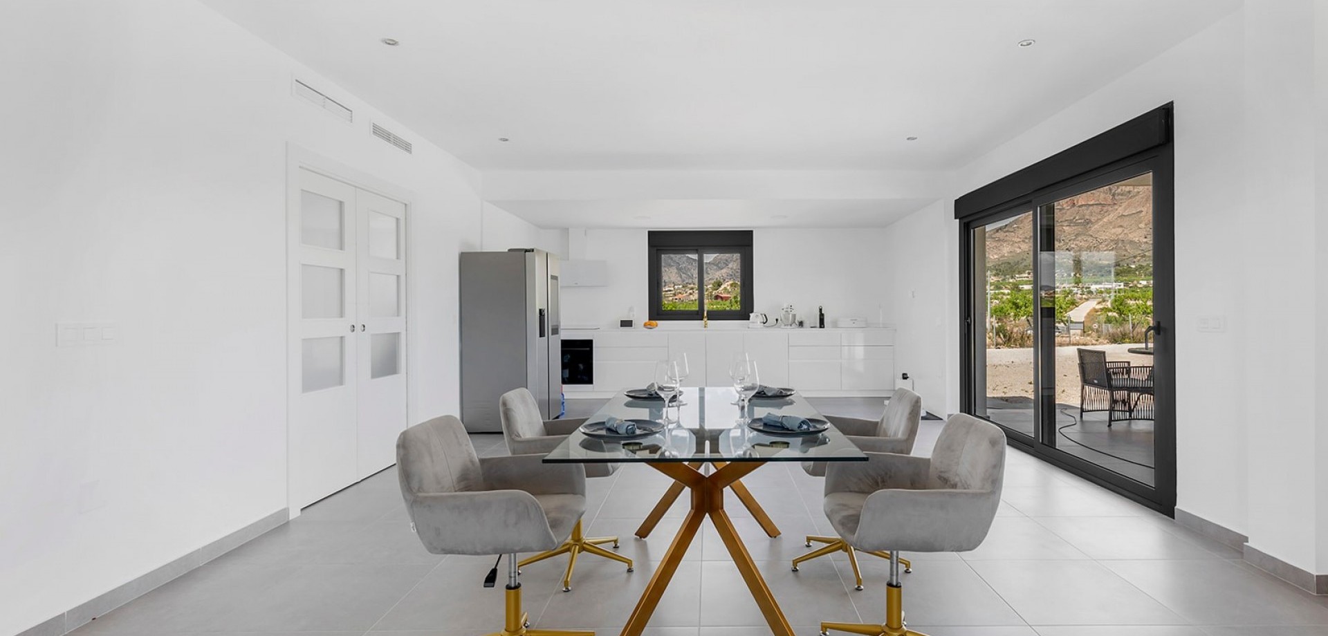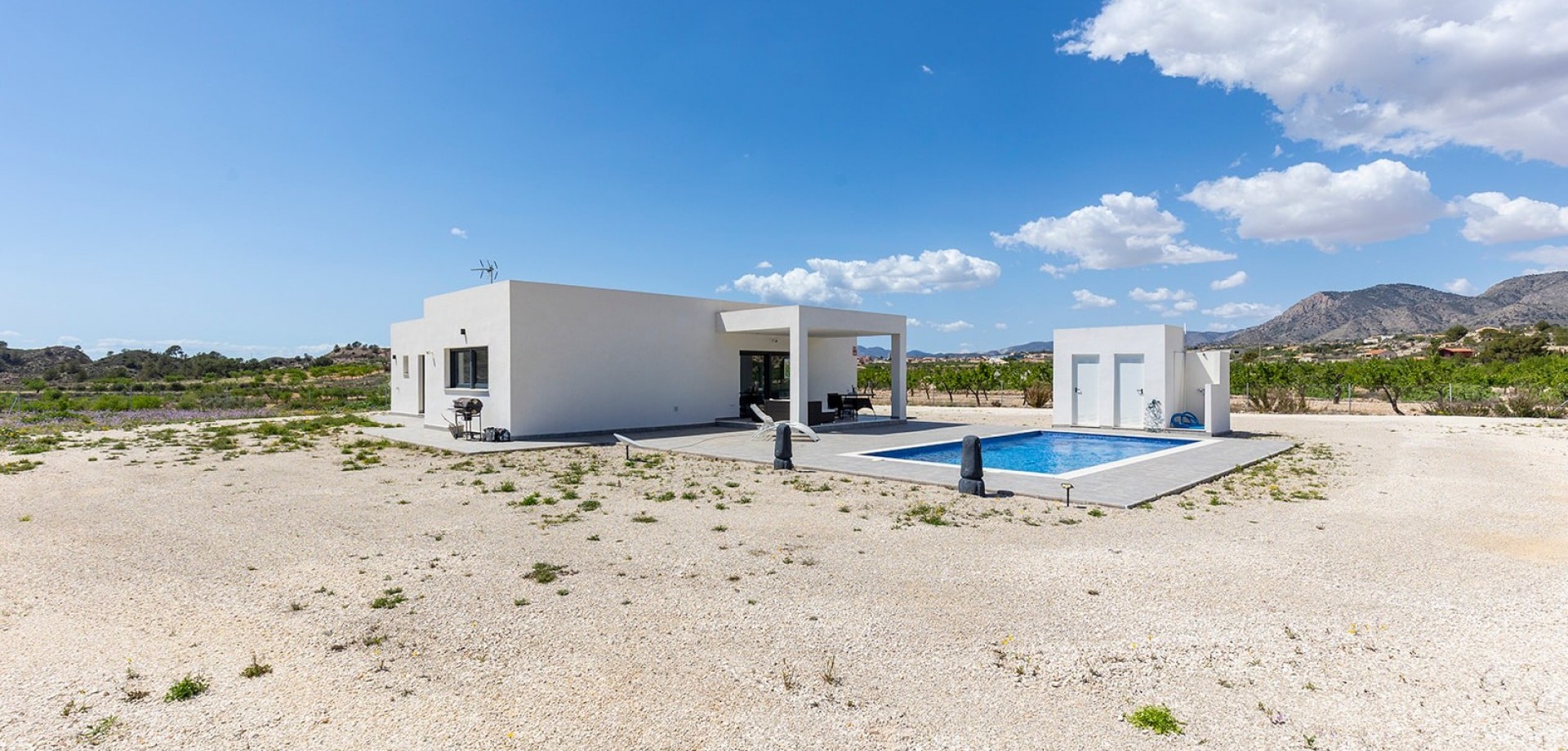 Droom je van rust, ruimte en luxe onder de zon? Deze prachtige nieuwbouwvilla in het charmante Macisvenda (Murcia) biedt het allemaal. Gelegen op een royaal perceel van 10.536 m², geniet je hier van ultieme privacy, schitterende vergezichten en de vrijheid om het buitenleven volledig naar jouw hand te zetten. De moderne architectuur, gecombineerd met hoogwaardige afwerking, zorgt voor een comfortabele en stijlvolle leefomgeving. Indeling van de woning: 3 ruime slaapkamers, elk met veel natuurlijk licht en mooi uitzicht 2 moderne badkamers met luxueuze afwerking en massage bad of inloopdouche. Er is nog een extra douche en toilet in het bijgebouw vlakbij het zwembad. Open woon-/eetkamer met directe toegang tot het terras en zwembad Strakke, volledig uitgeruste keuken Stap naar buiten en laat je verrassen door het schitterende privézwembad van 32 m², perfect gepositioneerd om te genieten van de zon en het uitzicht op de omliggende natuur. Of je nu op zoek bent naar een permanente woning, een luxe vakantieverblijf of een waardevolle investering – deze villa biedt alle ingrediënten voor comfortabel wonen in een idyllische omgeving. Belangrijkste kenmerken: Nieuwbouw – instapklaar Alles op één woonniveau, geen trappen. Groot perceel met veel mogelijkheden Volledige privacy Zwembad, terras en moderne afwerking Slechts enkele minuten van voorzieningen en op ca. 50 min van de kust Vraag vandaag nog een bezichtiging aan en laat je verrassen door deze unieke plek.