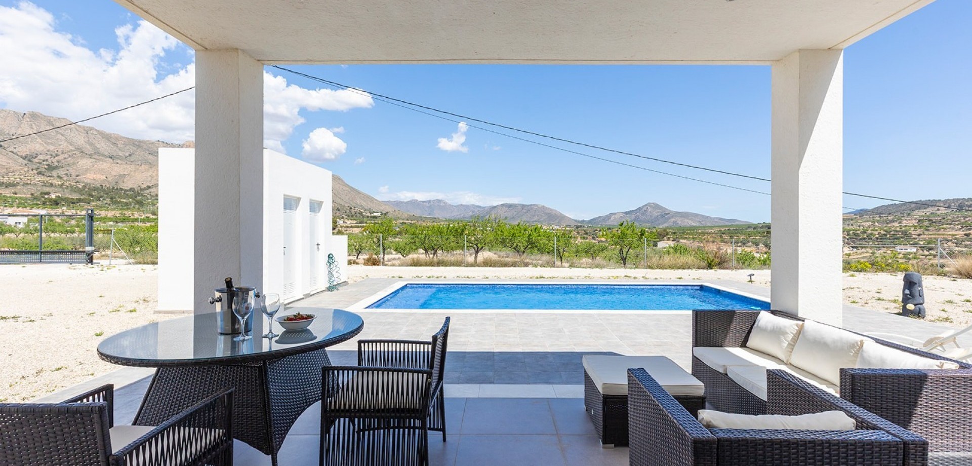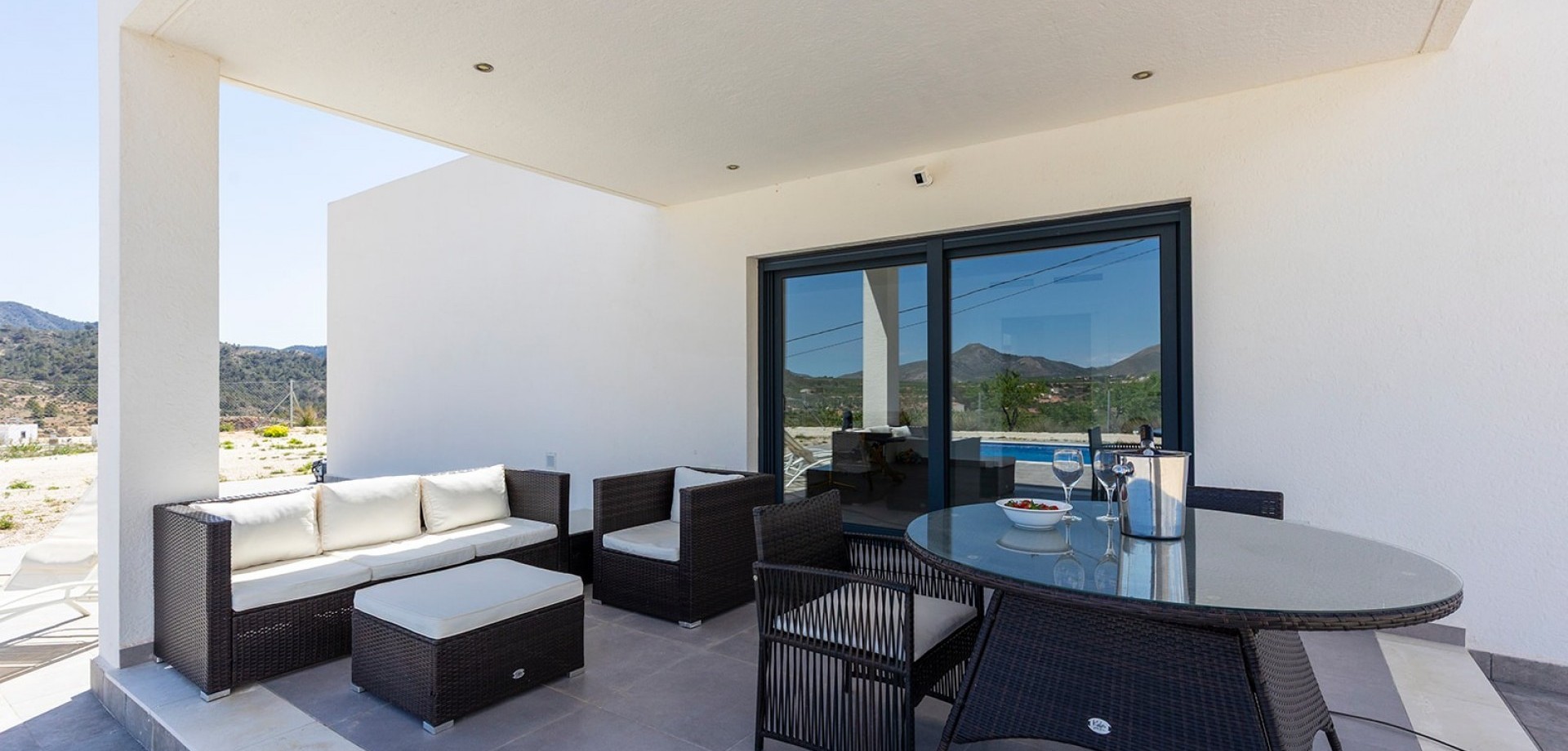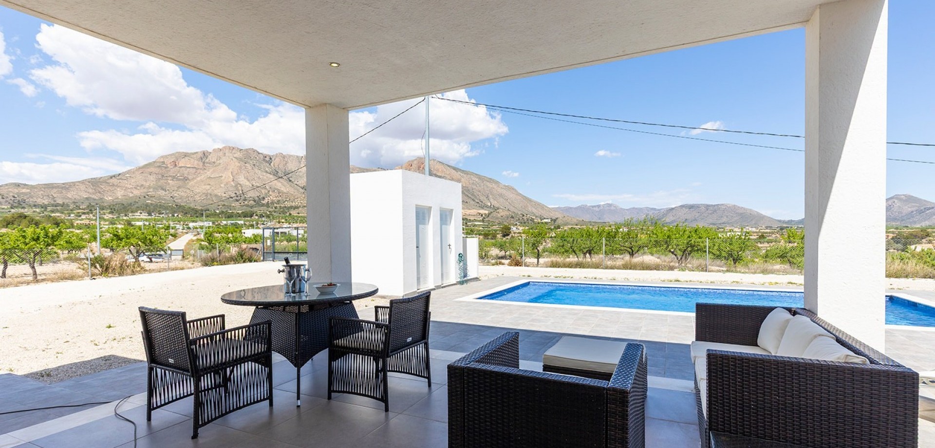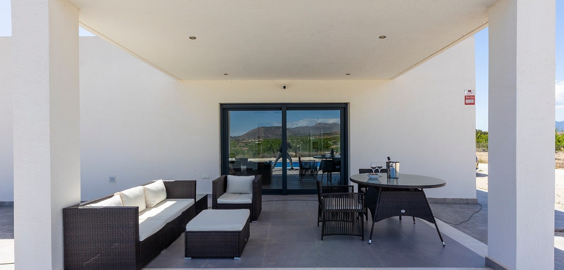 Droom je van rust, ruimte en luxe onder de zon? Deze prachtige nieuwbouwvilla in het charmante Macisvenda (Murcia) biedt het allemaal. Gelegen op een royaal perceel van 10.536 m², geniet je hier van ultieme privacy, schitterende vergezichten en de vrijheid om het buitenleven volledig naar jouw hand te zetten. De moderne architectuur, gecombineerd met hoogwaardige afwerking, zorgt voor een comfortabele en stijlvolle leefomgeving. Indeling van de woning: 3 ruime slaapkamers, elk met veel natuurlijk licht en mooi uitzicht 2 moderne badkamers met luxueuze afwerking en massage bad of inloopdouche. Er is nog een extra douche en toilet in het bijgebouw vlakbij het zwembad. Open woon-/eetkamer met directe toegang tot het terras en zwembad Strakke, volledig uitgeruste keuken Stap naar buiten en laat je verrassen door het schitterende privézwembad van 32 m², perfect gepositioneerd om te genieten van de zon en het uitzicht op de omliggende natuur. Of je nu op zoek bent naar een permanente woning, een luxe vakantieverblijf of een waardevolle investering – deze villa biedt alle ingrediënten voor comfortabel wonen in een idyllische omgeving. Belangrijkste kenmerken: Nieuwbouw – instapklaar Alles op één woonniveau, geen trappen. Groot perceel met veel mogelijkheden Volledige privacy Zwembad, terras en moderne afwerking Slechts enkele minuten van voorzieningen en op ca. 50 min van de kust Vraag vandaag nog een bezichtiging aan en laat je verrassen door deze unieke plek.