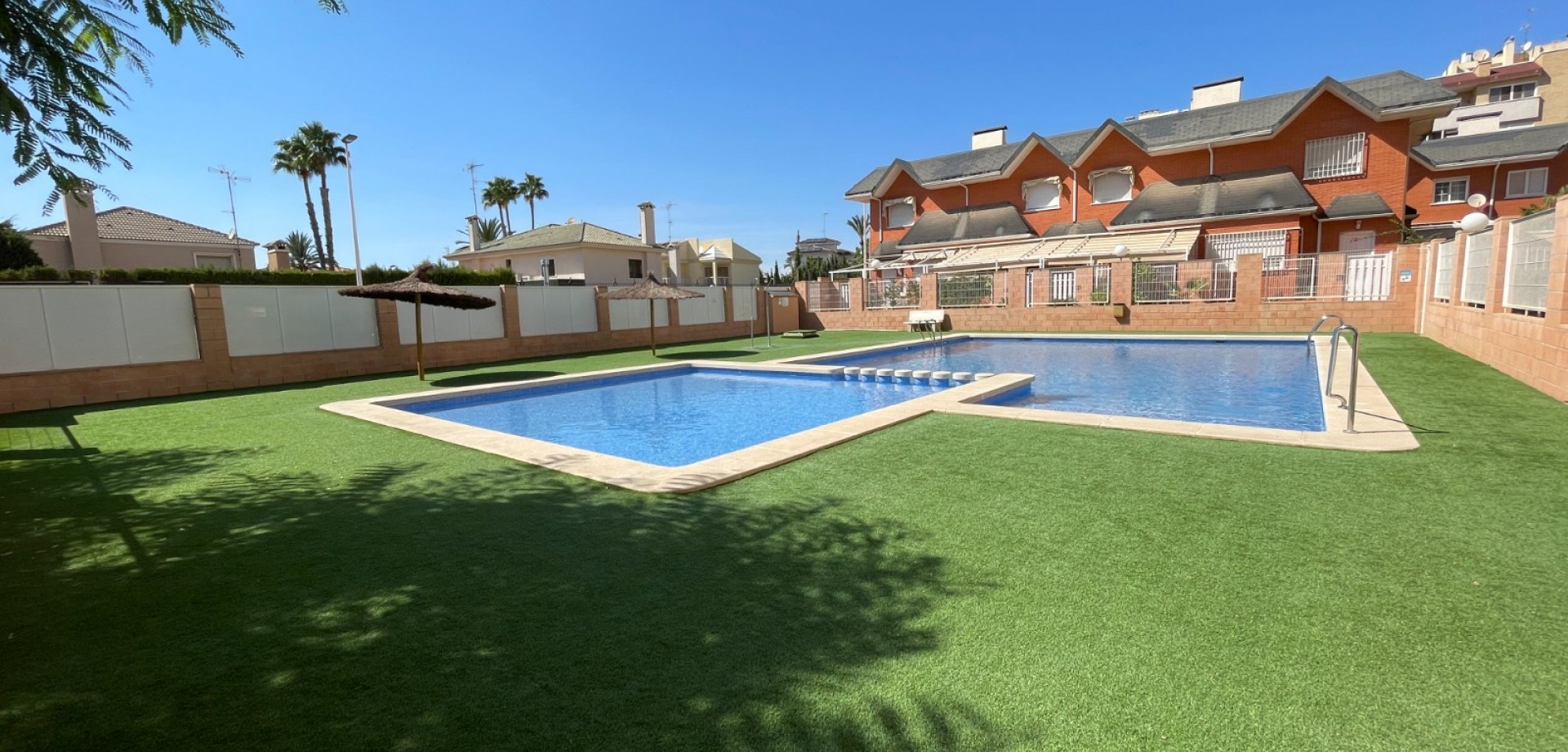 Exclusieve rijwoning in ElcheOntdek deze prachtige rijwoning met 4 slaapkamers en 3 badkamers, gelegen in een van de meest gewilde wijken van Elche. Een ruime en lichte woning in uitstekende staat, perfect voor gezinnen die comfort, ruimte en levenskwaliteit zoeken.Belangrijkste kenmerken: 4 slaapkamers, waarvan één met inloopkast en en-suite badkamer 3 volledig uitgeruste badkamers Grote multifunctionele kelder (geschikt als thuisbioscoop, fitnessruimte of recreatieruimte) Dubbele garage en twee bergingen Privétuin en gemeenschappelijk zwembad Airconditioning (warm/koud) via kanalen, verwarming, open haard en parketvloer Toplocatie: De woning ligt in Elche, de derde grootste stad van de Valenciaanse Gemeenschap, bekend als de palmenstad. Hier vindt u alles wat u nodig heeft: winkels, moderne winkelcentra, restaurants, tweetalige scholen, universiteit, sportfaciliteiten, musea en een treinstation.Slechts 17 km van de stranden van Arenales del Sol, 12 km van Santa Pola, en slechts 10 minuten van de luchthaven Alicante-Elche.Een woning die ruimte, comfort en een bevoorrechte locatie combineert. Ideaal voor gezinnen die alles willen.