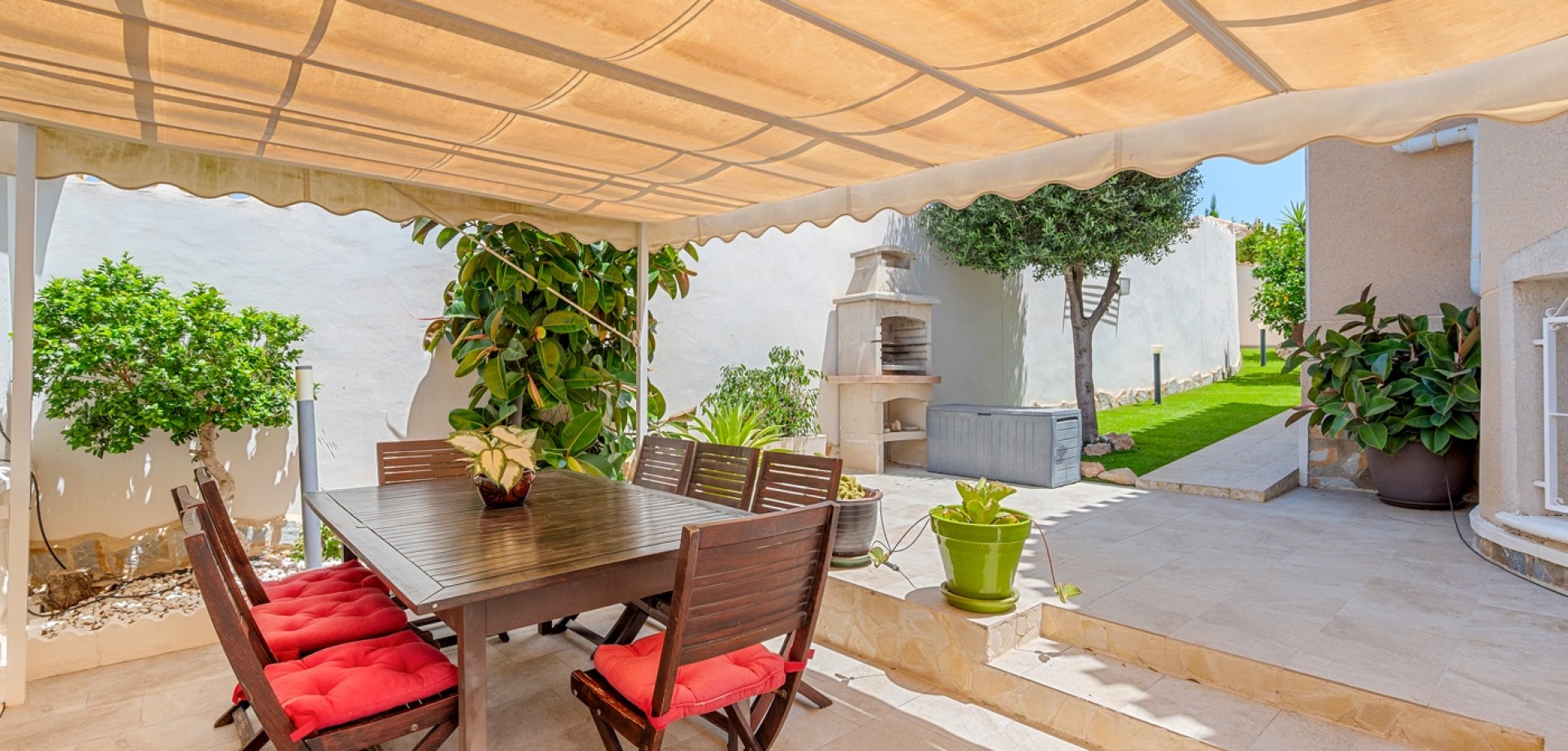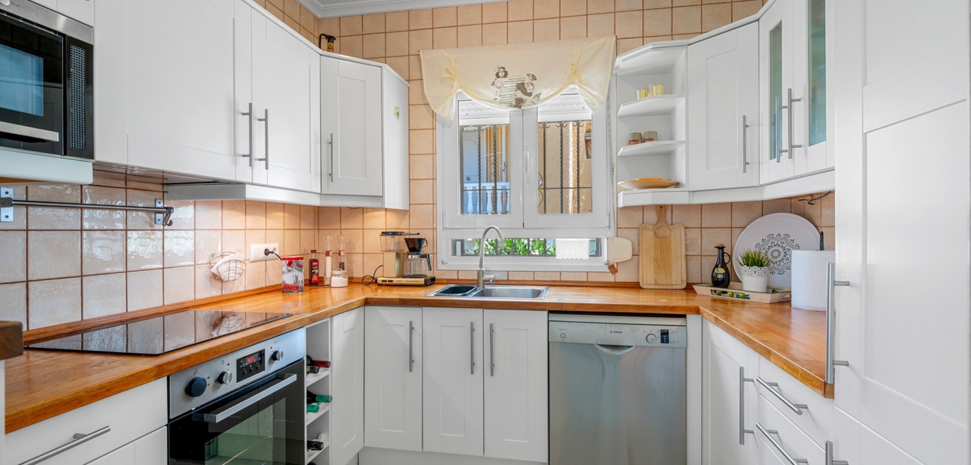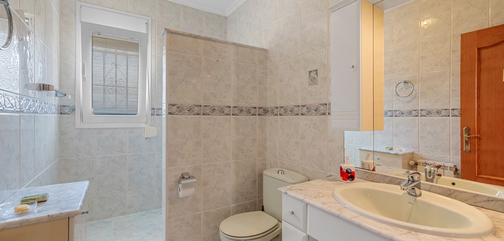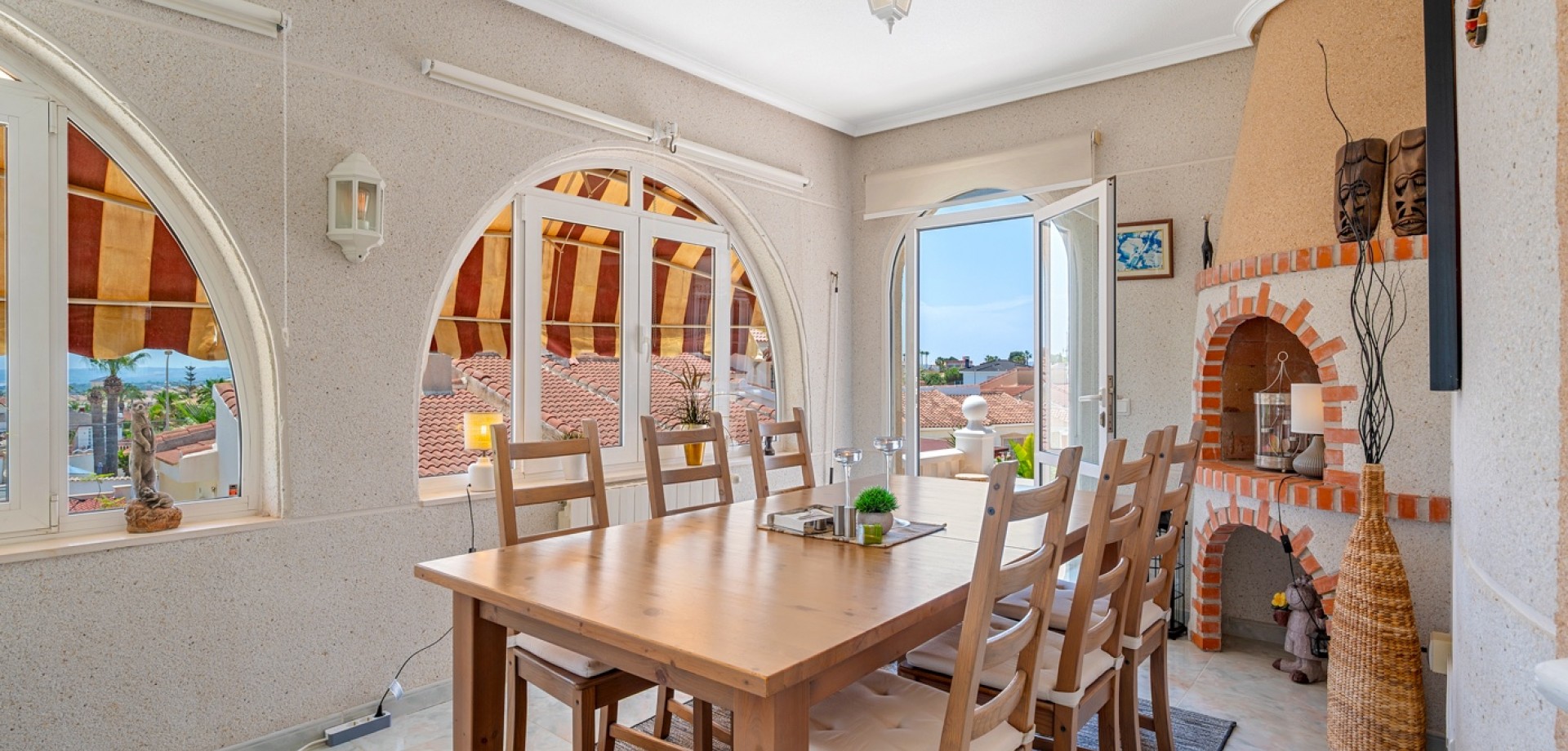 Charmante villa in mediterrane stijl met 3 slaapkamers, gelegen nabij het centrum van Ciudad Quesada. De villa heeft een totale woonoppervlakte van 238 m² verdeeld over twee niveaus: de hoofdverdieping en een gastenappartement op de benedenverdieping. De hoofdverdieping bestaat uit twee tweepersoonsslaapkamers en twee badkamers, waarvan één en-suite aan de hoofdslaapkamer. Verder is er een entree, een open keuken, een eet- en woonkamer met open haard, en een glazen terras met extra eet- en zitruimte. Bij de ingang van de villa bevindt zich een overdekt terras en vanuit het glazen terras heeft men direct toegang tot het zwembadgedeelte. Op de benedenverdieping bevindt zich een apart gastenappartement met een woonkamer, keuken, grote slaapkamer en badkamer. De villa is uitgerust met centrale verwarming (gas), airconditioning, open haard in de woonkamer, alarmsysteem en osmosefilter. BuitenruimteDe villa ligt op een zuidgericht perceel van 500 m². De tuin is goed onderhouden met betegeling en beplanting. Er is een zoutwaterzwembad, buitendouche, carport, barbecuegedeelte, berging en diverse zitgedeeltes buiten. De tuin beschikt over een automatisch irrigatiesysteem. De villa ligt op korte loopafstand van de hoofdstraat in Ciudad Quesada, waar u een breed scala aan voorzieningen vindt.