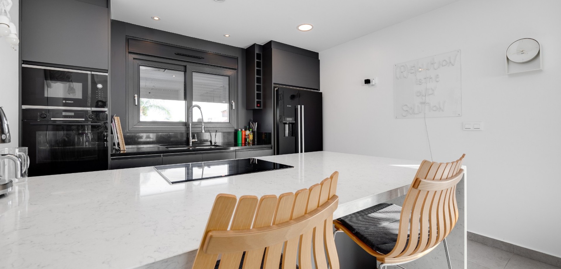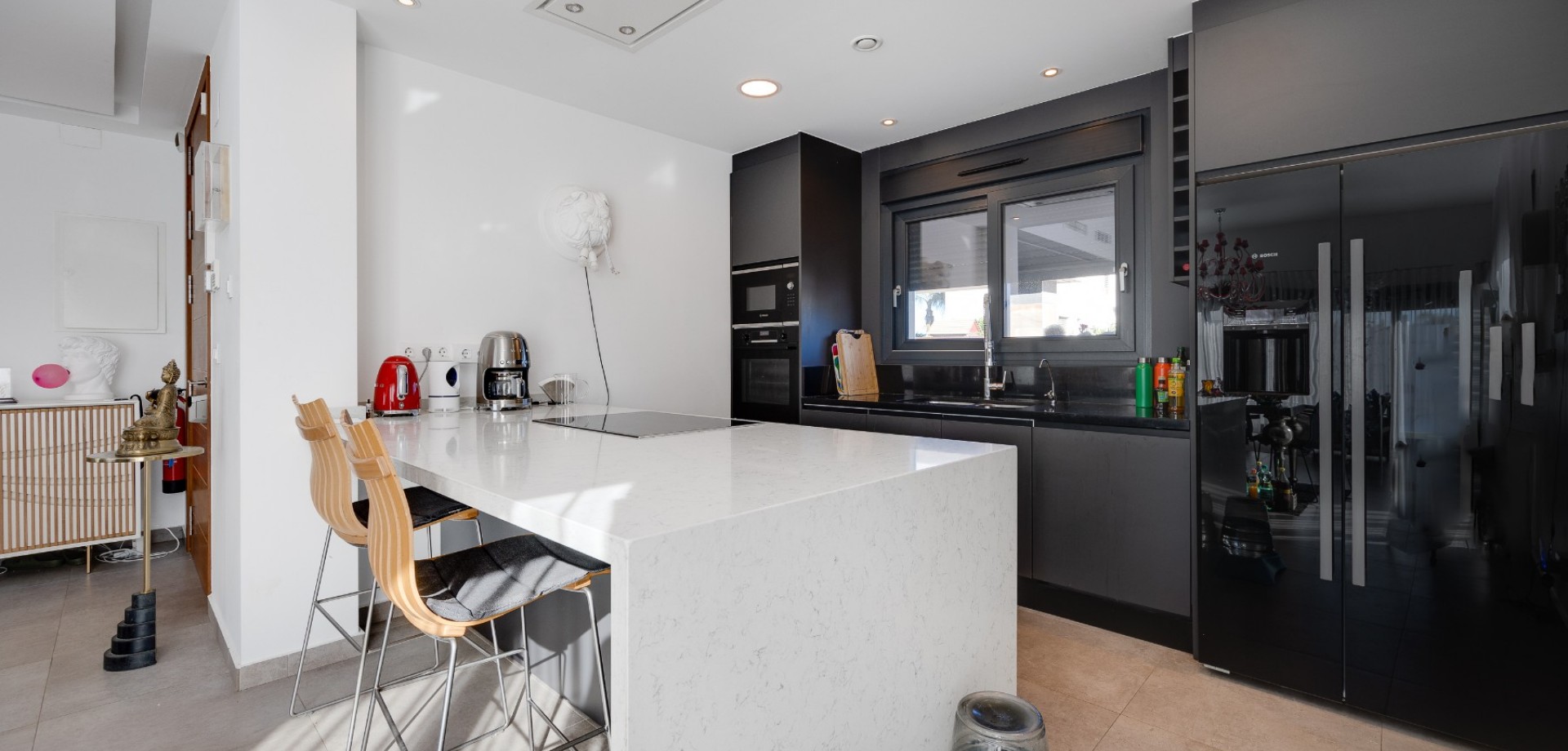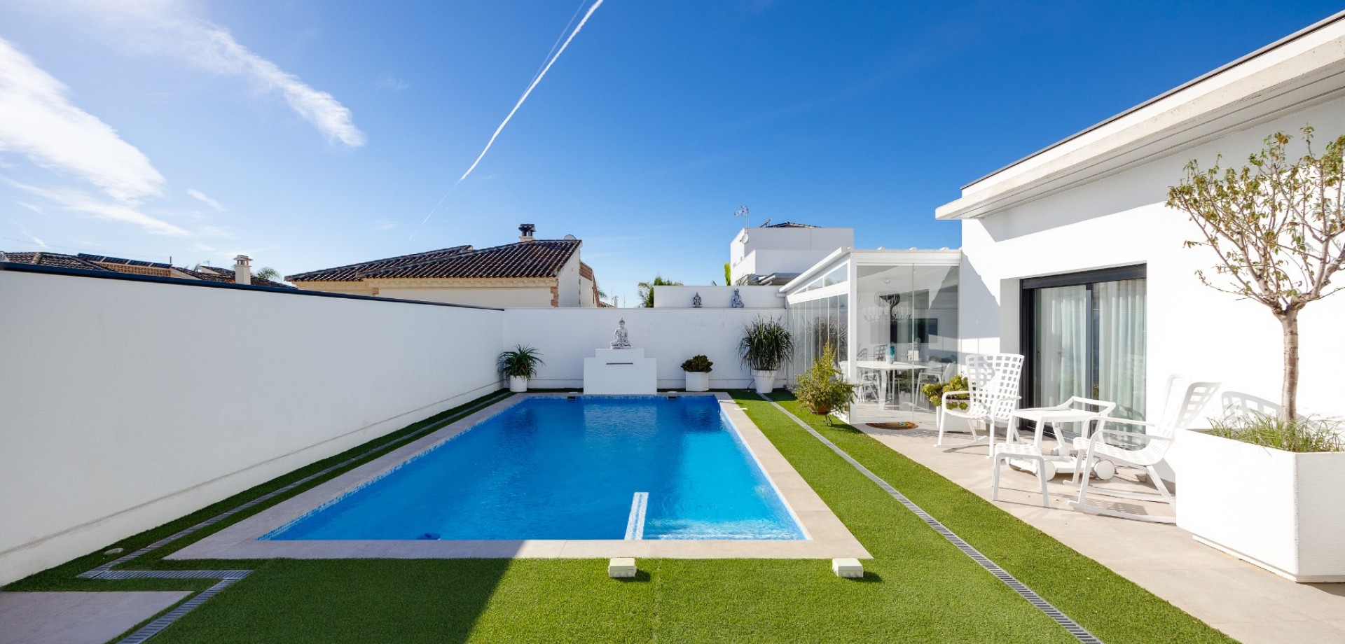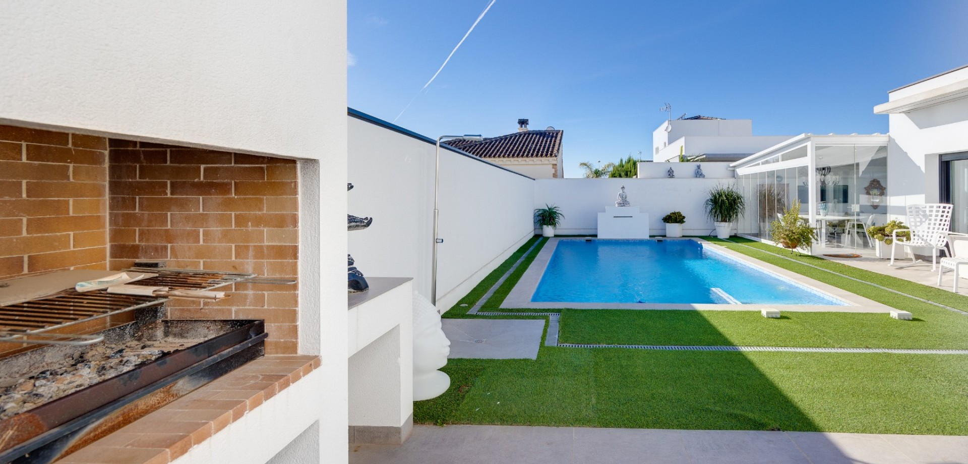 De accommodatie biedt: Oppervlakte: 150 m² bebouwd, 501 m² perceel Slaapkamers: 3 + charmant gastenverblijf Badkamers: 3 moderne badkamers Meubilair: Volledig gemeubileerd – instapklaar Zwembad: Privézwembad, perfect voor ontspanning en zonnige dagen Tuin & Terras: Zonnige tuin en ruim terras - ideaal voor barbecues, zonnebaden en gezellige avonden Faciliteiten: Airconditioning, berging, parkeerplaats Ontwerp: Uniek, modern en stijlvol Beschrijving: Deze villa combineert comfort, elegantie en mediterrane flair . Het ruime en zonnige perceel biedt ruimte voor zowel ontspanning als sociale bijeenkomsten. Met een gastenverblijf, drie slaapkamers en drie badkamers is de woning perfect voor gezinnen of gasten. Dankzij het volledig gemeubileerde interieur kunt u direct genieten van het leven aan de Costa Blanca, met een privézwembad en zonnige dagen . Dit is niet zomaar een huis – het is een levensstijl. Jouw eigen oase in de zon wacht op je!