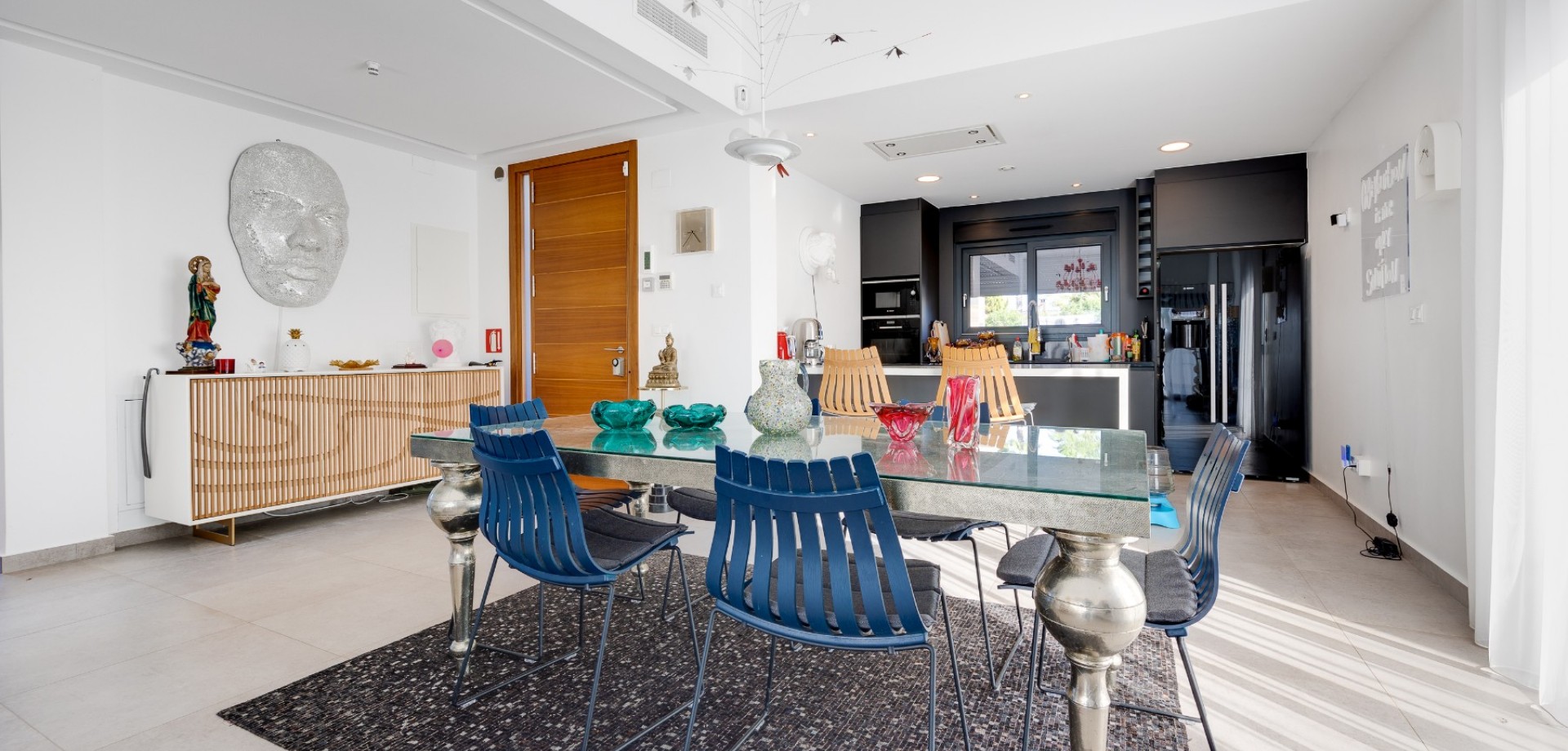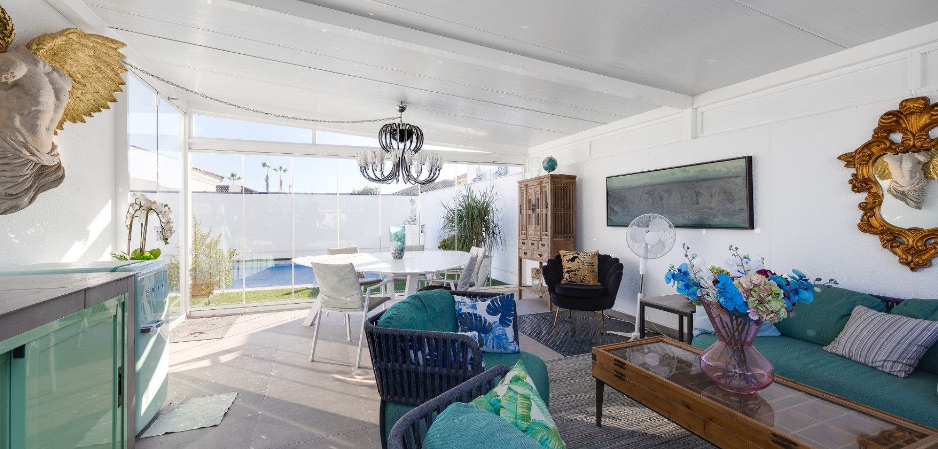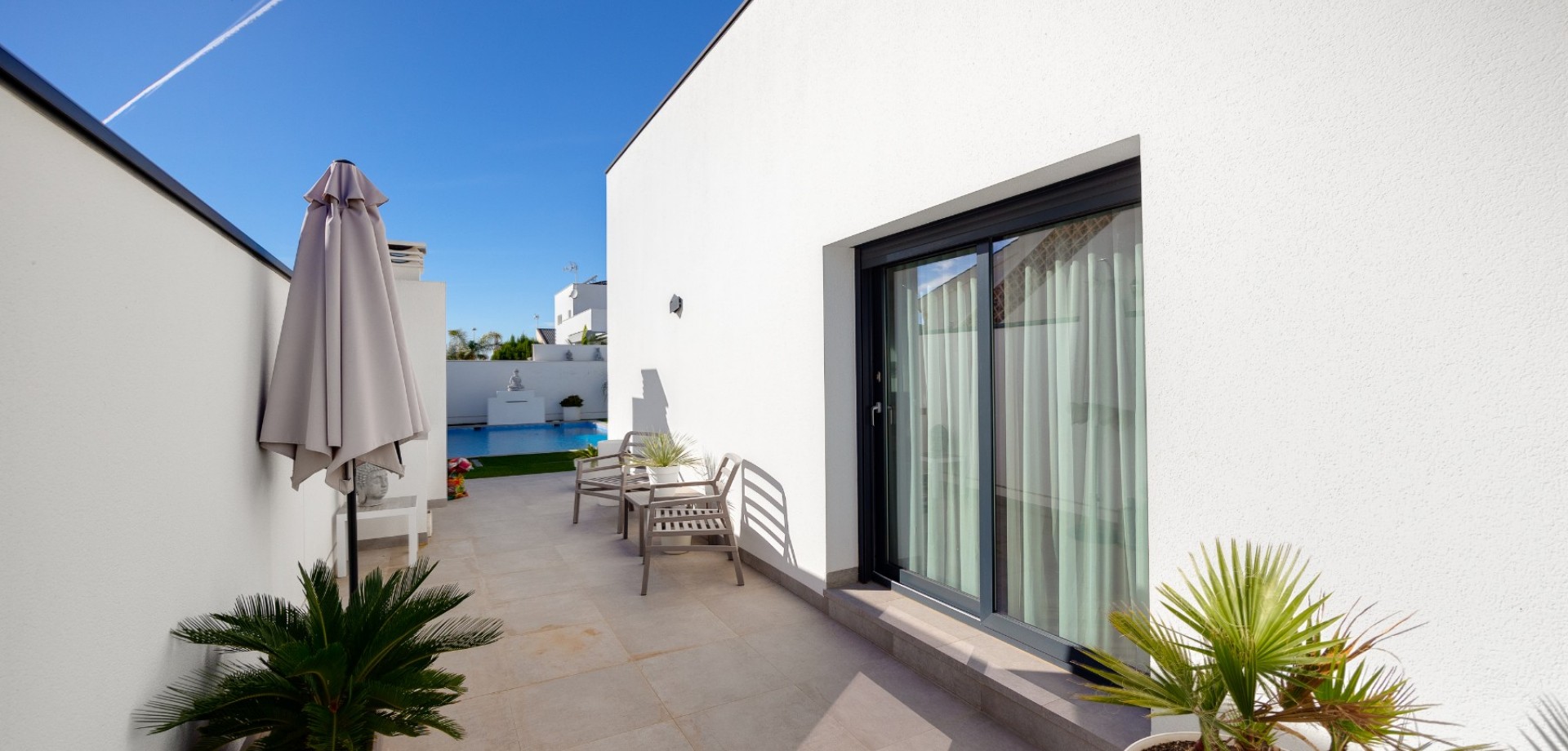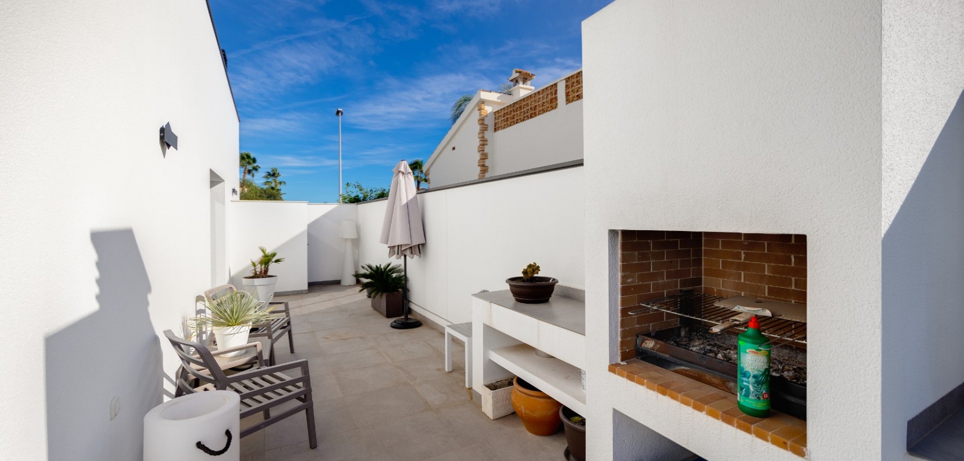 De accommodatie biedt: Oppervlakte: 150 m² bebouwd, 501 m² perceel Slaapkamers: 3 + charmant gastenverblijf Badkamers: 3 moderne badkamers Meubilair: Volledig gemeubileerd – instapklaar Zwembad: Privézwembad, perfect voor ontspanning en zonnige dagen Tuin & Terras: Zonnige tuin en ruim terras - ideaal voor barbecues, zonnebaden en gezellige avonden Faciliteiten: Airconditioning, berging, parkeerplaats Ontwerp: Uniek, modern en stijlvol Beschrijving: Deze villa combineert comfort, elegantie en mediterrane flair . Het ruime en zonnige perceel biedt ruimte voor zowel ontspanning als sociale bijeenkomsten. Met een gastenverblijf, drie slaapkamers en drie badkamers is de woning perfect voor gezinnen of gasten. Dankzij het volledig gemeubileerde interieur kunt u direct genieten van het leven aan de Costa Blanca, met een privézwembad en zonnige dagen . Dit is niet zomaar een huis – het is een levensstijl. Jouw eigen oase in de zon wacht op je!