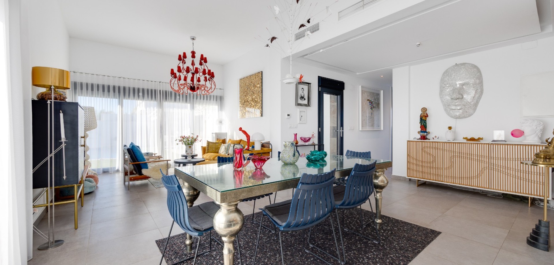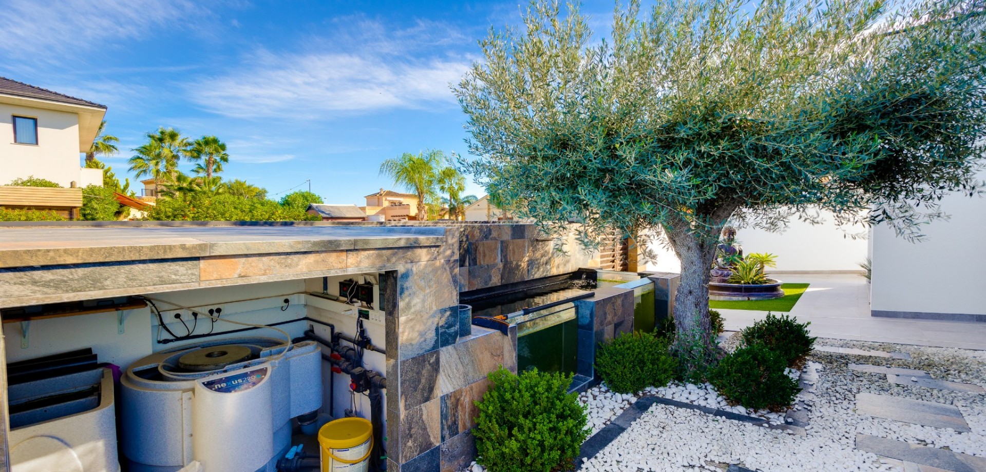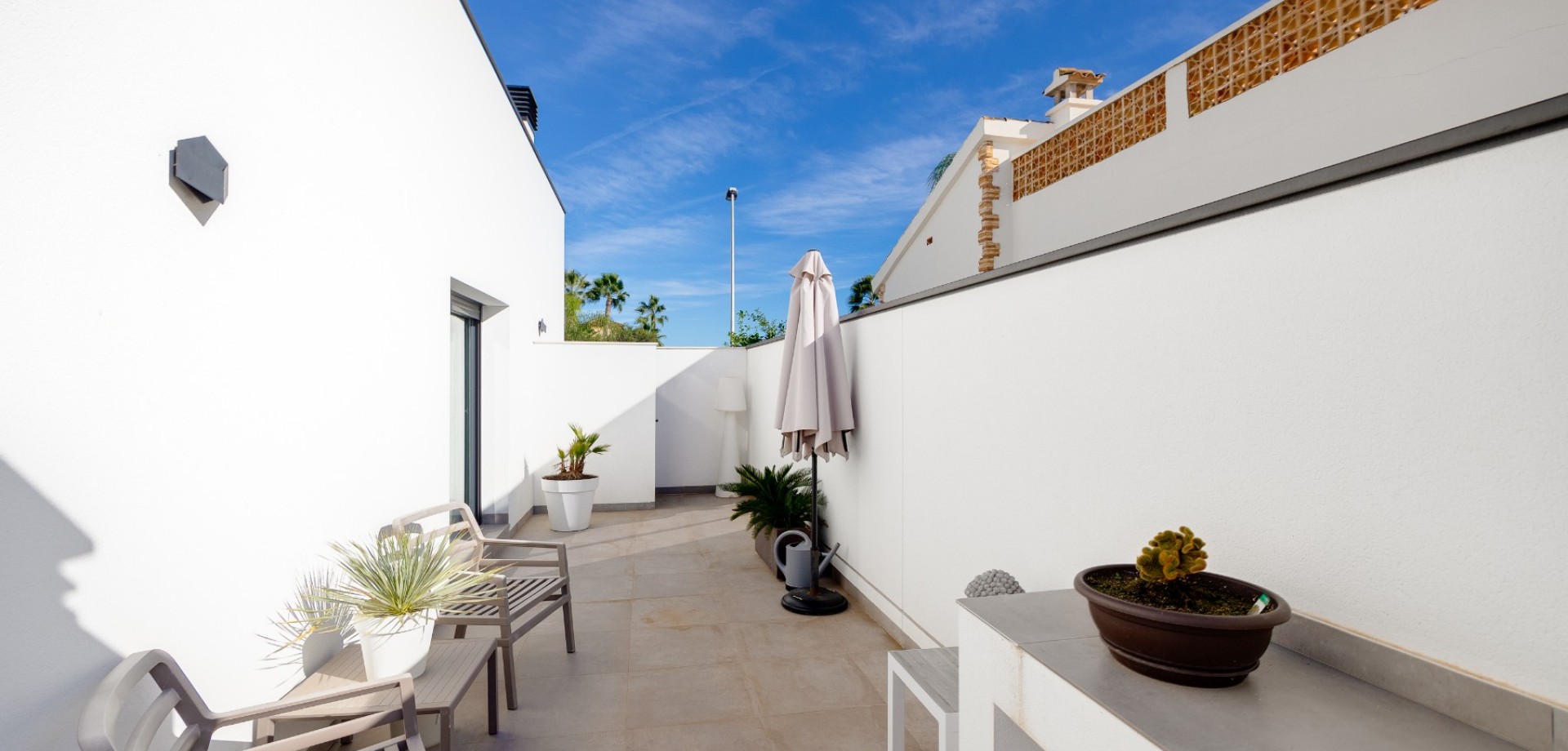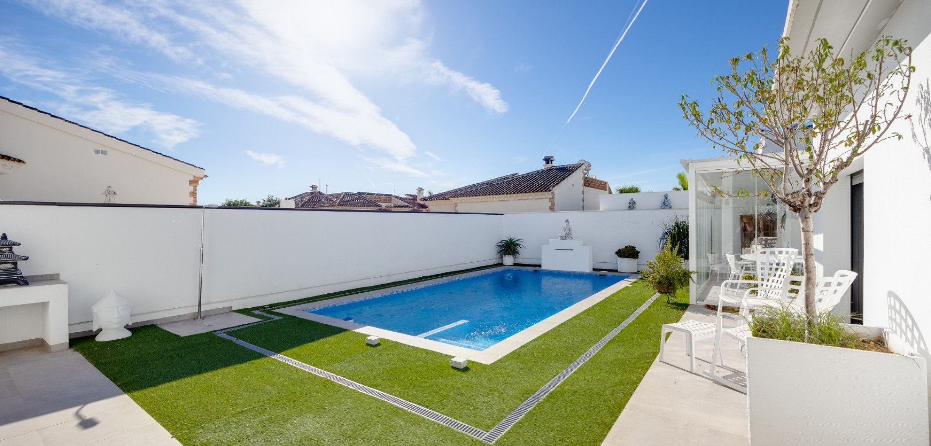 De accommodatie biedt: Oppervlakte: 150 m² bebouwd, 501 m² perceel Slaapkamers: 3 + charmant gastenverblijf Badkamers: 3 moderne badkamers Meubilair: Volledig gemeubileerd – instapklaar Zwembad: Privézwembad, perfect voor ontspanning en zonnige dagen Tuin & Terras: Zonnige tuin en ruim terras - ideaal voor barbecues, zonnebaden en gezellige avonden Faciliteiten: Airconditioning, berging, parkeerplaats Ontwerp: Uniek, modern en stijlvol Beschrijving: Deze villa combineert comfort, elegantie en mediterrane flair . Het ruime en zonnige perceel biedt ruimte voor zowel ontspanning als sociale bijeenkomsten. Met een gastenverblijf, drie slaapkamers en drie badkamers is de woning perfect voor gezinnen of gasten. Dankzij het volledig gemeubileerde interieur kunt u direct genieten van het leven aan de Costa Blanca, met een privézwembad en zonnige dagen . Dit is niet zomaar een huis – het is een levensstijl. Jouw eigen oase in de zon wacht op je!