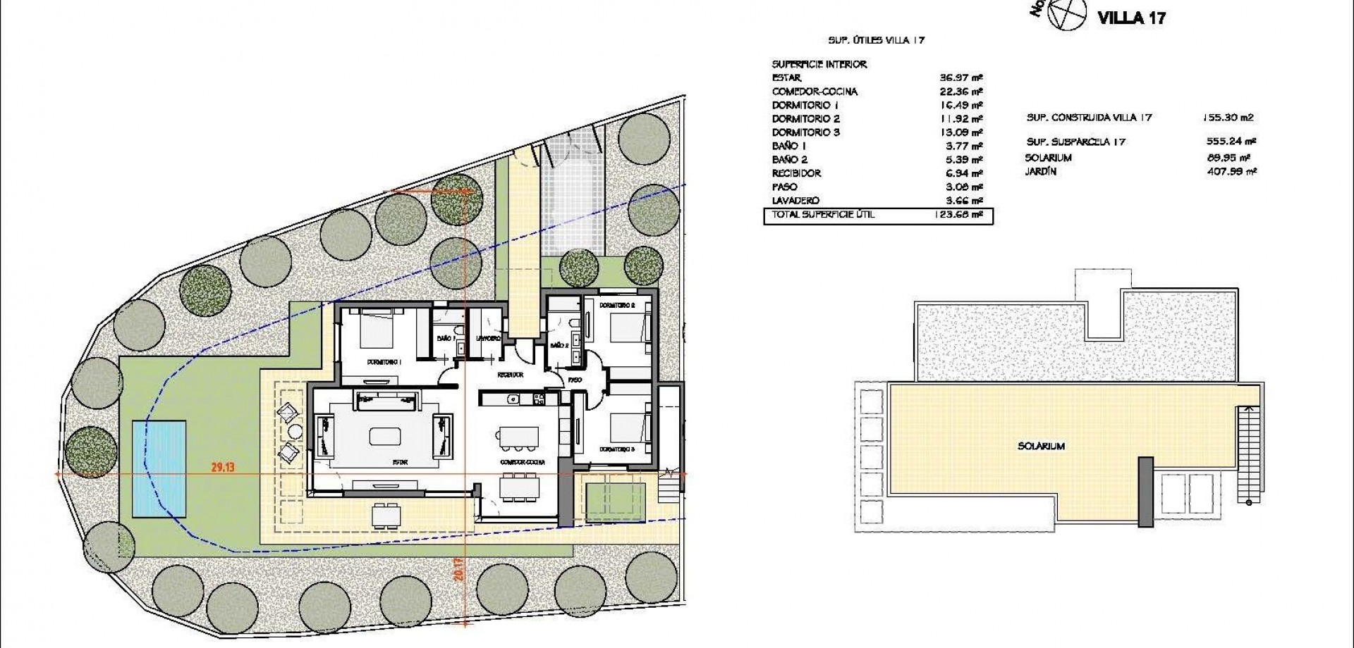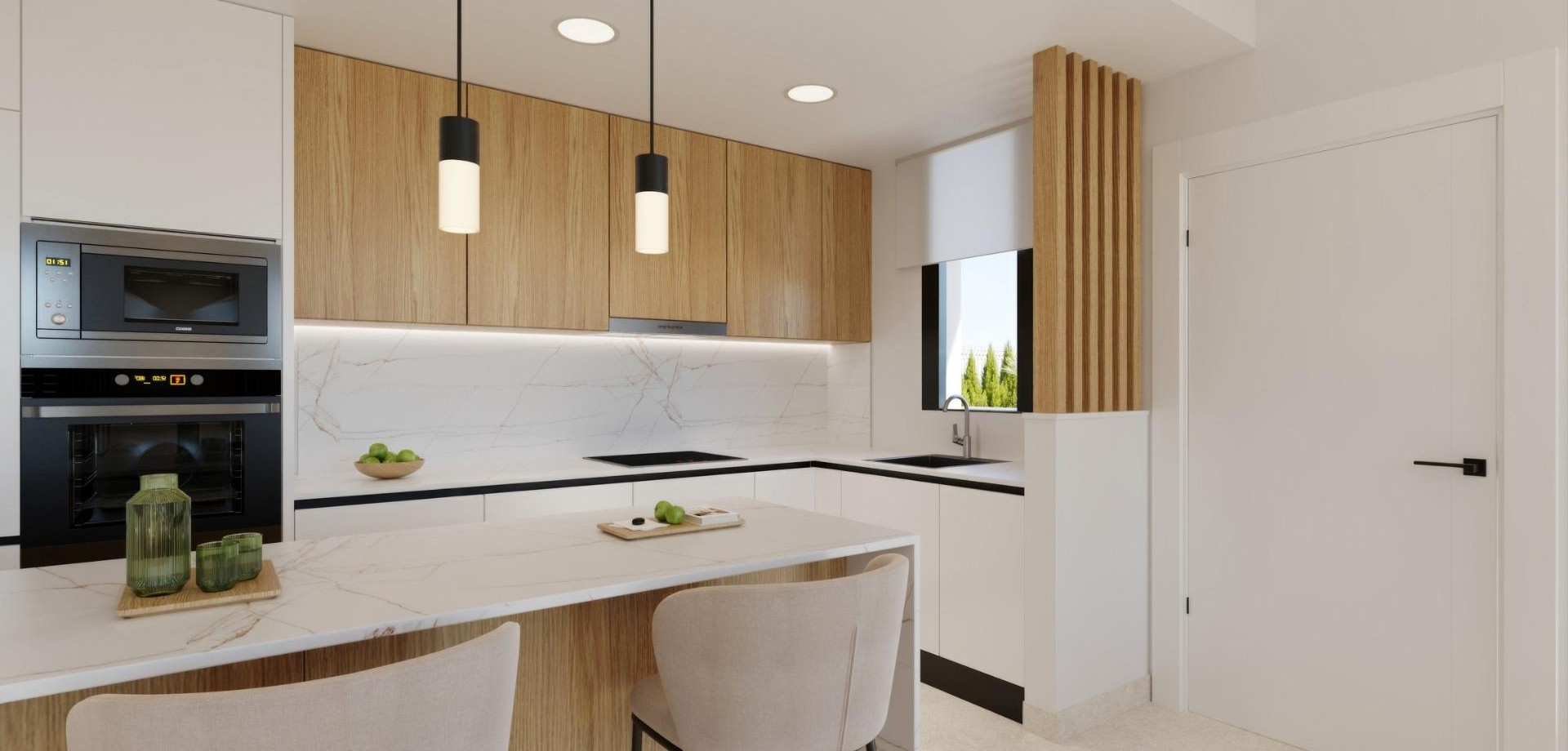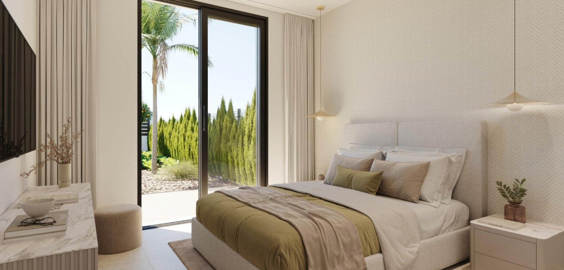 Nieuwbouwwoningen in Hacienda del Álamo Golf Resort, Murcia Moderne woningen in een natuurlijke en exclusieve omgeving Ontdek deze fantastische nieuwbouwwoningen in het prestigieuze Hacienda del Álamo Golf Resort, een gated community in de regio Murcia die rust, veiligheid en een compleet aanbod aan diensten combineert. Omgeven door natuur en met een bevoorrecht klimaat is dit complex ideaal voor wie op zoek is naar een ontspannen levensstijl zonder in te boeten aan comfort. Villas met 2 of 3 slaapkamers op één verdieping met privé-solarium De woonwijk bestaat uit 17 villa's op percelen vanaf 300 m2. U kunt kiezen uit woningen met 2 of 3 slaapkamers en 2 complete badkamers op één verdieping, naast een terras met privézwembad van 6x2,4 en een privé-solarium op het dak. Hoogwaardige afwerking en gegarandeerd comfort De woningen zijn ontworpen met hoogwaardige materialen en zijn bedoeld om energie-efficiëntie en welzijn te bieden: Buitenkozijnen met thermische onderbreking Warm water via een aerothermisch systeem Voorbereiding voor airconditioning via leidingen Privézwembad Onafhankelijke irrigatiewaterinstallatie met opslagtank en individuele drukgroep. Gemotoriseerde toegangspoort voor voertuigen. Gemotoriseerde rolluiken in slaapkamers Gepantserde voordeur Een resort met volledige service en golfbaan Hacienda del Álamo is een van de meest complete complexen aan de Costa Cálida. Het beschikt over: Professionele 18-holes golfbaan Hotel met spa Supermarkt Restaurants en bars Sportvelden en groene zones 24-uursbeveiliging De urbanisatie bootst de sfeer van een traditioneel mediterraan dorp na, met rustige straatjes en een verzorgd ontwerp. Strategische ligging dicht bij alles Internationale luchthaven van Murcia (Corvera): 20 km Extra golfbanen: minder dan 10 km Cartagena: 35 km Stranden van Mar Menor: 30 km Winkelcentrum Espacio Mediterráneo: 28 km Haven van Mazarrón: 40 km Leef in stijl aan de Costa Cálida Deze villa's bieden een uitstekende kans om te wonen of te investeren in een van de meest veelbelovende gebieden van Murcia. Neem nu contact met ons op en ontdek uw volgende thuis in Hacienda del Álamo Golf Resort.