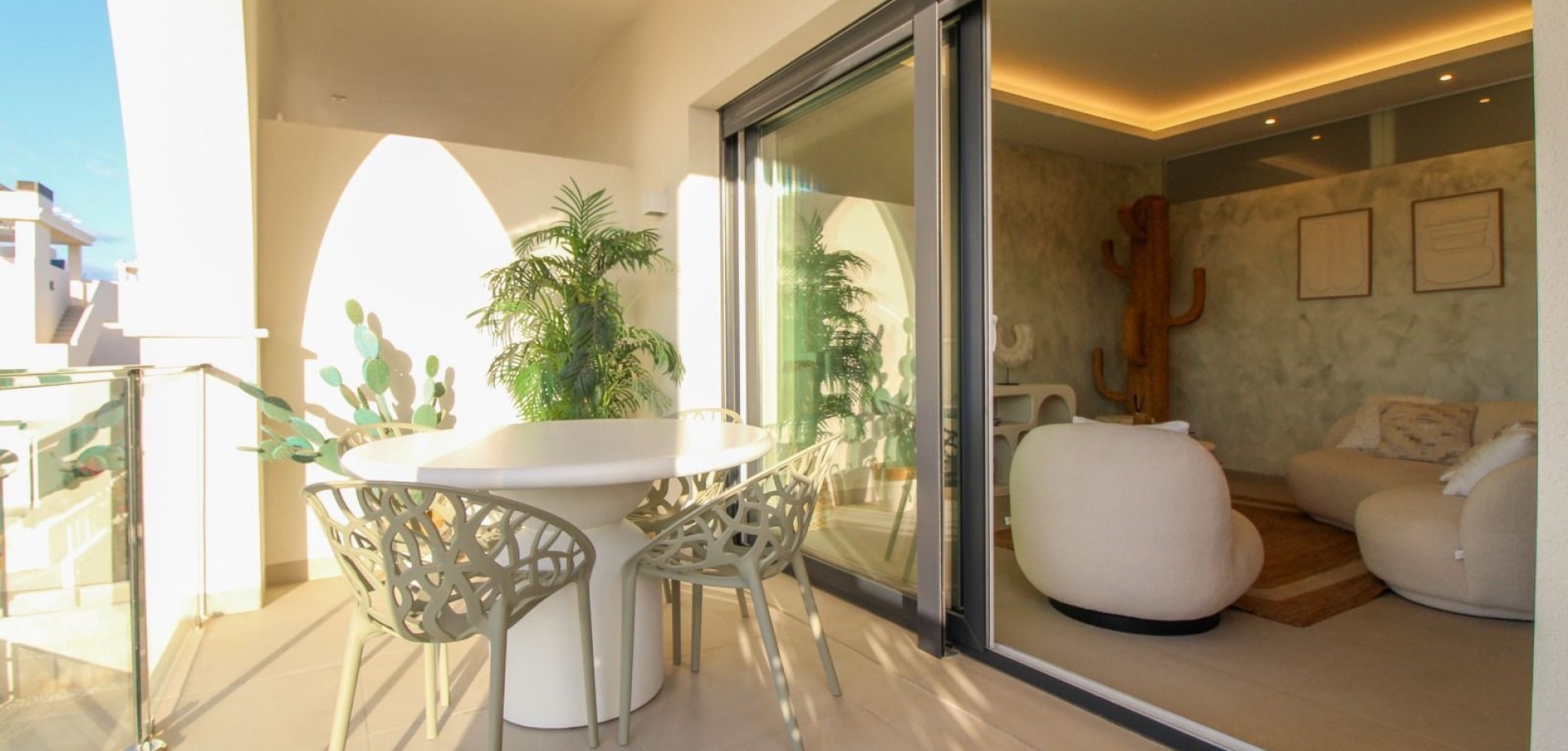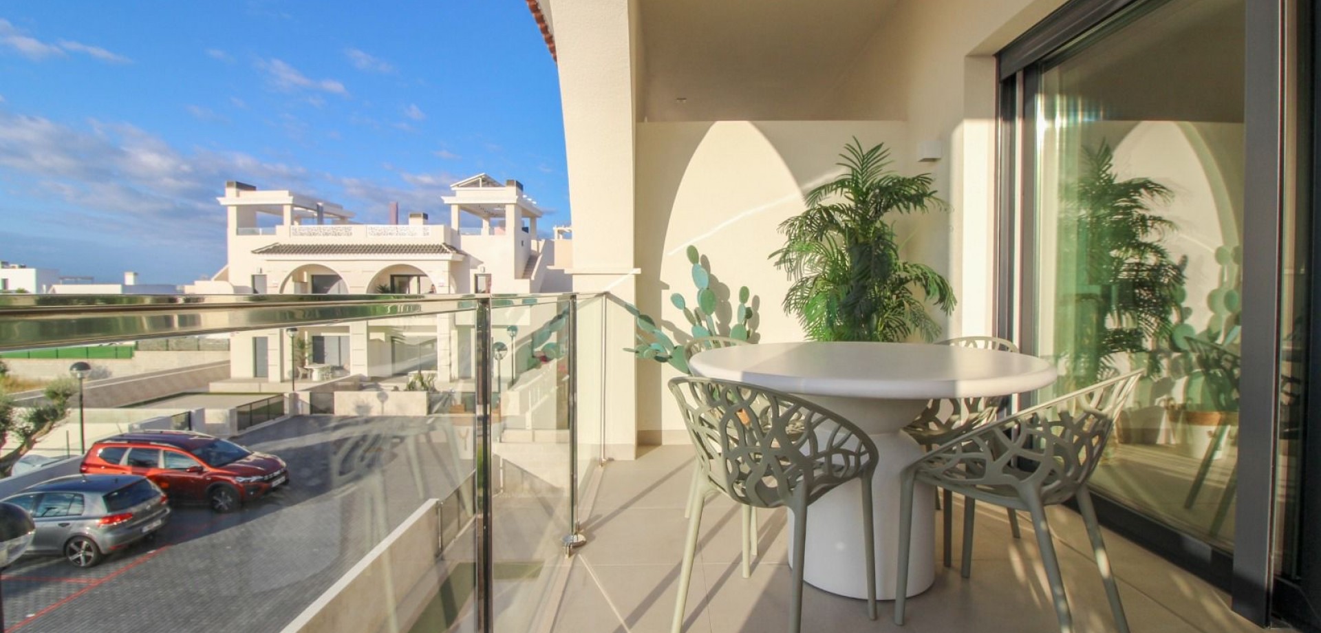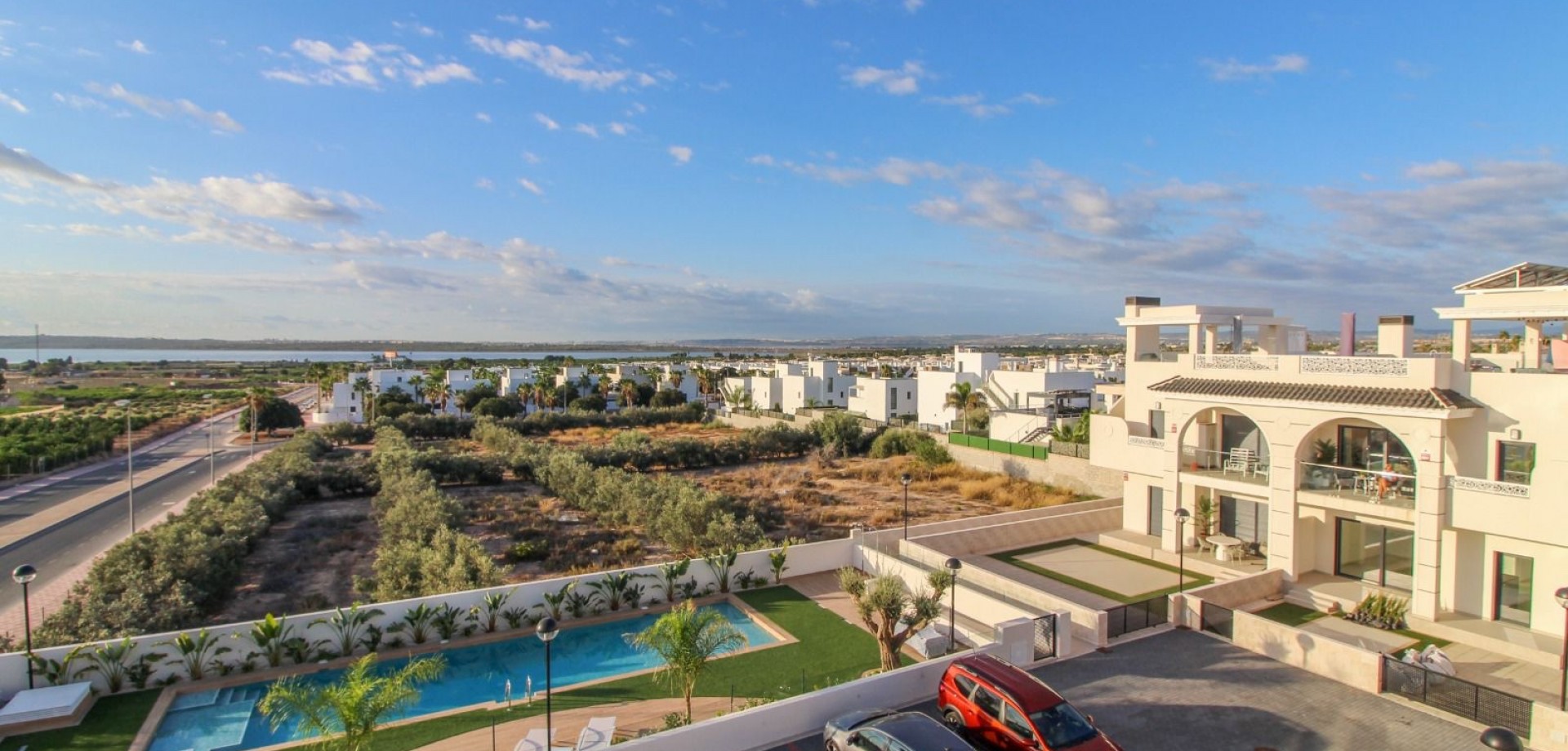 Penthouse met Panoramische Zichten – Serena Garden Residencial, Ciudad Quesada Ontdek dit Exclusieve Ibiza-style penthouse in het geliefde Serena Garden Residencial in Ciudad Quesada. Een perfecte combinatie van moderne elegantie, mediterrane lichtheid en een toplocatie nabij zee, stad en luchthaven. Kenmerken 2 ruime slaapkamers met veel lichtinval2 moderne badkamers met hoogwaardige afwerkingPrivé dakterras met lounge-mogelijkheden, zonnige oriëntatie én panoramisch uitzichtVolledig ingericht – instapklaar met stijlvol meubilairHedendaagse Ibiza-stijl: lichte tinten, natuurlijke materialen en een ontspannen sfeerGelegen in een kwalitatief residentieel complex met zwembad en groene zones Toplocatie Dit penthouse ligt strategisch in de regio en biedt toegang tot alles wat de Costa Blanca zo geliefd maakt: Slechts 10 minuten naar Guardamar del Segura met zijn mooie boulevard en brede zandstrandenDicht bij Guardamar stad met winkels, restaurants en lokale marktOp 35 minuten van de luchthaven van Alicante, ideaal voor eigen gebruik én verhuurTal van golfbanen, natuurparken en recreatiemogelijkheden in de directe omgeving15-20 minuten van Orihuela Costa & Torrevieja Waarom dit penthouse bijzonder is Het royale dakterras is dé absolute troef: een privé-oase met panoramische uitzichten over Ciudad Quesada, de natuur en de kustlijn. Een ideale plek voor ontspanning, zonnebaden of sfeervolle avonden met vrienden en familie.