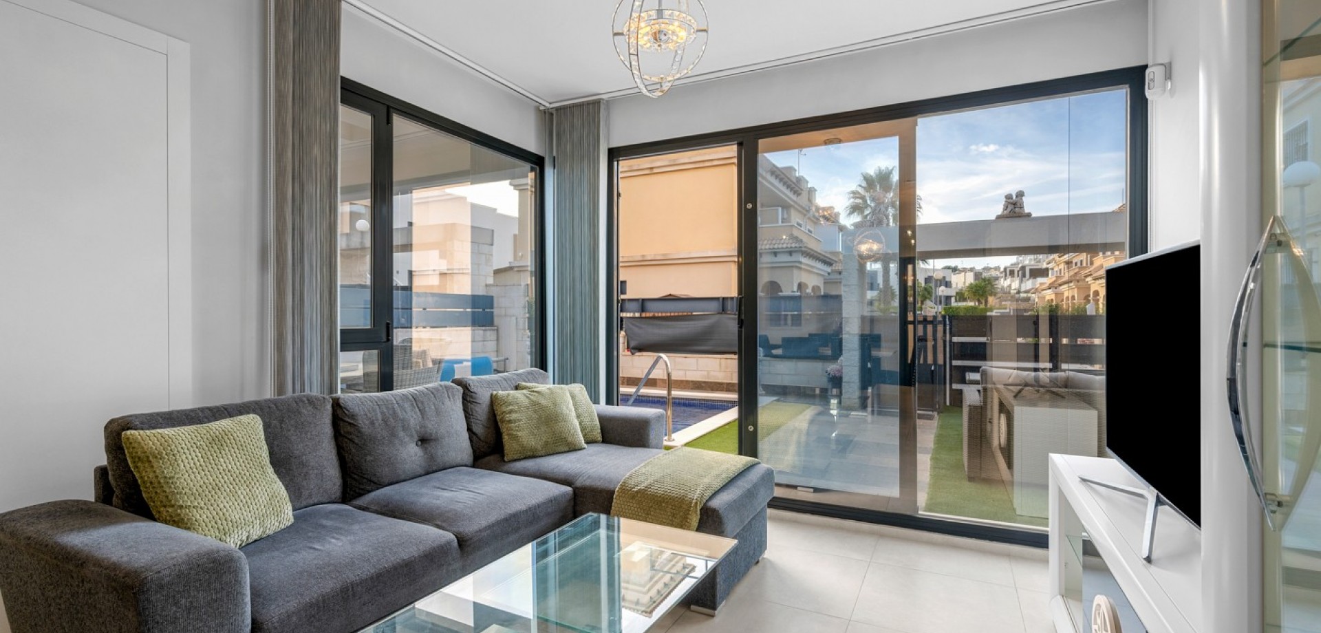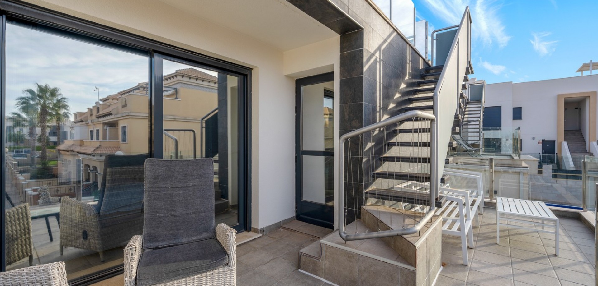 Deze prachtige villa is gelegen in het populaire Villamartin, Orihuela Costa, en combineert comfort, ruimte en een uitstekende locatie aan de Costa Blanca. Het huis beschikt over drie ruime slaapkamers en drie moderne badkamers. Eén slaapkamer bevindt zich op de begane grond, ideaal voor gasten of gelijkvloers wonen, terwijl de twee slaapkamers op de bovenverdieping extra privacy bieden. De open keuken is volledig uitgerust met moderne apparatuur en loopt naadloos over in de lichte en ruime woonkamer. Buiten kunt u genieten van een privézwembad met een buitendouche, perfect om te ontspannen onder de Spaanse zon. De villa beschikt tevens over een ruim solarium, ideaal om te zonnebaden, te relaxen of te genieten van gezellige avonden met uitzicht op de omgeving. Een bijkomend voordeel is de kelder, die volledig naar eigen wens ingericht kan worden, bijvoorbeeld als gastenverblijf, hobbyruimte, fitnessruimte of mancave. De villa is gunstig gelegen: Slechts 45 minuten van de luchthaven van Alicante. Op ongeveer 4 km van de prachtige stranden. Slechts 2,5 km van een golfbaan. Deze woning is perfect als vakantiehuis, permanente woning of investeringsobject. Een unieke kans om te genieten van luxe en een hoge levenskwaliteit aan de Costa Blanca.