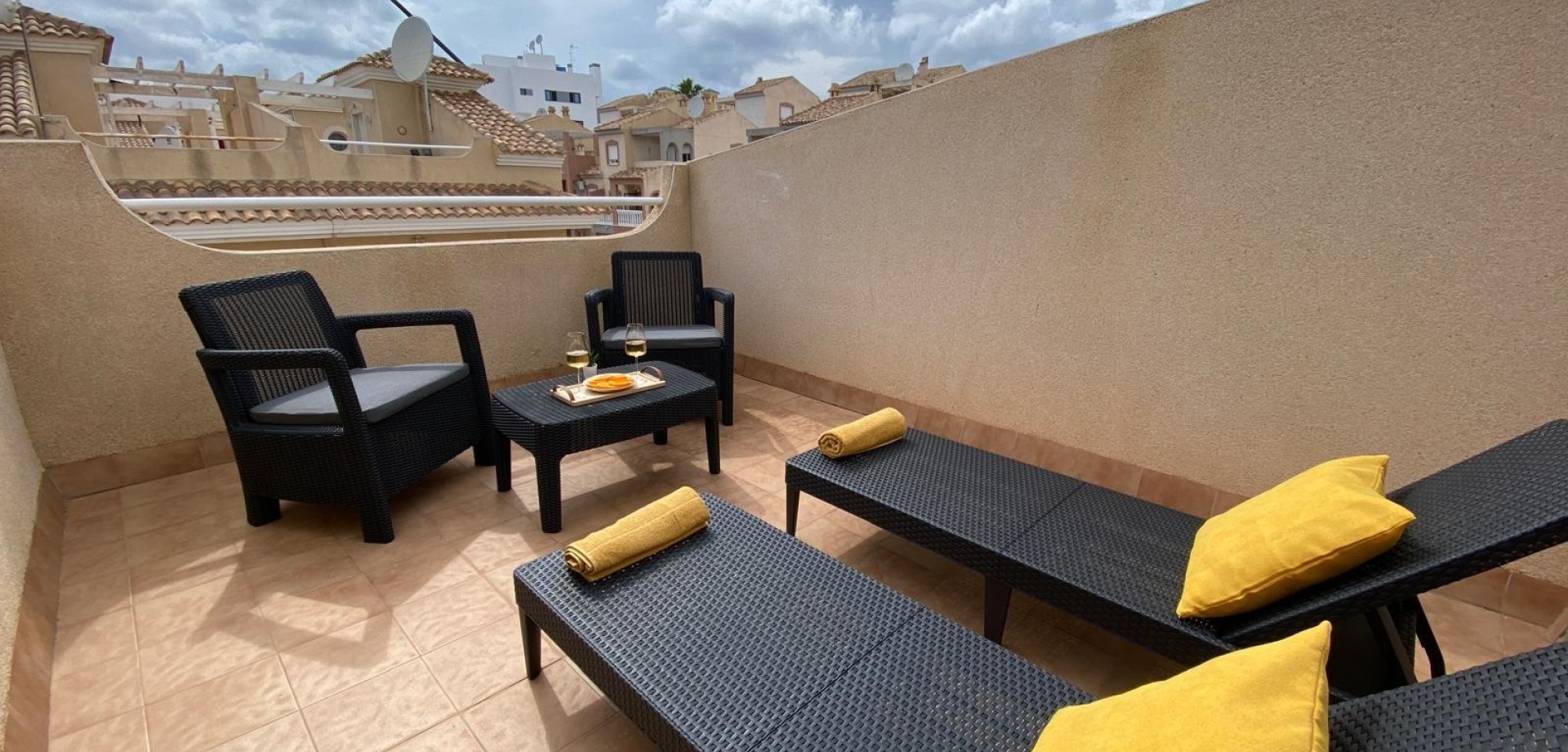 Deze twee verdiepingen tellende tussenwoning , volledig gerenoveerd in 2026 , wordt direct bewoonbaar aangeboden en kan onmiddellijk worden bewoond of verhuurd. Gelegen in een rustige en goed onderhouden woonwijk van Villamartín , combineert het comfort, privacy en een hoog investeringspotentieel . De woning wordt volledig gemeubileerd verkocht, inclusief huishoudelijke apparaten en decoratieve artikelen , waardoor het een ideale optie is als hoofdverblijf , vakantiehuis of toeristische investering . Op de begane grond bevindt zich een ruime en zeer lichte woonkamer met open keuken , ontworpen voor een moderne en functionele levensstijl, evenals een toilet en twee privéterrassen , een aan de voor- en een aan de achterzijde, die perfect zijn om buiten te dineren of te ontspannen in de zon. Op de eerste verdieping bevinden zich twee comfortabele slaapkamers , een badkamer met ligbad en een balkon . Een van de slaapkamers biedt directe toegang tot een privésolarium – een bijzonder kenmerk van de woning. Het solarium op het dak biedt een groot privéterras met een buitendouche , ideaal om in alle privacy van het mediterrane klimaat te genieten. Voor investeerders is het grootste voordeel de bestaande toeristenvergunning en de actieve online verhuuraccounts , waardoor directe bewoning zonder extra formaliteiten mogelijk is. Het beveiligde wooncomplex biedt bewoners een gemeenschappelijk zwembad en gratis parkeergelegenheid. De locatie is bijzonder strategisch: golfbanen liggen op 5 minuten afstand , een Britse internationale school op 3 minuten , stranden zoals Cabo Roig en La Zenia op 10 minuten , de boulevard van La Zenia op 7 minuten , het Villamartínplein op 5 minuten , een supermarkt in de buurt en de luchthavens van Alicante en Murcia op ongeveer 45 minuten afstand . Een zorgvuldig onderhouden object, ontworpen voor wie op zoek is naar zon, privacy en rendement , in een van de meest gewilde gebieden van de Costa Blanca. Klimaat: Het klimaat van de Costa Blanca , vaak beschouwd als het beste van Europa , bevordert een gezonde en sociale levensstijl. De regio kenmerkt zich door een ontspannen sfeer, een breed scala aan sport- en vrijetijdsactiviteiten en dynamische, kosmopolitische toeristische resorts die bekend staan om hun hoogwaardige, soms exclusieve en luxueuze aanbod . Al deze voordelen spreken een veeleisende clientèle aan die waarde hecht aan kwaliteit en persoonlijke service. De Costa Blanca geniet meer dan 300 dagen zon per jaar . Dit ware paradijs biedt uitstekende openbaarvervoersverbindingen en is goed verbonden met de rest van Europa. De luchthaven Alicante-Elche beschikt over moderne faciliteiten en is gemakkelijk bereikbaar vanuit de hele provincie. Ehm: De Costa Blanca blijft mensen uit heel Europa en andere delen van de wereld aantrekken, omdat het een unieke levenskwaliteit biedt in een prachtige omgeving aan de Middellandse Zee, omgeven door bergen en weelderige vegetatie. Naast de golfbanen en jachthavens langs de kust biedt de regio ook mogelijkheden om te skiën in de nabijgelegen skigebieden Sierra Nevada, Javalambre en Valdelinares – ware paradijzen voor wintersportliefhebbers met adembenemende natuurlandschappen. De Costa Blanca biedt een uitzonderlijke levensstijl , waar de mooiste stranden en baaien van de Middellandse Zee samenkomen met een bergachtig achterland bezaaid met dorpjes die een uniek cultureel en historisch erfgoed bezitten. Wij zijn ervan overtuigd dat uw vertrouwen een uitzonderlijke behandeling verdient. Wij staan altijd voor u klaar. We hebben een cadeautje voor je: Ons makelaarskantoor helpt u uw nieuwe woning om te toveren tot uw droomhuis. We begeleiden u graag bij een gratis bezichtiging van uw woning, waar ons ontwerpteam u adviseert over mogelijke verbeteringen en ontwerpopties. BELANGRIJK!! Houd er rekening mee dat onze diensten de uiteindelijke prijs van de woning voor onze klanten nooit verhogen . Dankzij onze jarenlange ervaring in de branche zijn wij uw partner, een betrouwbare adviseur die u ondersteunt bij het kiezen van uw droomhuis op de beste locatie, u informeert over marktprijzen voor woningen waarin u geïnteresseerd bent en de kwaliteit van de gebruikte materialen – kortom, alle belangrijke en objectieve informatie voor een volledig bevredigende ervaring. Ons bureau behoort tot een groep gevestigde en gespecialiseerde bedrijven, die zich allemaal richten op de woningmarkt: architectuur, interieurontwerp, meubels, advies bij de aan- en verkoop van onroerend goed, enzovoort. Deze expertise stelt ons in staat onze klanten unieke en exclusieve diensten aan te bieden.