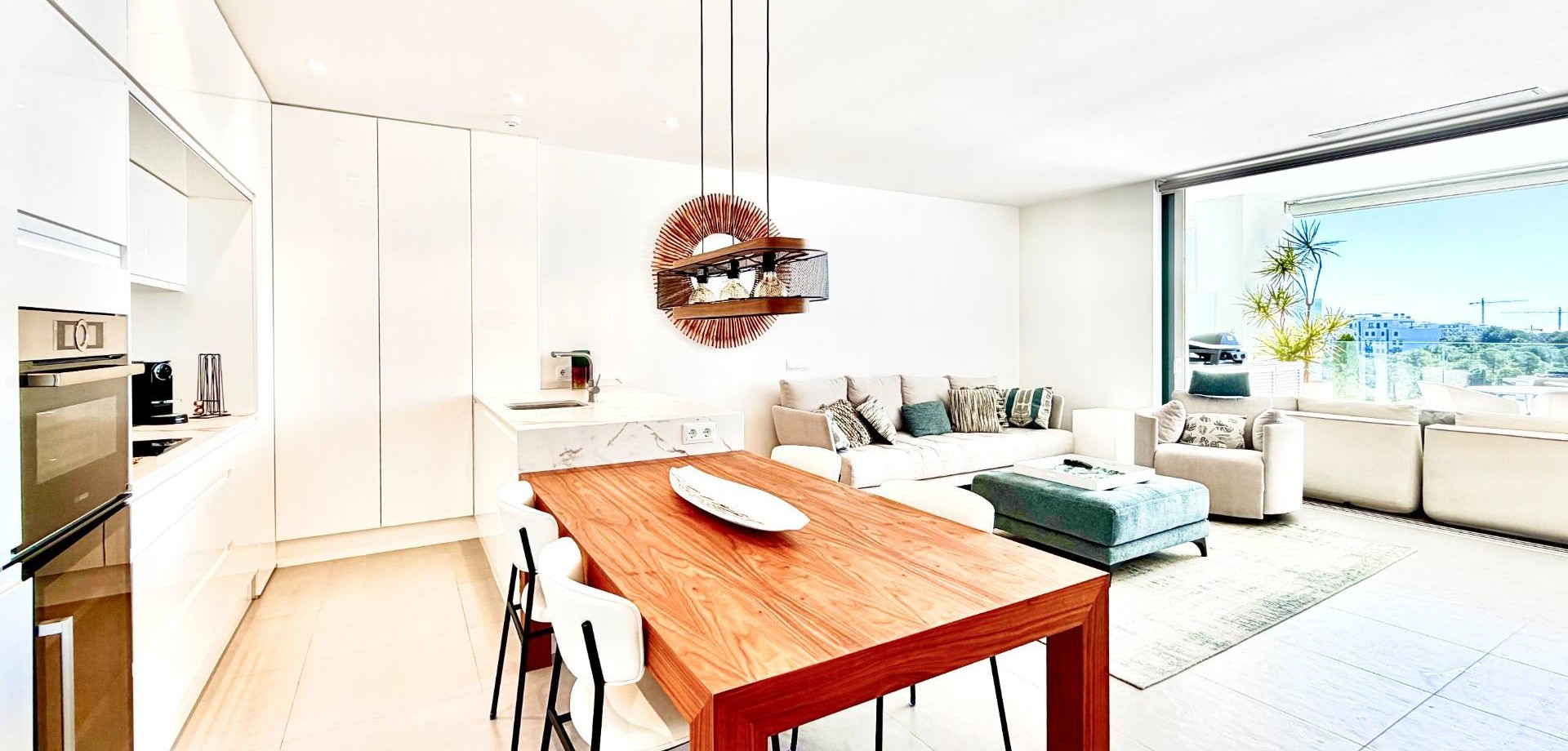 Prachtig Gelijkvloers Appartement in Las Colinas Golf – Ruimte, Privacy & Zuidelijke Zon~~Welkom in dit schitterende zuidgerichte gelijkvloers appartement in de exclusieve Naranjo community van Las Colinas Golf & Country Club. Gebouwd in 2020 en uitstekend onderhouden (het gebouw werd opnieuw geschilderd in 2025), biedt deze woning comfort, privacy en een zorgeloze mediterrane levensstijl.~~Met 90 m2 bebouwd beschikt het appartement over twee ruime slaapkamers en twee volledig uitgeruste badkamers met vloerverwarming. De lichtrijke leefruimte sluit naadloos aan op een royaal voorterras van 35 m2 met uitzicht op de prachtig aangelegde gemeenschappelijke tuinen en een open zicht richting zee. Aan de achterzijde bevindt zich een tweede privéterras met tuin, ideaal voor extra privacy en aangename schaduw in de zomer.~~De volledig uitgeruste keuken beschikt over kwalitatieve toestellen en de woning wordt volledig gemeubeld verkocht, instapklaar. Voor extra comfort is er een smart home systeem, airconditioning warm/koud, LED-verlichting, elektrische rolluiken en een waterfiltersysteem.~~De residentie biedt mooie aangelegde tuinen en een gemeenschappelijk zwembad. Inclusief ondergrondse privéparking en berging met lifttoegang.~~Gelegen op slechts 2 km van golf en voorzieningen, 7 km van het strand en ongeveer 45 minuten van de luchthaven.~~✨ Een woning waar comfort en zuiderse elegantie perfect samenkomen.