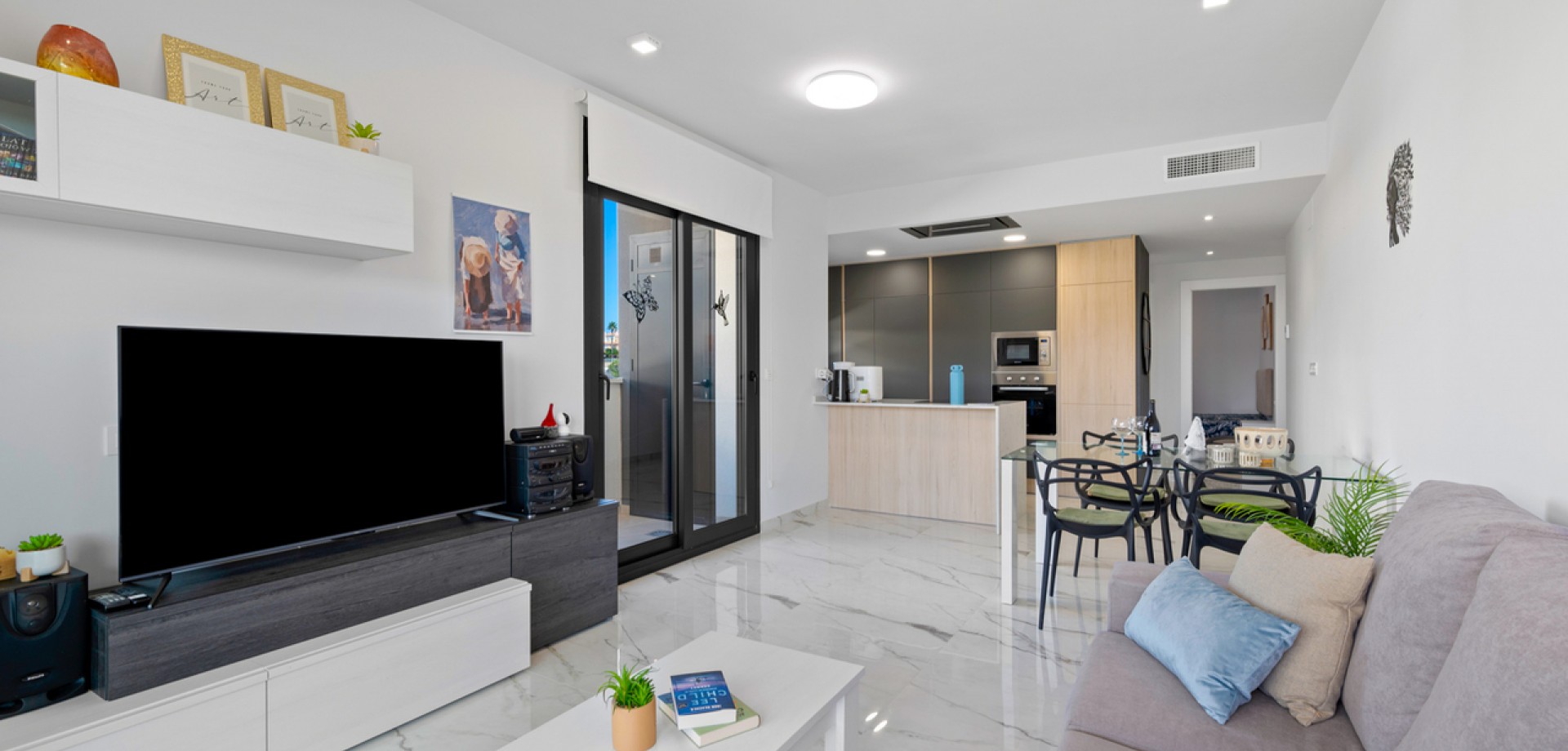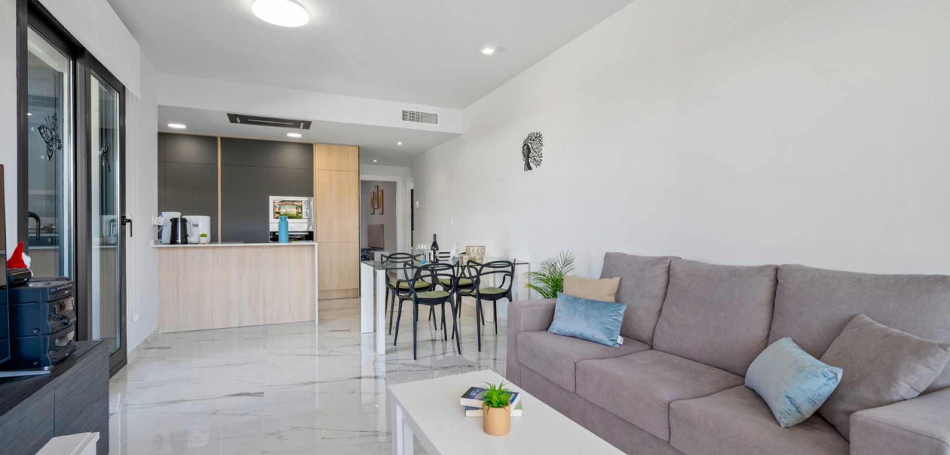 Dit modern appartement op de tweede verdieping met 2 slaapkamers, 2 badkamers en een groot terras is gelegen in de zeer gegeerde woonwijk van Villamartin, Alicante (Orihuela Costa) Het pand wordt volledig gemeubileerd verkocht en bestaat uit een ruime woon-/eetkamer, een moderne open en volledig uitgeruste keuken, twee slaapkamers met inbouwkasten, twee badkamers (ééntje is en-suite), hoge ramen vanuit de woonkamer die leiden naar een privé terras/balkon om de hele dag van de Spaanse zon te kunnen genieten. Parkeerplaats en berging in de ondergrondse garage zijn ook inbegrepen in de prijs! Alle bewoners van dit resort kunnen gebruikmaken van de overdekte gym en de Spa & Wellness, een zeer mooie aangelegde gemeenschappelijke tuin met zwembad en jacuzzi, kinderspeeltuin. Gelegen op een geweldige locatie met een prachtig uitzicht, bent u slechts een paar minuten lopen verwijderd van het beroemde Villamartin Plaza met lokale restaurants, bars en winkels voor alle smaken en behoeften. Het fantastische zandstrand van La Zenia ligt op slechts 10 minuten rijden.