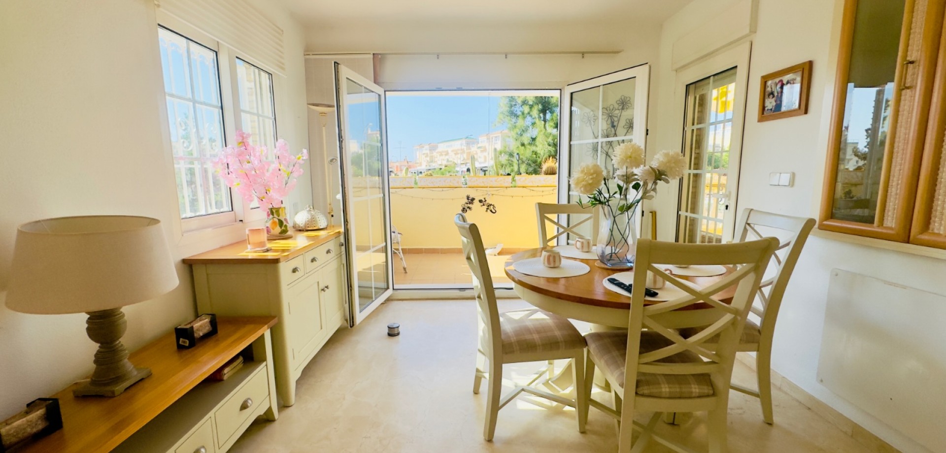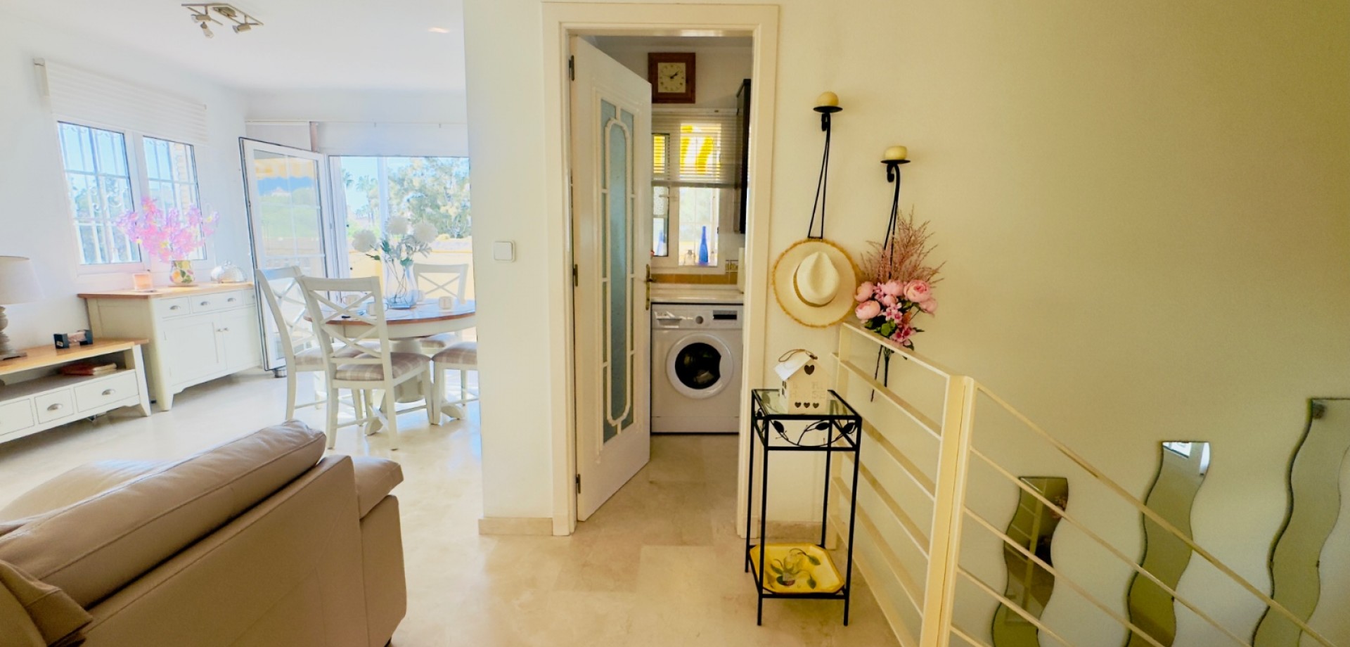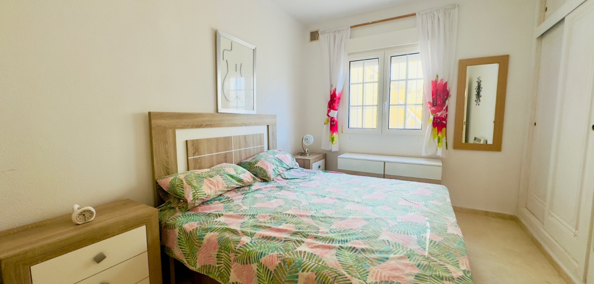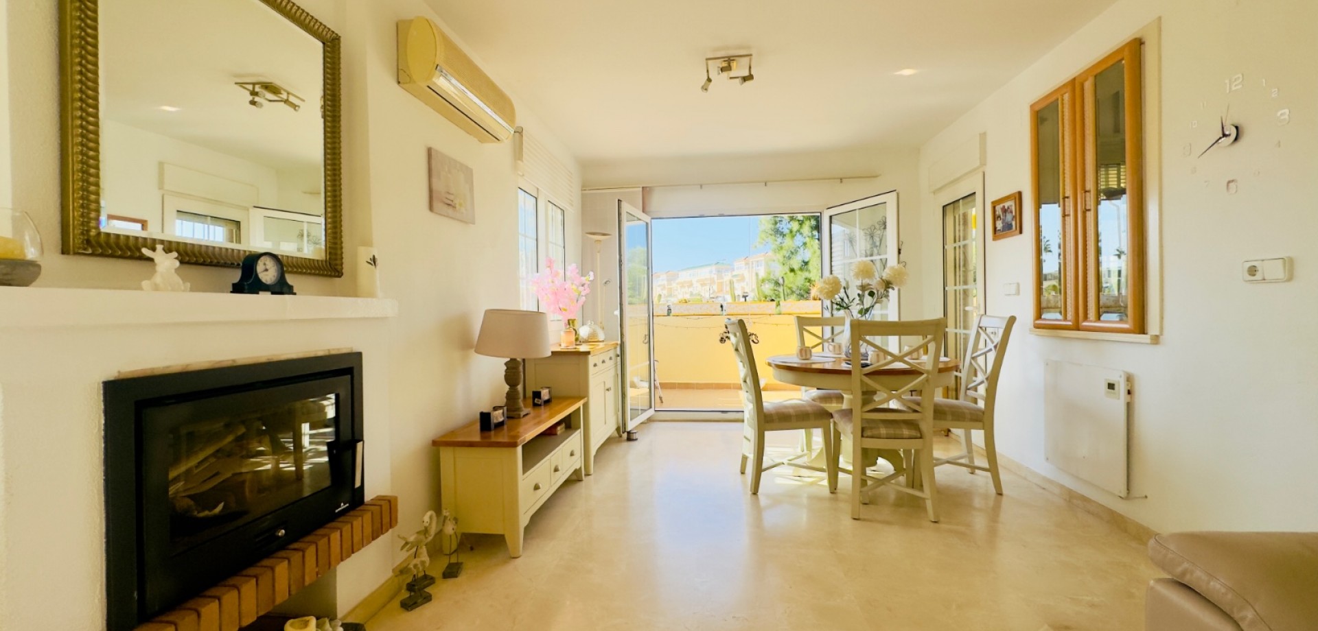 Perfect gelegen in de zeer gewilde wijk Playa Flamenca, Orihuela Costa, biedt deze prachtige villa met 3 slaapkamers en 3 badkamers (waarvan één en suite) een harmonieuze combinatie van modern comfort, privacy en mediterrane charme. De woning beschikt over verwarming, met elektrische wandkachels in elke kamer, warme en koude airconditioning en een nieuwe open haard met lage emissie, wat zorgt voor comfort het hele jaar door. De villa is gebouwd op een zuidelijk gelegen hoekperceel van 325 m² en heeft een bebouwde oppervlakte van 125 m². De woning biedt royale binnen- en buitenruimtes, ideaal om te ontspannen, gasten te ontvangen of het hele jaar door van de Spaanse zon te genieten. Vanaf het terras is er zelfs gedeeltelijk zeezicht, wat een extra vleugje kustleven toevoegt. Een van de meest opvallende kenmerken van deze villa is de uitstekende locatie. Op slechts enkele minuten loopafstand bevindt zich de bekende zaterdagmarkt van Playa Flamenca, waar u kunt genieten van lokale producten, eetkraampjes en een levendige sfeer. In minder dan 10 minuten lopen bereikt u winkelcentrum La Zenia Boulevard, een van de grootste openluchtwinkelcentra van Spanje, met bekende merken, restaurants, cafés en recreatieve voorzieningen. Alle essentiële voorzieningen — supermarkten, scholen, stranden en vervoersverbindingen — zijn binnen handbereik. De woning is gelegen in een goed onderhouden, afgesloten gemeenschap waar bewoners kunnen genieten van twee prachtige gemeenschappelijke zwembaden, fraai aangelegde tuinen en toegewezen parkeerplaatsen, wat comfort en rust garandeert. Of het nu gaat om een permanente woning onder de zon, een vakantiehuis of een rendabele investering, deze villa is instapklaar en perfect om te genieten van het mediterrane leven. Belangrijkste kenmerken: • Toplocatie – op loopafstand van de markt van Playa Flamenca en La Zenia Boulevard • 3 slaapkamers / 3 badkamers (1 en suite) • Zuidgericht hoekperceel van 325 m² • Bebouwde oppervlakte van 125 m² • Twee gemeenschappelijke zwembaden en aangelegde tuinen • Gedeeltelijk zeezicht vanaf het terras • Volledig gemeubileerd en instapklaar • Airconditioning (warm/koud) • Verwarming met elektrische wandkachels in alle kamers • Nieuwe open haard met lage emissie • Privé- en gemeenschappelijke parkeergelegenheid