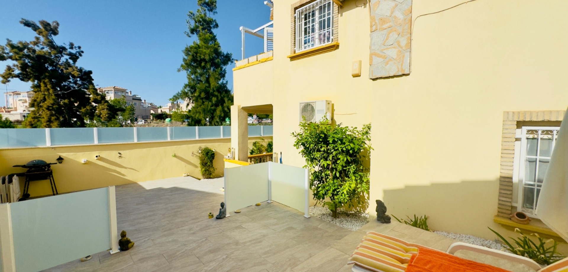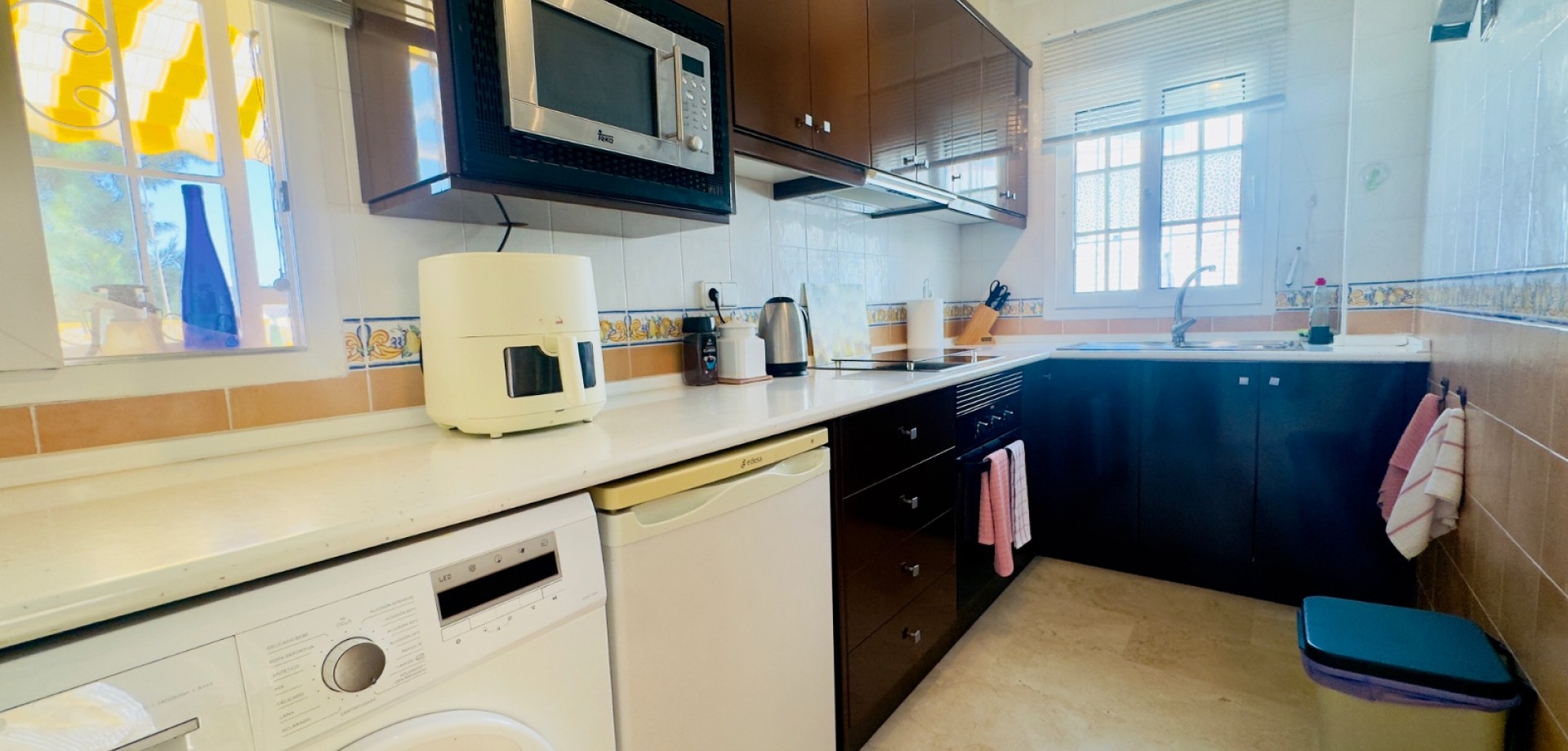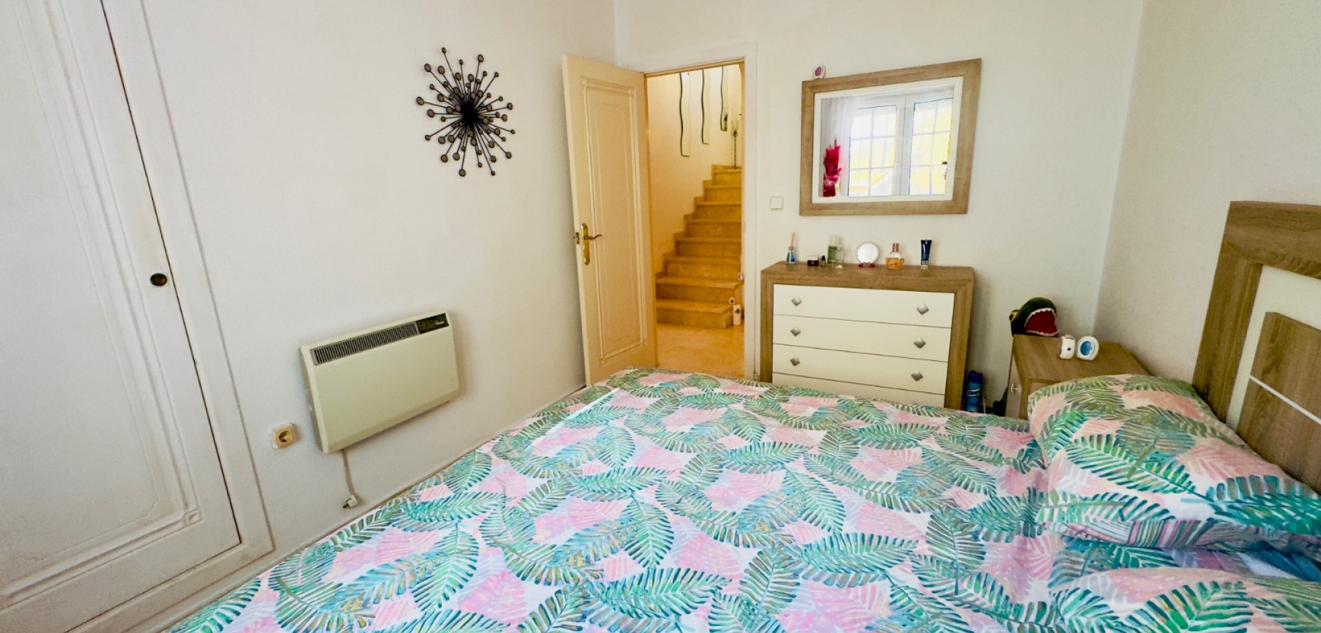 Perfect gelegen in de zeer gewilde wijk Playa Flamenca, Orihuela Costa, biedt deze prachtige villa met 3 slaapkamers en 3 badkamers (waarvan één en suite) een harmonieuze combinatie van modern comfort, privacy en mediterrane charme. De woning beschikt over verwarming, met elektrische wandkachels in elke kamer, warme en koude airconditioning en een nieuwe open haard met lage emissie, wat zorgt voor comfort het hele jaar door. De villa is gebouwd op een zuidelijk gelegen hoekperceel van 325 m² en heeft een bebouwde oppervlakte van 125 m². De woning biedt royale binnen- en buitenruimtes, ideaal om te ontspannen, gasten te ontvangen of het hele jaar door van de Spaanse zon te genieten. Vanaf het terras is er zelfs gedeeltelijk zeezicht, wat een extra vleugje kustleven toevoegt. Een van de meest opvallende kenmerken van deze villa is de uitstekende locatie. Op slechts enkele minuten loopafstand bevindt zich de bekende zaterdagmarkt van Playa Flamenca, waar u kunt genieten van lokale producten, eetkraampjes en een levendige sfeer. In minder dan 10 minuten lopen bereikt u winkelcentrum La Zenia Boulevard, een van de grootste openluchtwinkelcentra van Spanje, met bekende merken, restaurants, cafés en recreatieve voorzieningen. Alle essentiële voorzieningen — supermarkten, scholen, stranden en vervoersverbindingen — zijn binnen handbereik. De woning is gelegen in een goed onderhouden, afgesloten gemeenschap waar bewoners kunnen genieten van twee prachtige gemeenschappelijke zwembaden, fraai aangelegde tuinen en toegewezen parkeerplaatsen, wat comfort en rust garandeert. Of het nu gaat om een permanente woning onder de zon, een vakantiehuis of een rendabele investering, deze villa is instapklaar en perfect om te genieten van het mediterrane leven. Belangrijkste kenmerken: • Toplocatie – op loopafstand van de markt van Playa Flamenca en La Zenia Boulevard • 3 slaapkamers / 3 badkamers (1 en suite) • Zuidgericht hoekperceel van 325 m² • Bebouwde oppervlakte van 125 m² • Twee gemeenschappelijke zwembaden en aangelegde tuinen • Gedeeltelijk zeezicht vanaf het terras • Volledig gemeubileerd en instapklaar • Airconditioning (warm/koud) • Verwarming met elektrische wandkachels in alle kamers • Nieuwe open haard met lage emissie • Privé- en gemeenschappelijke parkeergelegenheid